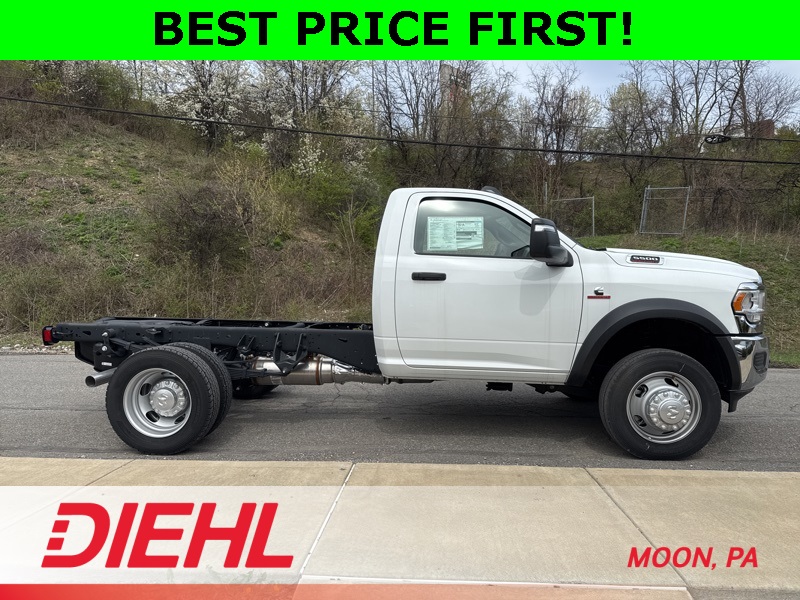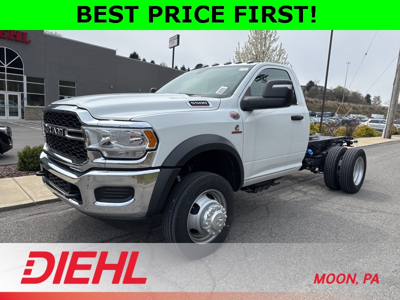 Introducing the brand-new 2024 Ram 5500 Tradesman Regular Cab Chassis 4x4, the ultimate commercial truck for sale and your new favorite co-worker. Built to conquer tough tasks with ease, this upfit-ready chassis is perfect for any commercial need, whether it's hauling heavy gear or cruising confidently to the next job site. Equipped with a powerful 2.0L I4 DOHC Turbo engine, it blends muscle with efficiency like your favorite protein shake.Safety and technology come standard in this Ram heavy-duty truck. Navigate seamlessly with the crisp 8.4-inch touchscreen featuring Apple CarPlay and Android Auto connectivity, and park like a pro with ParkView Rear Backup Camera assistance. With Advanced Stability Control and 4-Wheel ABS, you'll tackle roadsand job siteswith unmatched ease and confidence.Inside, the robust Diesel Gray Vinyl seats offer unbeatable durability, perfect for rugged daily use. Plus, with Apple CarPlay and Android Auto, every drive transforms into a mini-concert or business briefing, whichever suits your mood.Searching for a reliable commercial truck for sale that's ready for upfitting? Look no further. The 2024 Ram 5500 Tradesman Regular Cab Chassis 4x4 isn't just your new work vehicle; it's your hardest-working employee, your weekend adventurer, and the key to your company's future success.Claim this unbeatable deal today at Diehl of Moon before someone else drives away with your ideal work companion. Schedule a test drive now and upgrade your business and lifestyle with unmatched Ram power and versatility! Price includes: $3750 - 2024 Bonus Cash . Exp. 11/03/2025 $5000 - 2024 National Bailment Pool Select Inventory w/ 3JW Bonus Cash. Exp. 01/05/2026