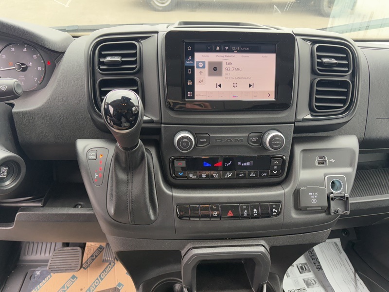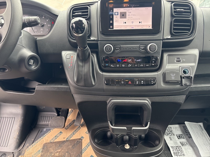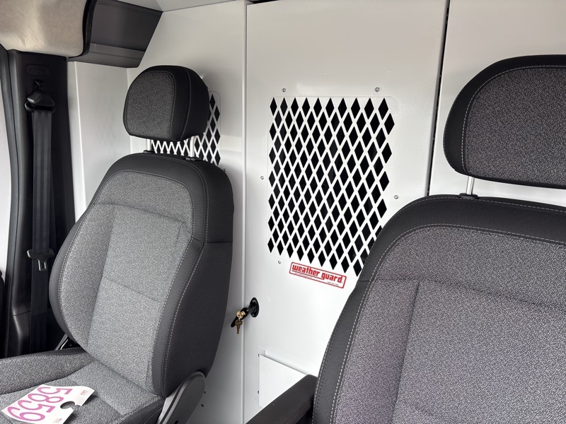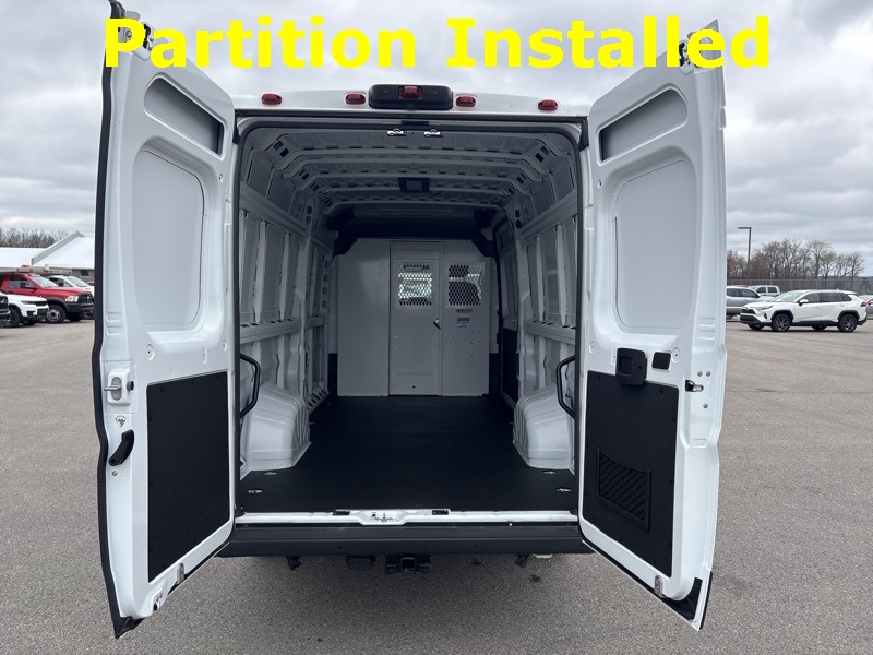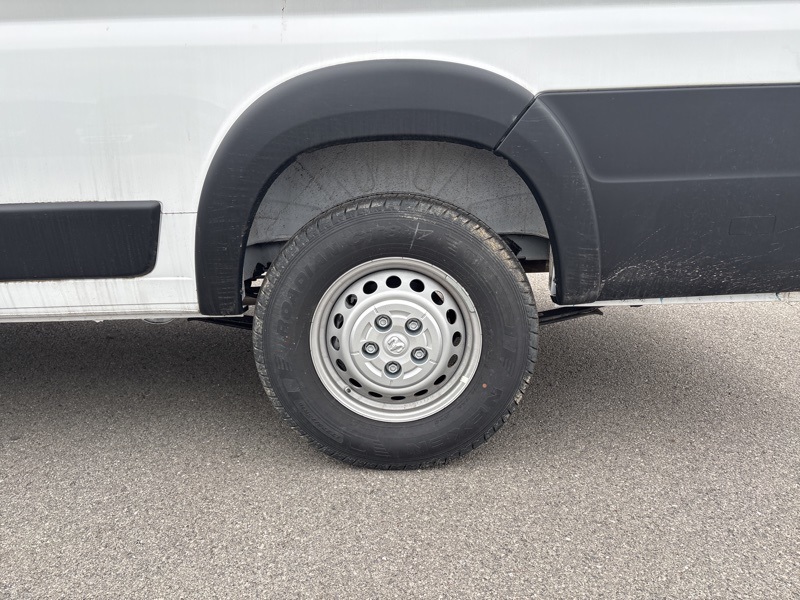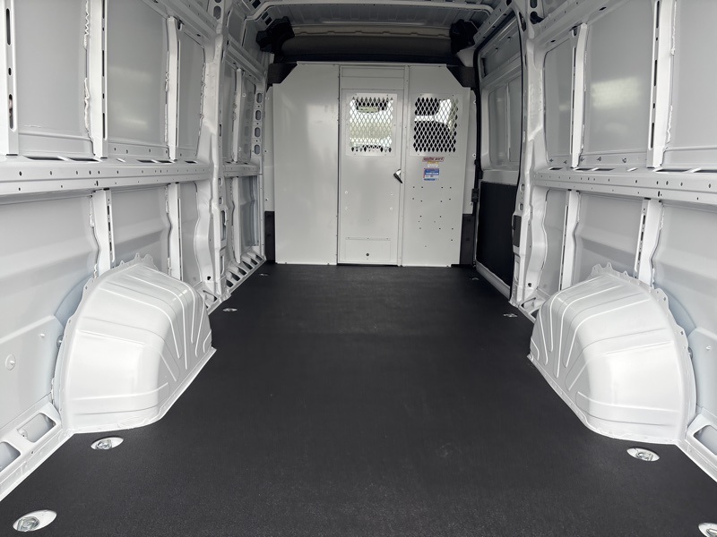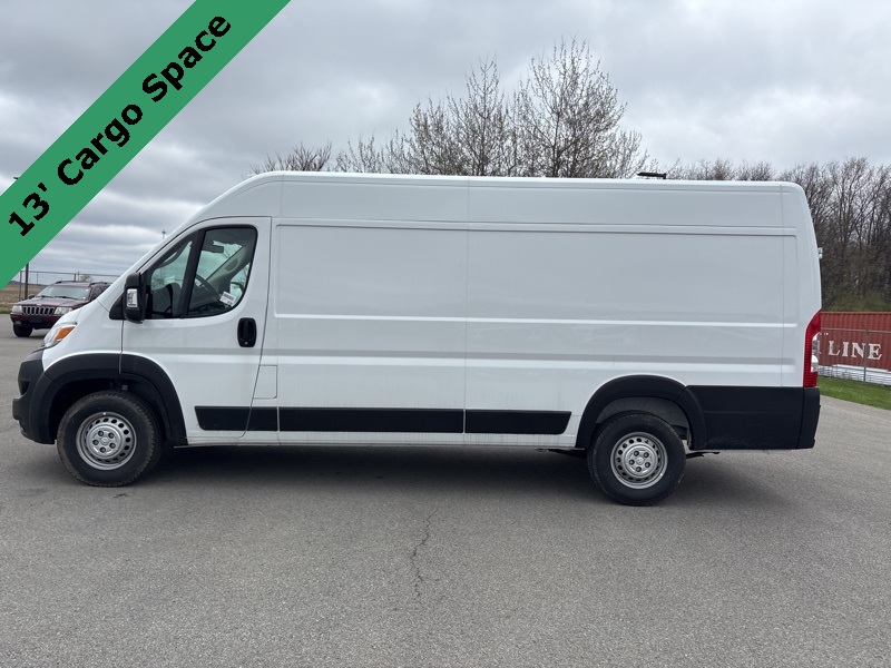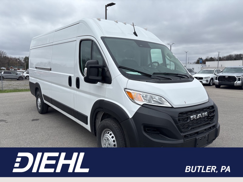 Convenience Group (Adaptive Cruise Control w/Stop & Go, Exterior Mirrors w/Heating Element, Exterior Mirrors w/Supplemental Signals, Front Fog Lamps, Power Adjust Mirrors, Power Folding/Heated Mirrors, Power-Adjustable Convex Aux Mirrors, Power-Folding Mirrors, and Rear Cargo LED Lamp), Power Group (100 Amp Battery, 115V Auxiliary Power Outlet, and 12V Rear Auxiliary Power Outlet), Quick Order Package 22B Tradesman w/Pass Seat (4-Way Manual Adjust Front Passenger Seat and Passenger Bucket Seat), Safety Group (Blind Spot & Cross Path Detection, Digital Rearview Mirror w/Autodim, Intelligent Speed Assist (ISA), Lane Departure Warning Plus, and ParkSense Front/Rear Park Assist System), Storage Group (Cargo Net, Shelf Above Roof Trim, and Underseat Storage Tray), Upfitter's Prep Package (Auxiliary Switches and Upfitter Electronic Module (VSIM)), 4 Speakers, 4-Wheel Disc Brakes, 4.08 Axle Ratio, ABS brakes, Air Conditioning, AM/FM radio: SiriusXM, Apple CarPlay/Android Auto, Black/Gray Seats, Bodyside moldings, Brake assist, Class IV Receiver Hitch, Cloth Bucket Seats, Driver door bin, Driver Seat Armrest, Driver's Seat Mounted Armrest, Electronic Stability Control, Front anti-roll bar, Front Bucket Seats, Front License Plate Bracket, Front reading lights, Front wheel independent suspension, Heavy Duty Suspension, Illuminated entry, Low tire pressure warning, Manufacturer's Statement of Origin, MOPAR Cargo Compartment Floor Mat, MOPAR Rear Assist Handles, Outside temperature display, Overhead airbag, Overhead console, ParkView Rear Back-Up Camera, Passenger door bin, Power steering, Power windows, Radio: Uconnect 5 w/7" Display, Rear anti-roll bar, Remote keyless entry, Steering wheel mounted audio controls, Tachometer, Telescoping steering wheel, Traction control, Trip computer, Turn signal indicator mirrors, Variably intermittent wipers, Wheel Center Cap, and Wheels: 16" x 6.0" Steel. Bright White Clearcoat 2024 Ram ProMaster 3500 High Roof FWD 9-Speed 948TE Automatic 3.6L V6 24V VVT