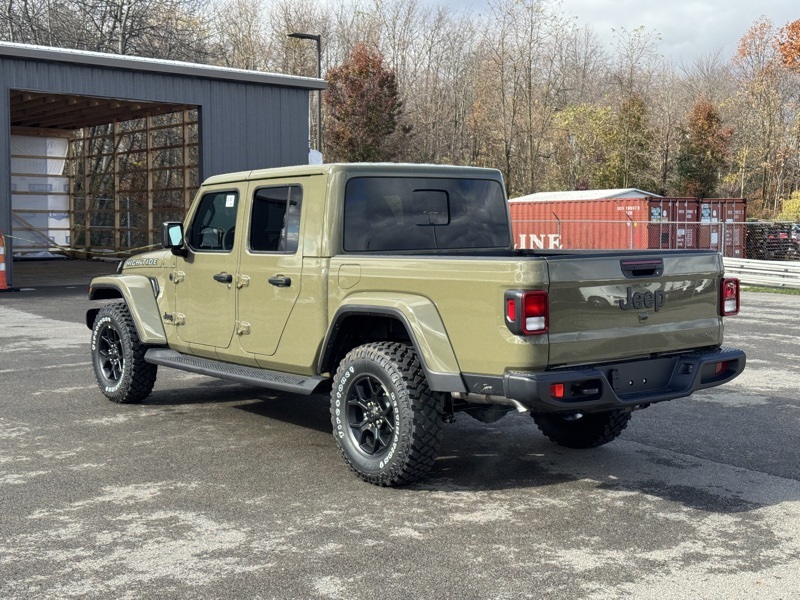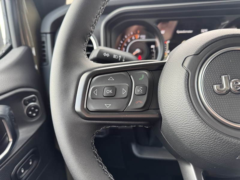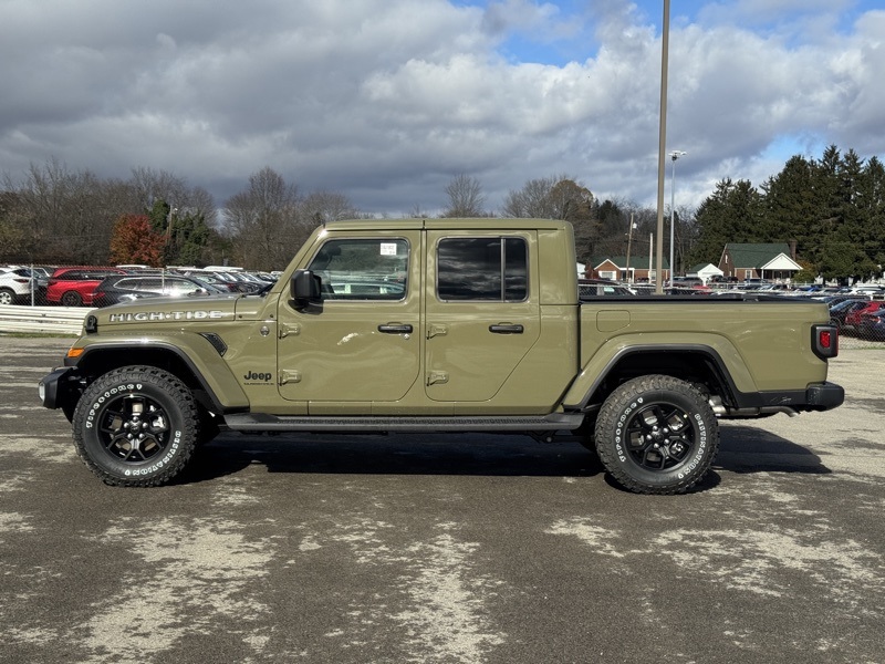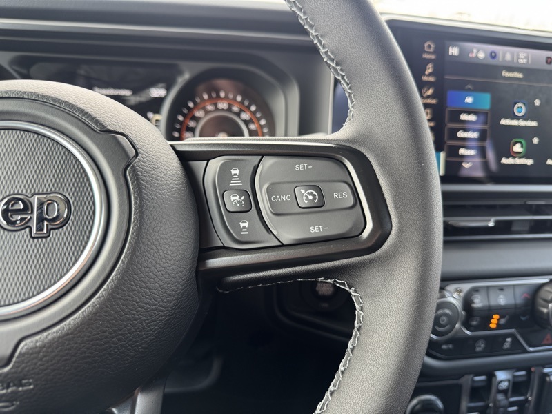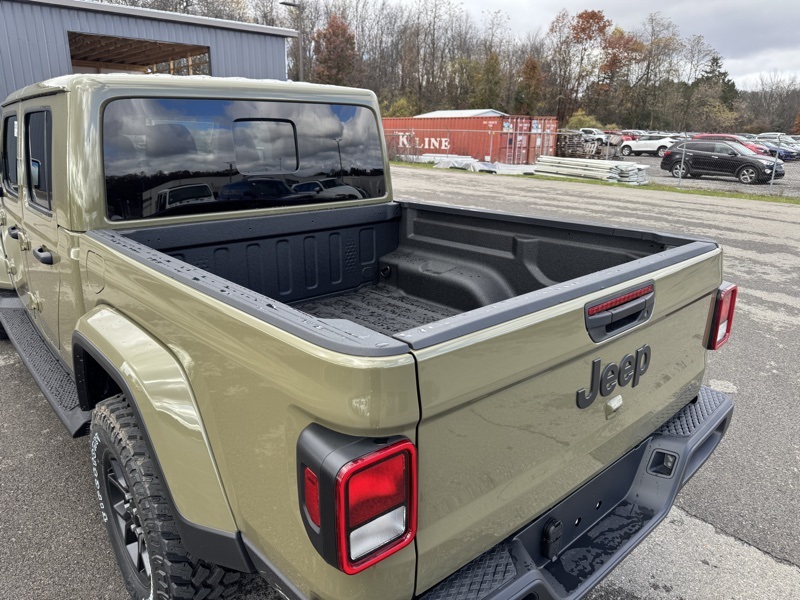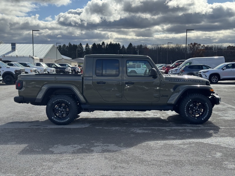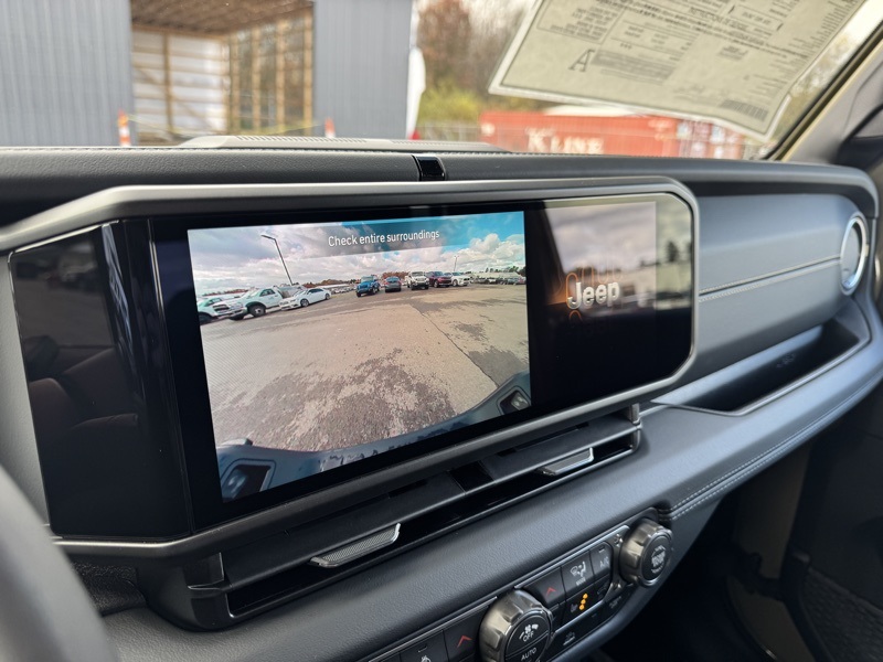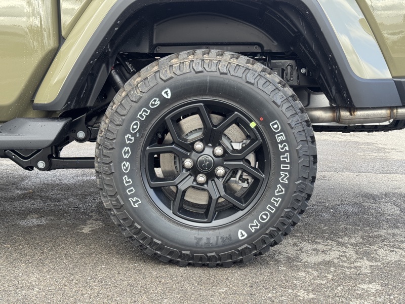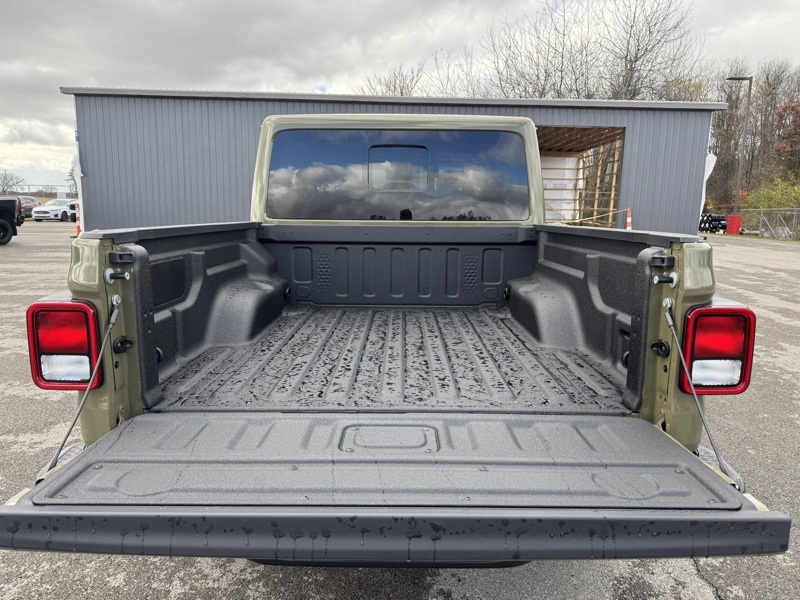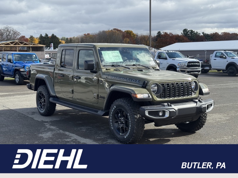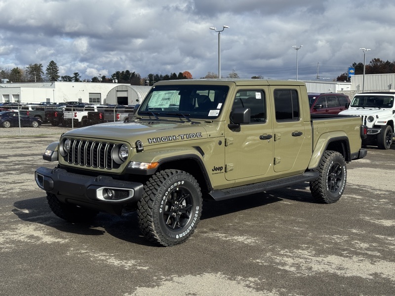 Convenience Group (Corning Gorilla Glass, Daytime Running Lamp System, Emergency/Assistance Call, Front Door Locks 2-Door Passive Entry, Heated Front Seats, Heated Steering Wheel, Remote Start System, and Universal Garage Door Opener), Quick Order Package 24Q High Tide (97 MPH Vehicle Max Speed Calibration, Advanced Brake Assist, Automatic Headlamps, Body Color 3-Piece Hard Top, Body Color Fender Flares (2-Piece), Deep Tint Sunscreen Windows, Freedom Panel Storage Bag, Full Length Floor Console Premium Armrest, Full Speed Forward Collision Warning Plus, Hard Seat Back, High Tide, High Tide Tailgate & Hood Decals, Integrated Radar Camera Module (IRCM), Leather Wrapped Park Brake Handle, Leather Wrapped Shift Knob, Power 4-Way Driver Lumbar Adjust, Power 4-Way Passenger Lumbar Adjust, Power Adjust 8-Way Driver Seat, Power Adjust 8-Way Front Passenger Seat, Power Heated Mirrors, Premium Door Trim Panel, Premium McKinley Trimmed Seats, Premium Wrapped Steering Wheel, Rear Armrest w/Cupholder Seat, Rear Sliding Window, Rear Window Defroster, Security Alarm, Sun Visors w/Illuminated Vanity Mirrors, Wheels: 17" x 7.5" Painted Black, and Willys Suspension), 110 MPH Vehicle Max Speed Calibration, 12.3" Touchscreen Display, 3.73 Rear Axle Ratio, 4-Wheel Disc Brakes, 4G LTE Wi-Fi Hot Spot, 8 Speakers, ABS brakes, Air Conditioning, Alexa Built-In, AM/FM radio: SiriusXM, Apple CarPlay, Apple CarPlay/Android Auto, Brake assist, Cloth Low-Back Bucket Seats, Compass, Connectivity - US/Canada, Delay-off headlights, Driver door bin, Driver vanity mirror, Dual front impact airbags, Dual front side impact airbags, Electronic Stability Control, Front anti-roll bar, Front Bucket Seats, Front Center Armrest w/Storage, Front fog lights, Front reading lights, Google Android Auto, Illuminated entry, Integrated roll-over protection, Low tire pressure warning, MOPAR All-Weather Slush Mats, MOPAR Spray In Bedliner, Normal Duty Suspension, Occupant sensing airbag, Outside temperature display, Overhead airbag, Panic alarm, ParkView Rear Back-Up Camera, Passenger door bin, Passenger vanity mirror, Power steering, Power windows, Radio data system, Radio: Uconnect 5 w/12.3" Display, Rear anti-roll bar, Rear reading lights, Remote keyless entry, Side Steps, Speed control, Split folding rear seat, Steering wheel mounted audio controls, Tachometer, Telescoping steering wheel, Tilt steering wheel, Traction control, Trip computer, USB Host Flip, Variably intermittent wipers, Voltmeter, and Wheels: 17" x 7.5" Black Steel Styled. 41 2025 Jeep Gladiator High Tide 4WD 8-Speed Automatic 3.6L V6 24V VVT