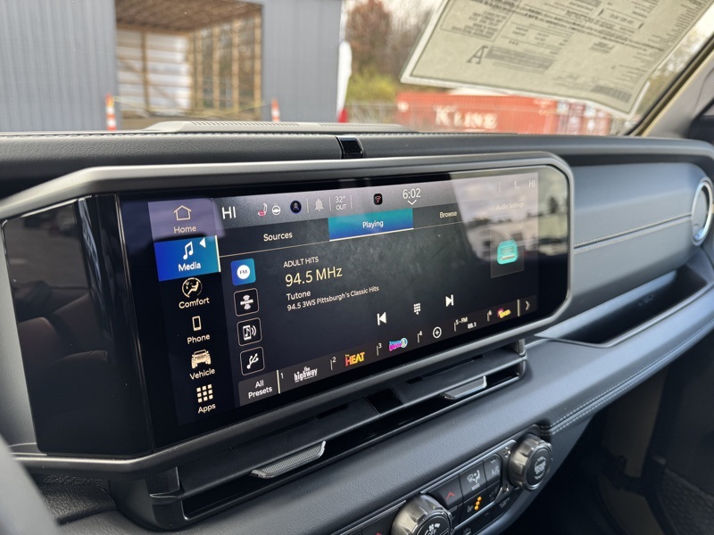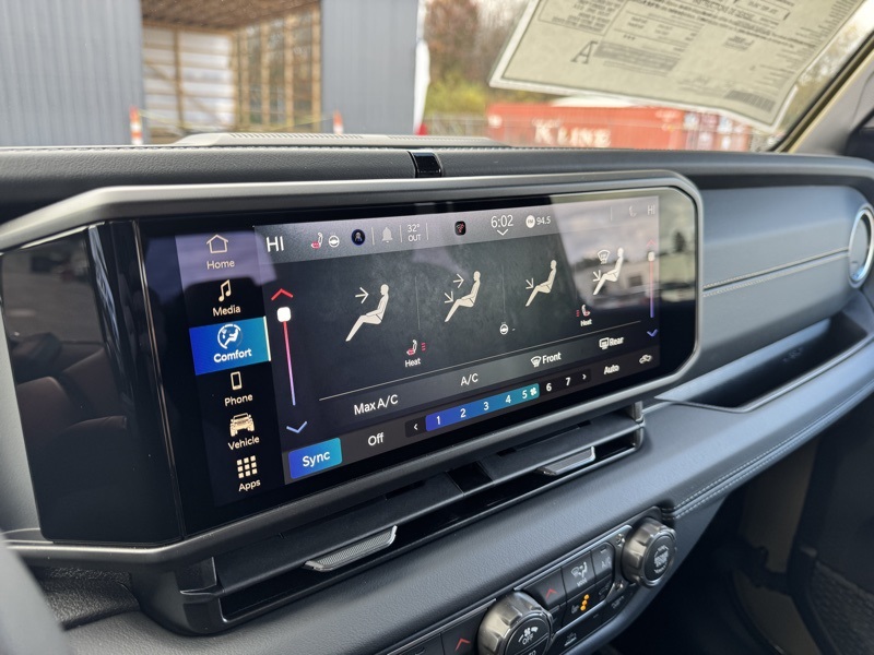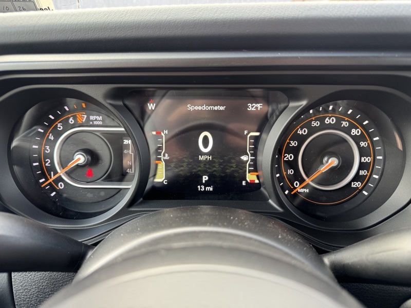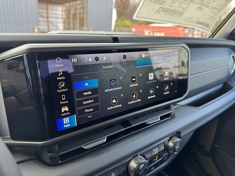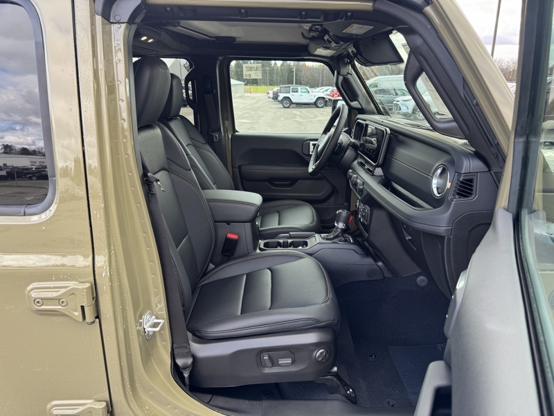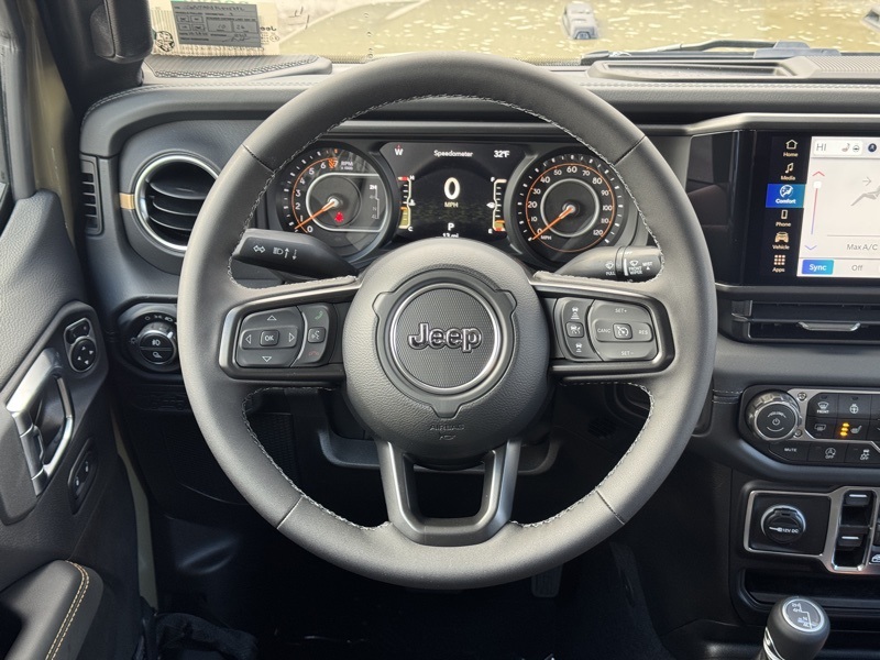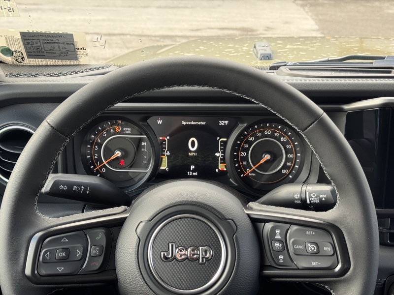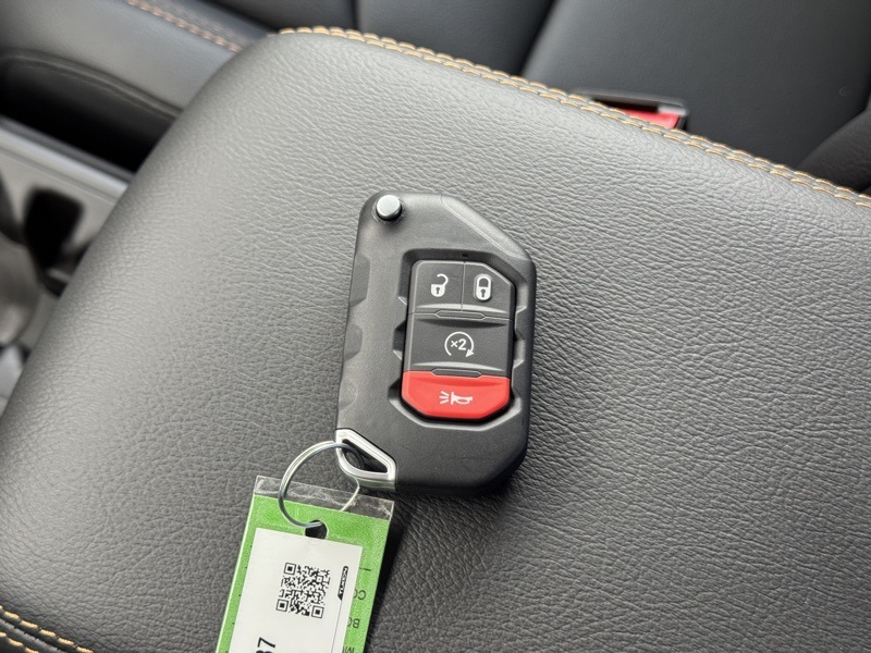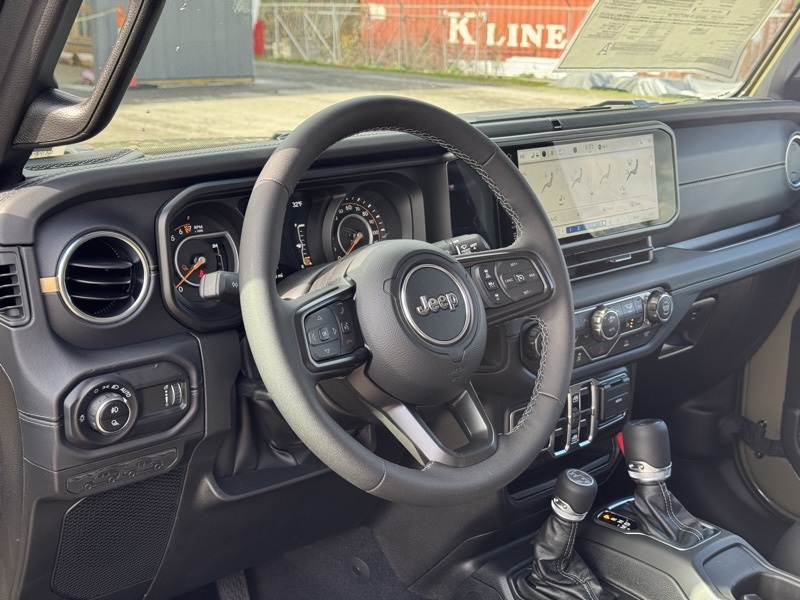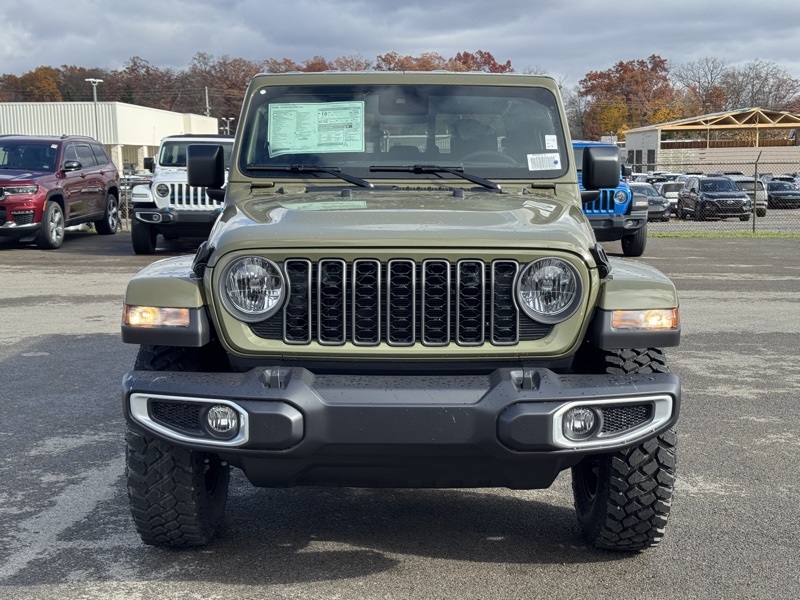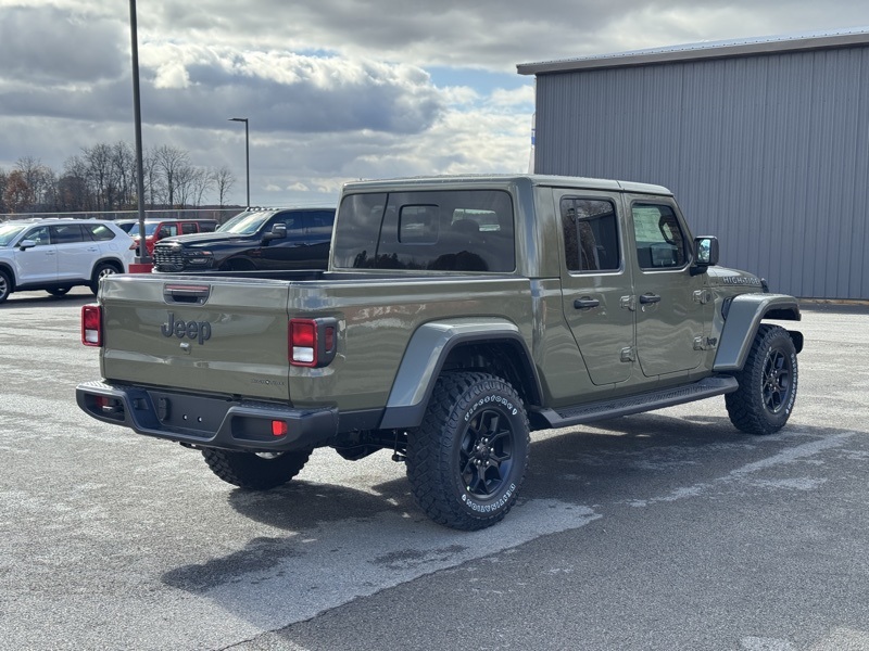 Convenience Group (Corning Gorilla Glass, Daytime Running Lamp System, Emergency/Assistance Call, Front Door Locks 2-Door Passive Entry, Heated Front Seats, Heated Steering Wheel, Remote Start System, and Universal Garage Door Opener), Quick Order Package 24Q High Tide (97 MPH Vehicle Max Speed Calibration, Advanced Brake Assist, Automatic Headlamps, Body Color 3-Piece Hard Top, Body Color Fender Flares (2-Piece), Deep Tint Sunscreen Windows, Freedom Panel Storage Bag, Full Length Floor Console Premium Armrest, Full Speed Forward Collision Warning Plus, Hard Seat Back, High Tide, High Tide Tailgate & Hood Decals, Integrated Radar Camera Module (IRCM), Leather Wrapped Park Brake Handle, Leather Wrapped Shift Knob, Power 4-Way Driver Lumbar Adjust, Power 4-Way Passenger Lumbar Adjust, Power Adjust 8-Way Driver Seat, Power Adjust 8-Way Front Passenger Seat, Power Heated Mirrors, Premium Door Trim Panel, Premium McKinley Trimmed Seats, Premium Wrapped Steering Wheel, Rear Armrest w/Cupholder Seat, Rear Sliding Window, Rear Window Defroster, Security Alarm, Sun Visors w/Illuminated Vanity Mirrors, Wheels: 17" x 7.5" Painted Black, and Willys Suspension), 110 MPH Vehicle Max Speed Calibration, 12.3" Touchscreen Display, 3.73 Rear Axle Ratio, 4-Wheel Disc Brakes, 4G LTE Wi-Fi Hot Spot, 8 Speakers, ABS brakes, Air Conditioning, Alexa Built-In, AM/FM radio: SiriusXM, Apple CarPlay, Apple CarPlay/Android Auto, Brake assist, Cloth Low-Back Bucket Seats, Compass, Connectivity - US/Canada, Delay-off headlights, Driver door bin, Driver vanity mirror, Dual front impact airbags, Dual front side impact airbags, Electronic Stability Control, Front anti-roll bar, Front Bucket Seats, Front Center Armrest w/Storage, Front fog lights, Front reading lights, Google Android Auto, Illuminated entry, Integrated roll-over protection, Low tire pressure warning, MOPAR All-Weather Slush Mats, MOPAR Spray In Bedliner, Normal Duty Suspension, Occupant sensing airbag, Outside temperature display, Overhead airbag, Panic alarm, ParkView Rear Back-Up Camera, Passenger door bin, Passenger vanity mirror, Power steering, Power windows, Radio data system, Radio: Uconnect 5 w/12.3" Display, Rear anti-roll bar, Rear reading lights, Remote keyless entry, Side Steps, Speed control, Split folding rear seat, Steering wheel mounted audio controls, Tachometer, Telescoping steering wheel, Tilt steering wheel, Traction control, Trip computer, USB Host Flip, Variably intermittent wipers, Voltmeter, and Wheels: 17" x 7.5" Black Steel Styled. 41 2025 Jeep Gladiator High Tide 4WD 8-Speed Automatic 3.6L V6 24V VVT
