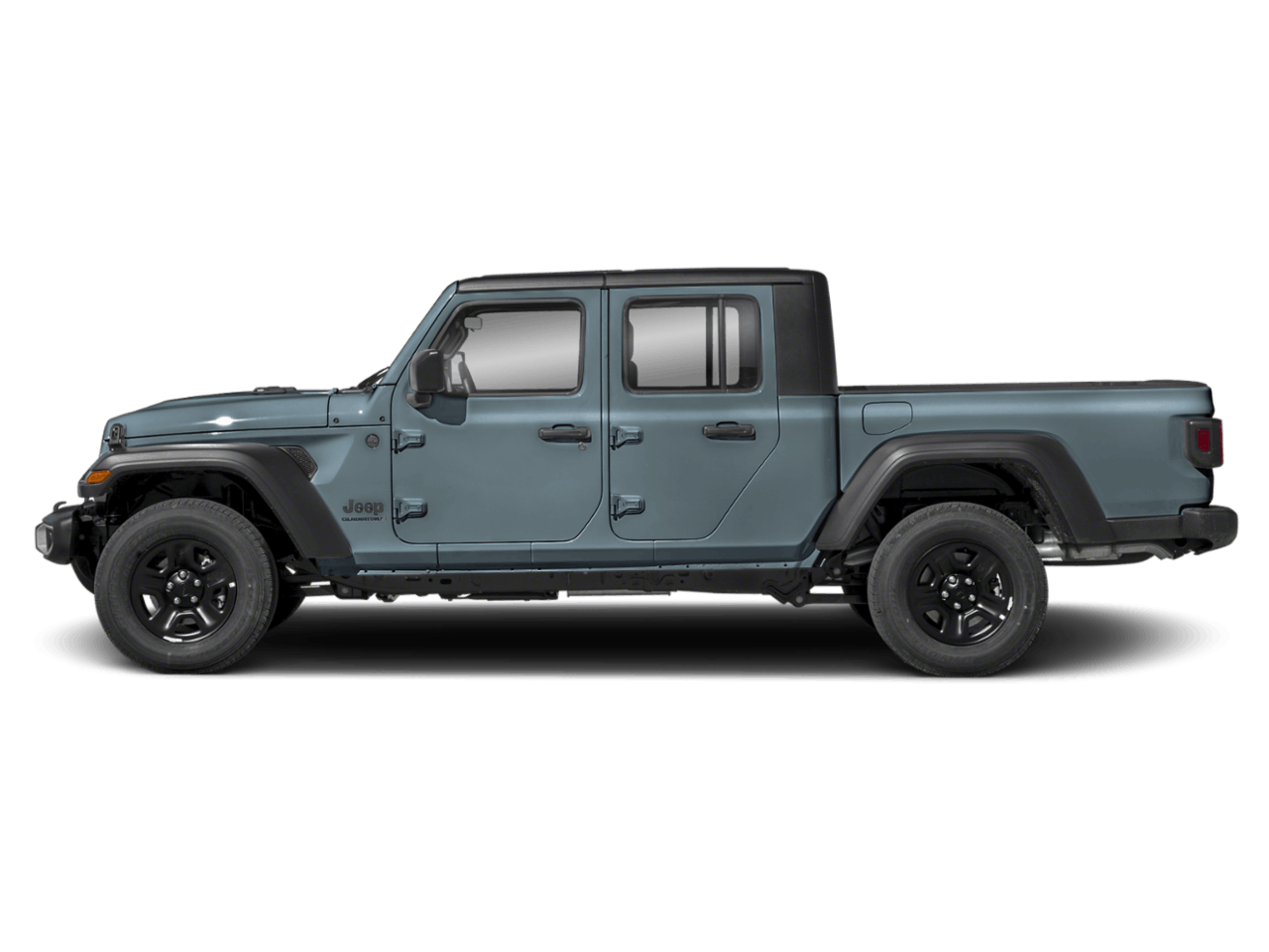 Quick Order Package 24B Sport, 110 MPH Vehicle Max Speed Calibration, 12.3" Touchscreen Display, 3.73 Rear Axle Ratio, 4-Wheel Disc Brakes, 4G LTE Wi-Fi Hot Spot, 8 Speakers, ABS brakes, Air Conditioning, Alexa Built-In, AM/FM radio: SiriusXM, Apple CarPlay, Apple CarPlay/Android Auto, Brake assist, Cloth Low-Back Bucket Seats, Compass, Connectivity - US/Canada, Delay-off headlights, Driver door bin, Driver vanity mirror, Dual front impact airbags, Dual front side impact airbags, Electronic Stability Control, Front anti-roll bar, Front Bucket Seats, Front Center Armrest w/Storage, Front fog lights, Front reading lights, Google Android Auto, Illuminated entry, Integrated roll-over protection, Low tire pressure warning, MOPAR All-Weather Slush Mats, MOPAR Spray In Bedliner, Normal Duty Suspension, Occupant sensing airbag, Outside temperature display, Overhead airbag, Panic alarm, ParkView Rear Back-Up Camera, Passenger door bin, Passenger vanity mirror, Power steering, Power windows, Radio data system, Radio: Uconnect 5 w/12.3" Display, Rear anti-roll bar, Rear reading lights, Remote keyless entry, Speed control, Split folding rear seat, Steering wheel mounted audio controls, Tachometer, Telescoping steering wheel, Tilt steering wheel, Traction control, Trip computer, USB Host Flip, Variably intermittent wipers, Voltmeter, and Wheels: 17" x 7.5" Black Steel Styled. Recent Arrival! Anvil Clearcoat 2025 Jeep Gladiator Sport 4WD 8-Speed Automatic 3.6L V6 24V VVT