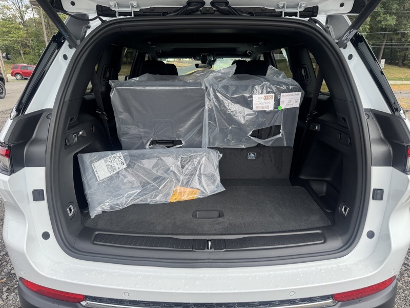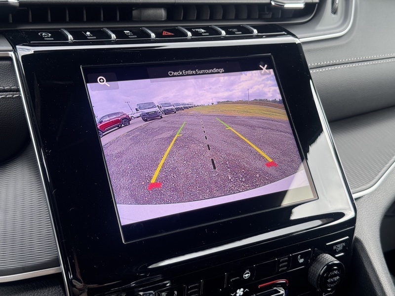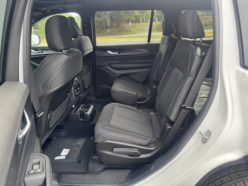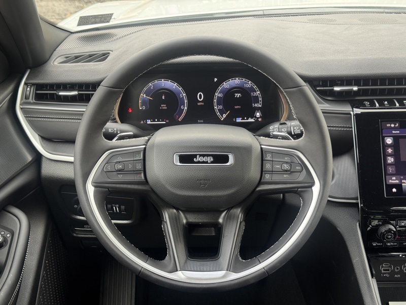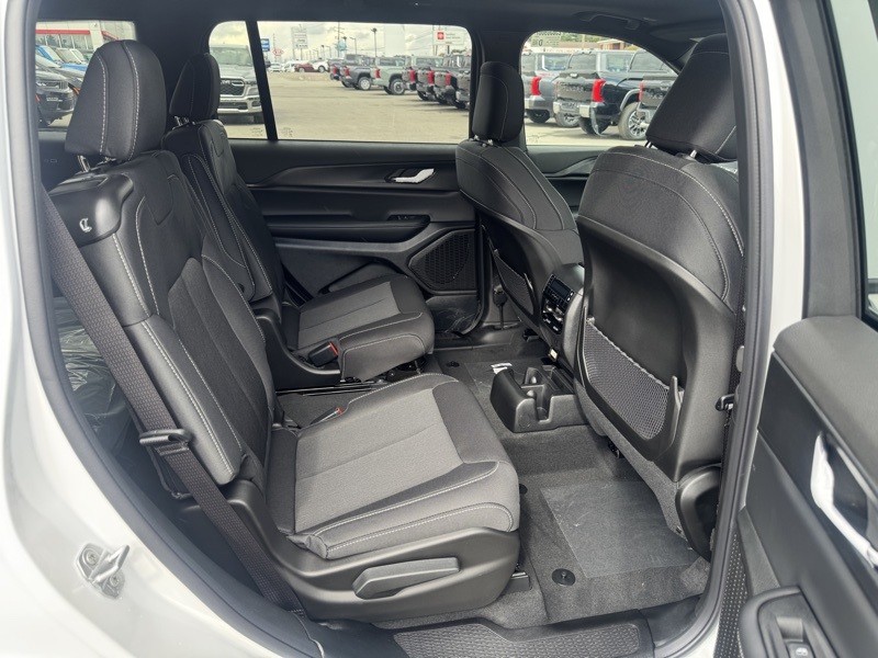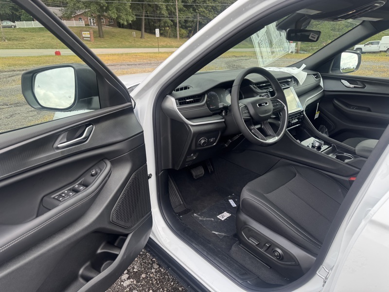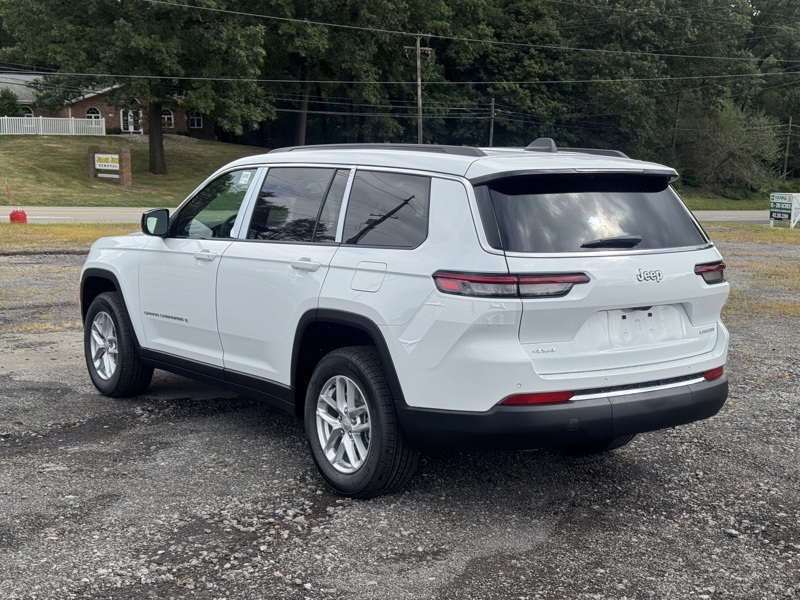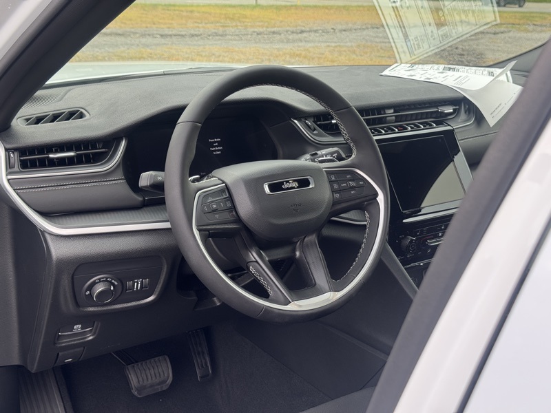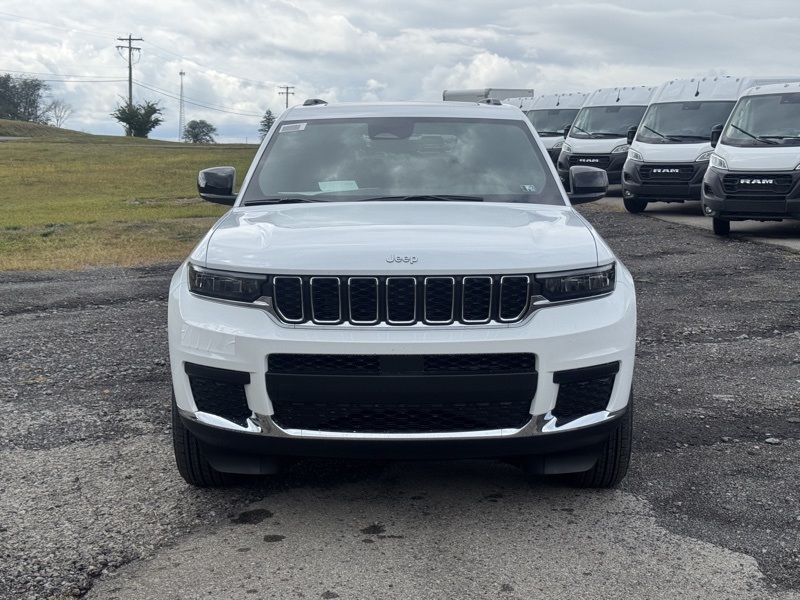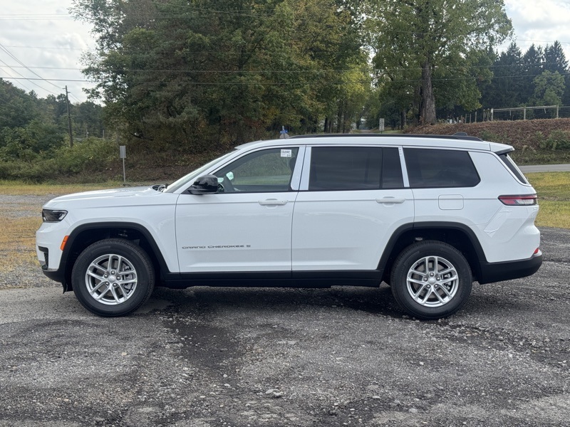 Luxury Tech Group I (115V Auxiliary Power Outlet, 3rd Row Charge-Only USB Ports, Heated Front Seats, Heated Steering Wheel, Power Liftgate, Rain Sensitive Windshield Wipers, Remote Start System, Selectable Tire Fill Alert, and Wireless Charging Pad), Quick Order Package 23D Laredo X (Laredo X and Power Sunroof), Trailer Tow Package (180 Amp Alternator, 7 & 4 Pin Wiring Harness, Automatic Headlamp Leveling System, Class IV Receiver Hitch, Dual Exhaust Tips, Heavy-Duty Engine Cooling, Rear Load Leveling Suspension, and Trailer Hitch Zoom), 3.45 Rear Axle Ratio, 3rd row seats: split-bench, 4-Wheel Disc Brakes, 6 Speakers, ABS brakes, Air Conditioning, Alloy wheels, AM/FM radio: SiriusXM, Anti-whiplash front head restraints, Automatic temperature control, Brake assist, Bumpers: body-color, Cloth Seats, Compass, Delay-off headlights, Driver door bin, Driver vanity mirror, Dual front impact airbags, Dual front side impact airbags, Electronic Stability Control, Emergency communication system, Four wheel independent suspension, Front anti-roll bar, Front Bucket Seats, Front Center Armrest w/Storage, Front dual zone A/C, Front reading lights, Fully automatic headlights, Heated door mirrors, Illuminated entry, Knee airbag, Low tire pressure warning, Manual Fold Seatbacks, Model Year Tracking, Normal Duty Suspension, Occupant sensing airbag, Outside temperature display, Overhead airbag, Overhead console, Panic alarm, ParkView Rear Back-Up Camera, Passenger door bin, Passenger vanity mirror, Power door mirrors, Power driver seat, Power steering, Power windows, Radio data system, Radio: Uconnect 5 w/8.4" Display, Rear air conditioning, Rear anti-roll bar, Rear reading lights, Rear window defroster, Rear window wiper, Reclining 3rd row seat, Remote keyless entry, Security system, Speed control, Speed-Sensitive Wipers, Split folding rear seat, Spoiler, Steering wheel mounted audio controls, Tachometer, Telescoping steering wheel, Tilt steering wheel, Traction control, Trip computer, Variably intermittent wipers, Voltmeter, and Wheels: 18" x 8.0" Fully Painted Aluminum. Bright White Clearcoat 2025 Jeep Grand Cherokee L Laredo 4WD 8-Speed Automatic 3.6L V6 24V VVT