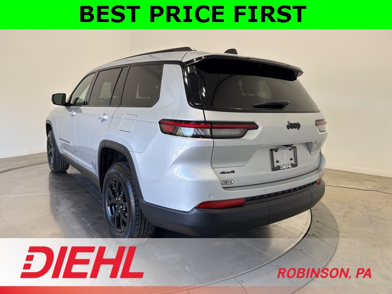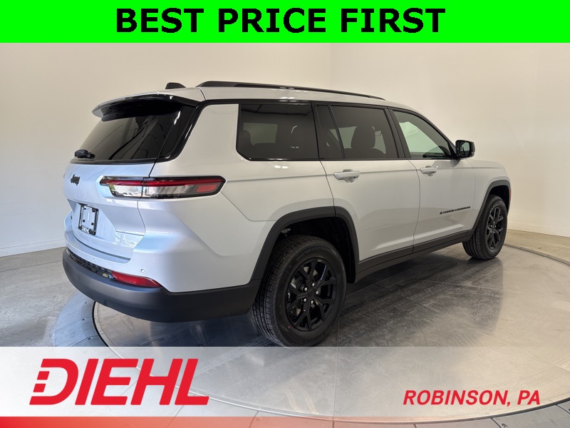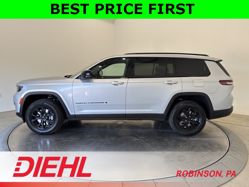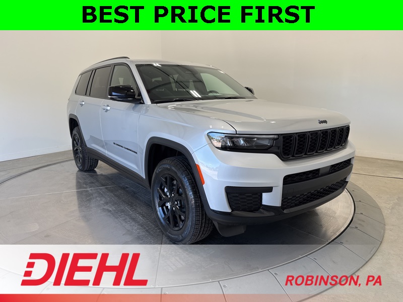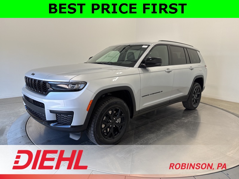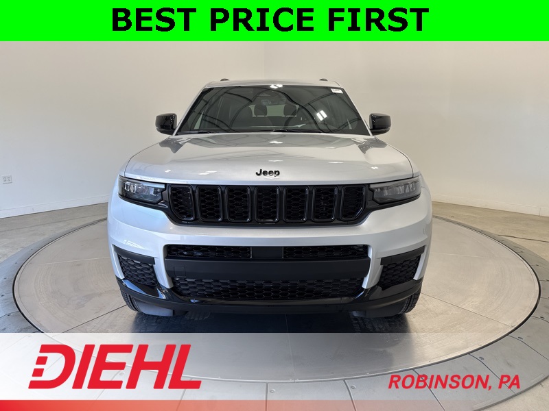 2025 Jeep Grand Cherokee L Altitude X 4x4 – Silver 7-Passenger SUV with Blackout PackageSophisticated meets adventurous in this 2025 Jeep Grand Cherokee L Altitude X 4x4, finished in Silver Zynith with a sleek black interior. This SUV isn’t here to blend in—it’s here to command attention, with gloss black accents, painted 20-inch aluminum wheels, and the all-out swagger of Jeep’s iconic design language.Powered by the 3.6L V6 engine paired with the smooth 8-speed automatic transmission, this Grand Cherokee L has the muscle for Pittsburgh commutes, weekend trips to Deep Creek, and everything in between. Jeep’s Quadra-Trac 4WD with Selec-Terrain adds the kind of confidence that makes snow, rain, and muddy trails feel like no big deal.Inside, the Preferred Package 23M spoils you with heated front seats, a power liftgate, remote start, and wireless charging so you never scramble for cords. With the 7-Passenger Group, this SUV transforms into the ultimate family and friend mover, adding a 2nd row bench seat, 3rd row head restraints, and extra cupholders so nobody has to fight over space.Technology comes standard too: the 10.25-inch digital driver display, 8.4-inch Uconnect touchscreen with Apple CarPlay and Android Auto, and a six-speaker audio system keep every ride connected and entertaining. Add in deep-tint privacy glass, LED lighting, and a cabin that balances rugged durability with modern comfort, and you’ve got an SUV that feels equally at home on Fifth Avenue or a dirt road.Backed by advanced safety features like Blind Spot Detection, Forward Collision Warning, Adaptive Cruise with Stop & Go, and ParkSense Rear Park Assist, this Grand Cherokee L isn’t just about looking good—it’s about keeping your crew protected on every trip.This 2025 Jeep Grand Cherokee L Altitude X 4x4 in Silver Zynith is the perfect mix of capability, space, and style. Don’t let it slip away—schedule your test drive today at Diehl of Robinson and experience SUV luxury that’s built to do it all. Price includes: $2000 - 2025 National Retail Bonus Cash . Exp. 11/03/2025 $500 - 2025 National Jeep Monopoly Money Bonus Cash . Exp. 11/03/2025
