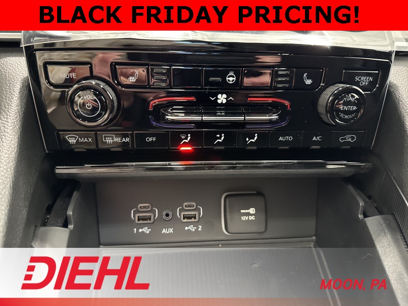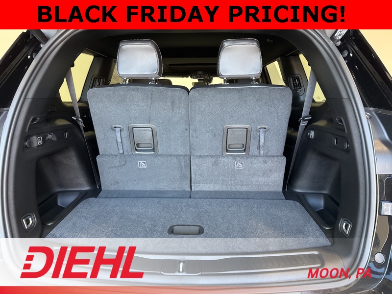 Inside, sophistication meets practicality. The black leatherette and suede seats are heated in both the front and second rows, the heated steering wheel adds comfort to cold commutes, and the tri zone climate control keeps everyone happy from front to back. The 10.1 inch touchscreen with Apple CarPlay, Android Auto, and voice command makes every trip connected and convenient. With the Customer Preferred Package, you also get a power liftgate, remote start, rain sensing wipers, wireless charging pad, and black exterior accents that give this SUV a sleek, modern edge.