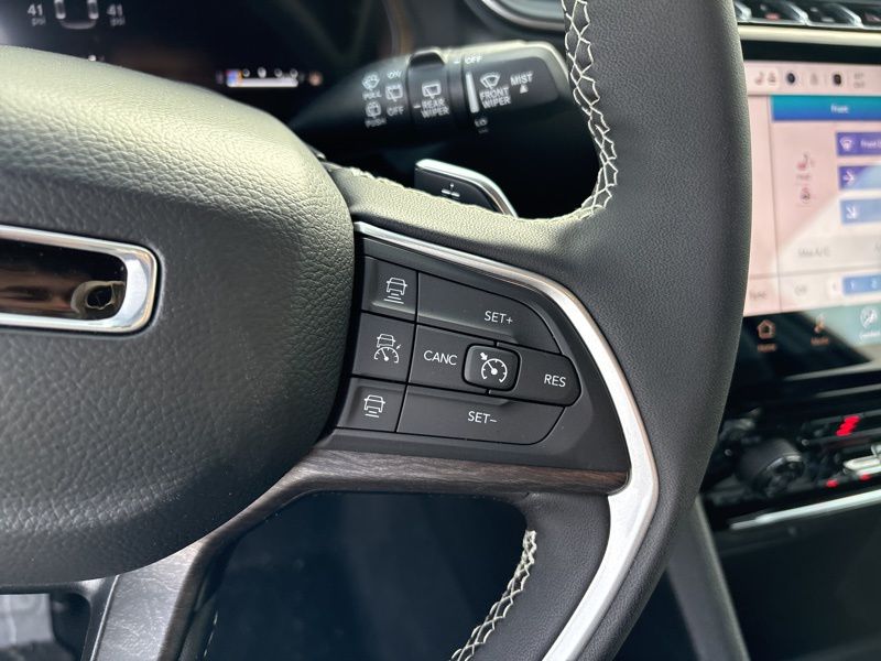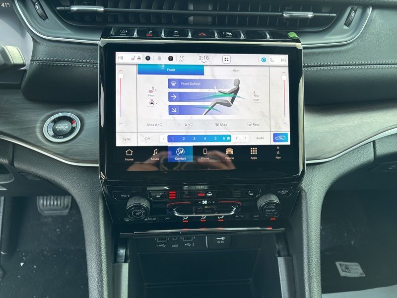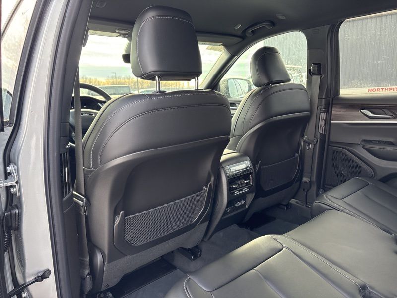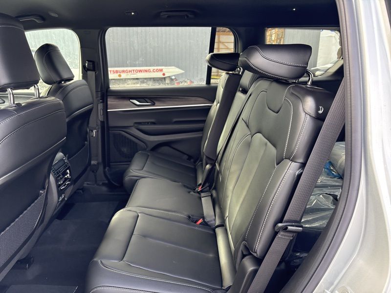 With 7 passenger seating and a third row split bench, this Grand Cherokee L offers flexible interior space. The second row includes a 60/40 bench with manual tip and slide, center armrest with cupholders, and three rear head restraints, while the reclining third row adds comfort for longer trips. Rear air conditioning ensures all passengers stay comfortable.