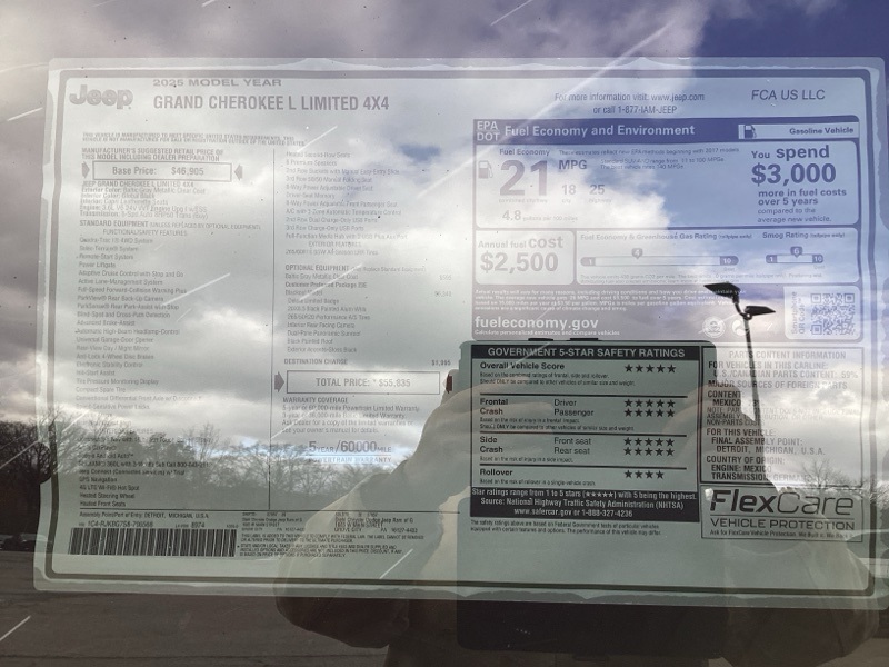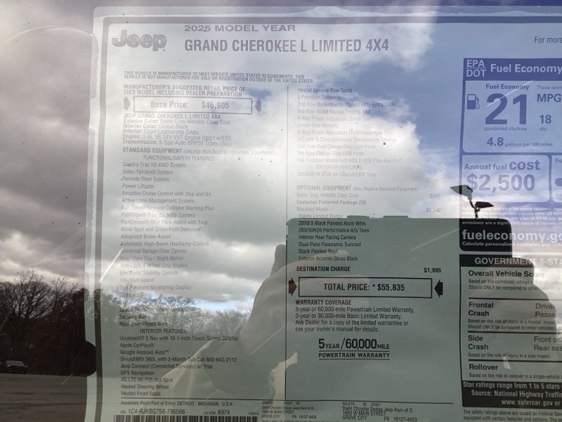 Baltic Gray Metallic Clearcoat 2025 Grand Cherokee L Jeep Limited 4D Sport Utility 4WD 8-Speed Automatic 3.6L V6 24V VVT Price includes: $2000 - 2025 National SFS Lease Loyalty Bonus Cash. Exp. 01/05/2026 $2500 - 2025 National Retail Bonus Cash . Exp. 01/05/2026