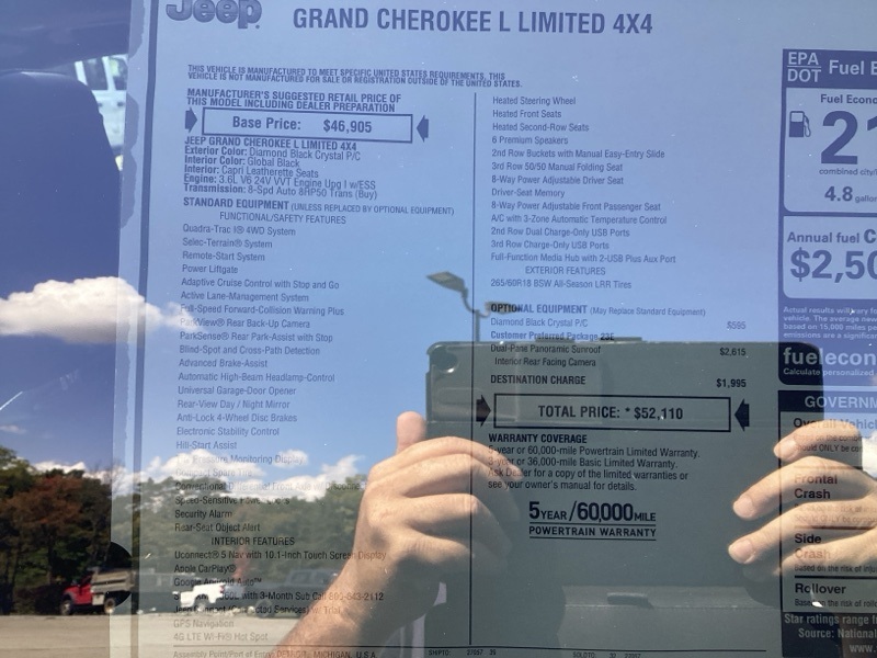 Diamond Black Crystal Pearlcoat 2025 Grand Cherokee L Jeep Limited 4D Sport Utility 4WD 8-Speed Automatic 3.6L V6 24V VVT Price includes: $1000 - 2025 National Grand Cherokee Loyalty Retail Bonus Cash . Exp. 11/03/2025 $2000 - 2025 National Retail Bonus Cash . Exp. 11/03/2025 $2000 - 2025 National SFS Lease Loyalty Bonus Cash. Exp. 11/03/2025 $500 - 2025 National Jeep Monopoly Money Bonus Cash . Exp. 11/03/2025