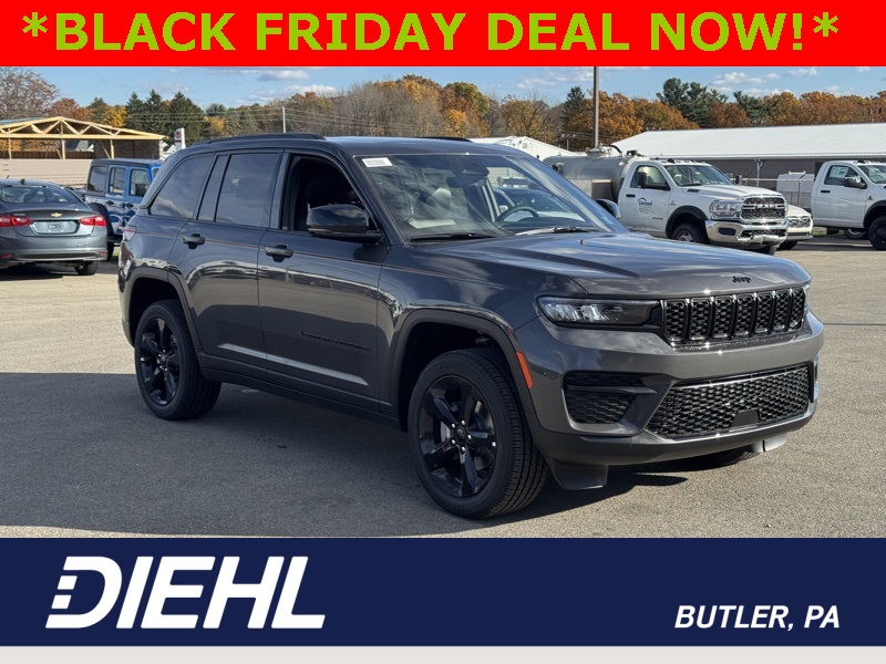 4WD, ABS brakes, Active Cruise Control, Alloy wheels, Compass, Electronic Stability Control, Emergency communication system, Front dual zone A/C, Heated door mirrors, Illuminated entry, Low tire pressure warning, ParkView Rear Back-Up Camera, Remote keyless entry, Traction control, 4-Wheel Disc Brakes, 6 Speakers, Air Conditioning, AM/FM radio: SiriusXM, Anti-whiplash front head restraints, Automatic temperature control, Brake assist, Bumpers: body-color, Cloth Seats, Delay-off headlights, Driver door bin, Driver vanity mirror, Dual front impact airbags, Dual front side impact airbags, Four wheel independent suspension, Front anti-roll bar, Front Bucket Seats, Front Center Armrest w/Storage, Front reading lights, Fully automatic headlights, Knee airbag, Normal Duty Suspension, Occupant sensing airbag, Outside temperature display, Overhead airbag, Overhead console, Panic alarm, Passenger door bin, Passenger vanity mirror, Power door mirrors, Power driver seat, Power steering, Power windows, Radio data system, Radio: Uconnect 5 w/8.4" Display, Rear anti-roll bar, Rear reading lights, Rear window defroster, Rear window wiper, Security system, Speed control, Speed-Sensitive Wipers, Split folding rear seat, Spoiler, Steering wheel mounted audio controls, Tachometer, Telescoping steering wheel, Tilt steering wheel, Trip computer, Variably intermittent wipers, Voltmeter, and Wheels: 17" x 6.5" Fully Painted Aluminum. 4WD, ABS brakes, Active Cruise Control, Alloy wheels, Compass, Electronic Stability Control, Emergency communication system, Front dual zone A/C, Heated door mirrors, Illuminated entry, Low tire pressure warning, ParkView Rear Back-Up Camera, Remote keyless entry, Traction control. Baltic Gray Metallic Clearcoat 2025 Jeep Grand Cherokee Altitude X 4WD 8-Speed Automatic 3.6L V6 24V VVT