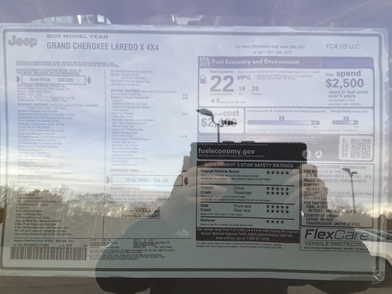 Diamond Black Crystal Pearlcoat 2025 Grand Cherokee Jeep Laredo X 4D Sport Utility 4WD 8-Speed Automatic 3.6L V6 24V VVT