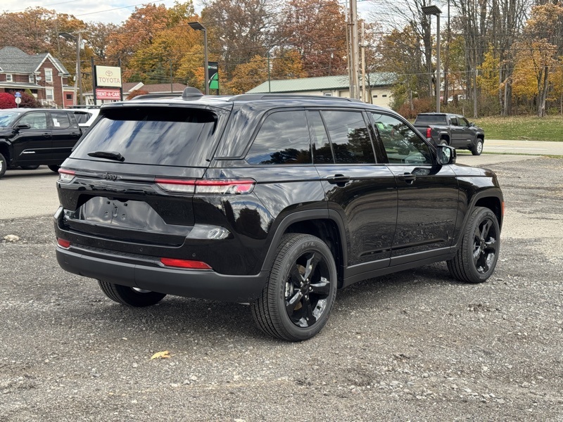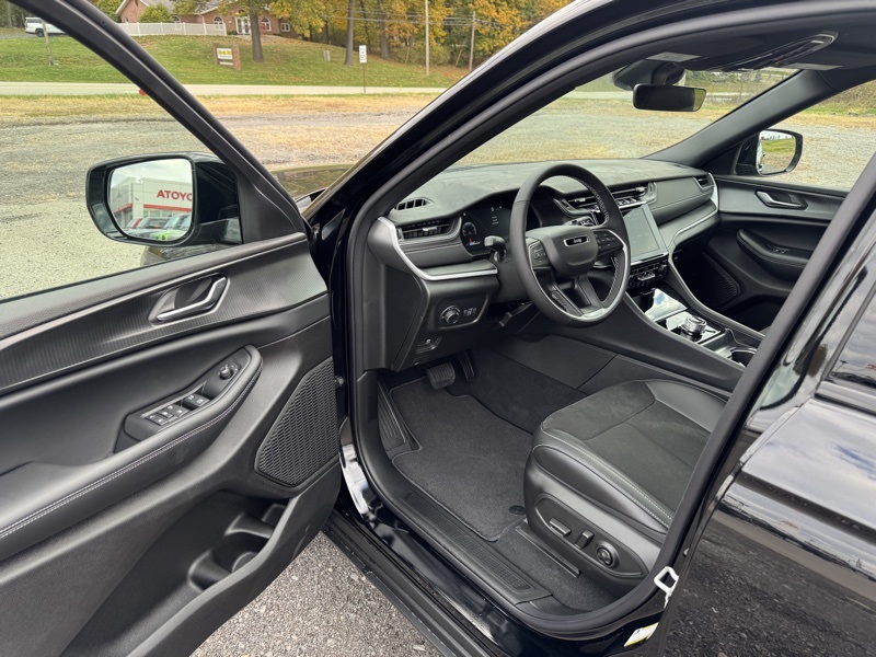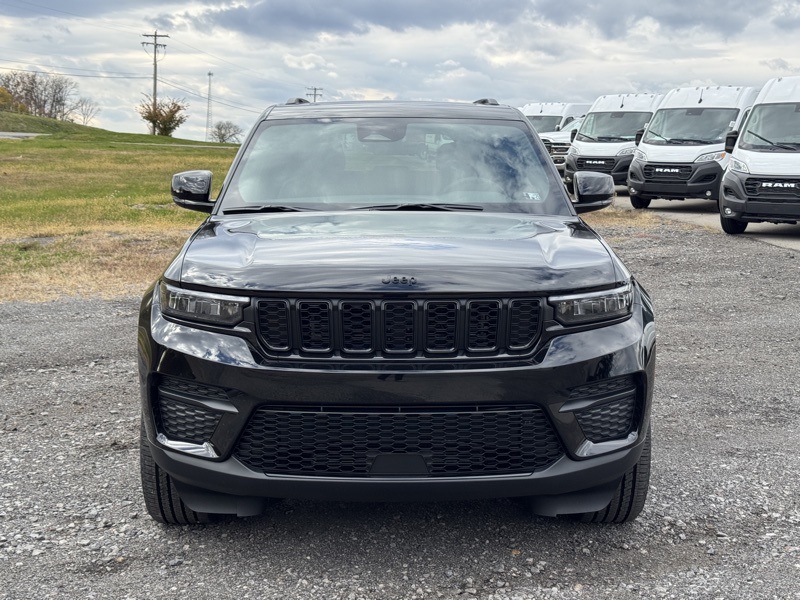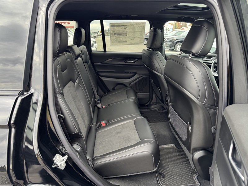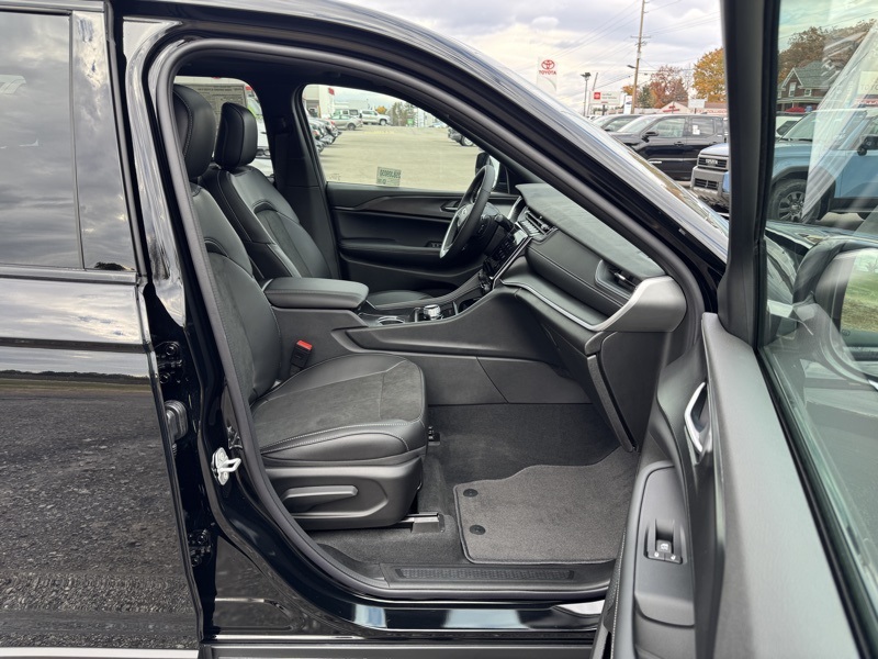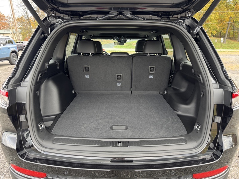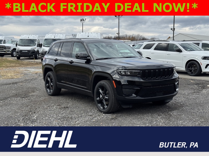 Quick Order Package 23M Altitude X (115V Auxiliary Power Outlet, Altitude X, Black Headliner, Capri Leatherette/Suede Seats, Delete Laredo Badge, Gloss Black Exterior Accents, Heated Front Seats, Heated Steering Wheel, Power Liftgate, Power Sunroof, Rain Sensitive Windshield Wipers, Remote Start System, Selectable Tire Fill Alert, Wheels: 18" x 8" Fully Painted Aluminum 1, and Wireless Charging Pad), Trailer Tow Package (180 Amp Alternator, 7 & 4-Pin Wiring Harness, Automatic Headlamp Levelling System, Class IV Receiver Hitch, Heavy-Duty Engine Cooling, Rear Load Levelling Suspension, and Trailer Hitch Zoom), 4WD, 4-Wheel Disc Brakes, 6 Speakers, ABS brakes, Air Conditioning, Alloy wheels, AM/FM radio: SiriusXM, Anti-whiplash front head restraints, Automatic temperature control, Brake assist, Bumpers: body-color, Cloth Seats, Compass, Delay-off headlights, Driver door bin, Driver vanity mirror, Dual front impact airbags, Dual front side impact airbags, Electronic Stability Control, Emergency communication system, Four wheel independent suspension, Front anti-roll bar, Front Bucket Seats, Front Center Armrest w/Storage, Front dual zone A/C, Front reading lights, Fully automatic headlights, Heated door mirrors, Illuminated entry, Knee airbag, Low tire pressure warning, Model Year Tracking, Normal Duty Suspension, Occupant sensing airbag, Outside temperature display, Overhead airbag, Overhead console, Panic alarm, ParkView Rear Back-Up Camera, Passenger door bin, Passenger vanity mirror, Power door mirrors, Power driver seat, Power steering, Power windows, Radio data system, Radio: Uconnect 5 w/8.4" Display, Rear anti-roll bar, Rear reading lights, Rear window defroster, Rear window wiper, Remote keyless entry, Security system, Speed control, Speed-Sensitive Wipers, Split folding rear seat, Spoiler, Steering wheel mounted audio controls, Tachometer, Telescoping steering wheel, Tilt steering wheel, Traction control, Trip computer, Variably intermittent wipers, Voltmeter, Wheels: 17" x 6.5" Fully Painted Aluminum, and Wheels: 20" x 8.5" Gloss Black Painted Aluminum. 4WD. Diamond Black Crystal Pearlcoat 2025 Jeep Grand Cherokee Altitude X 4WD 8-Speed Automatic 3.6L V6 24V VVT