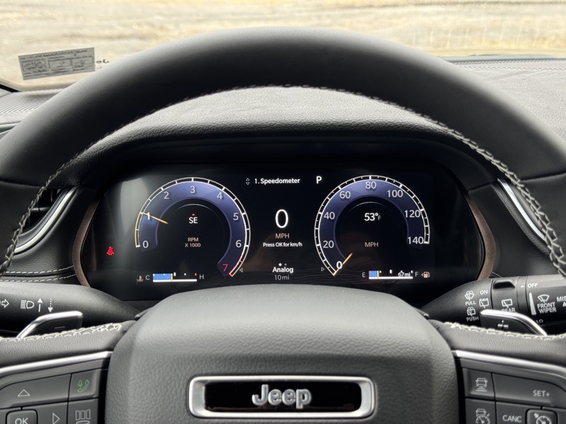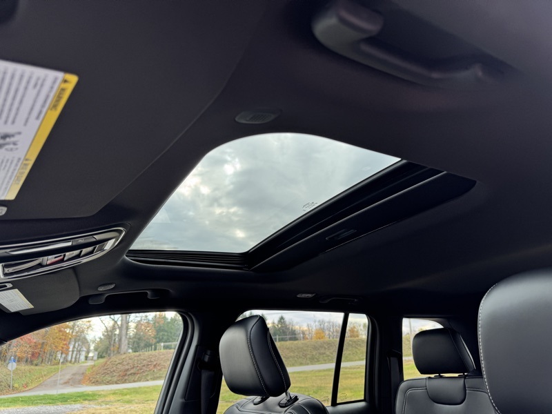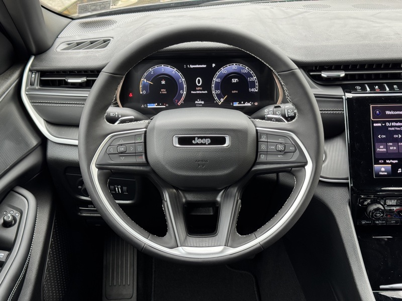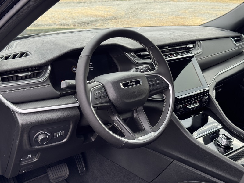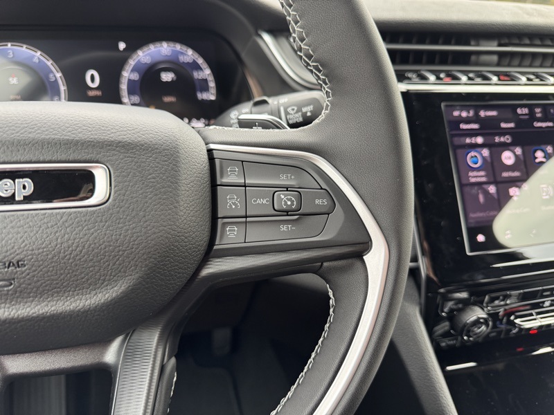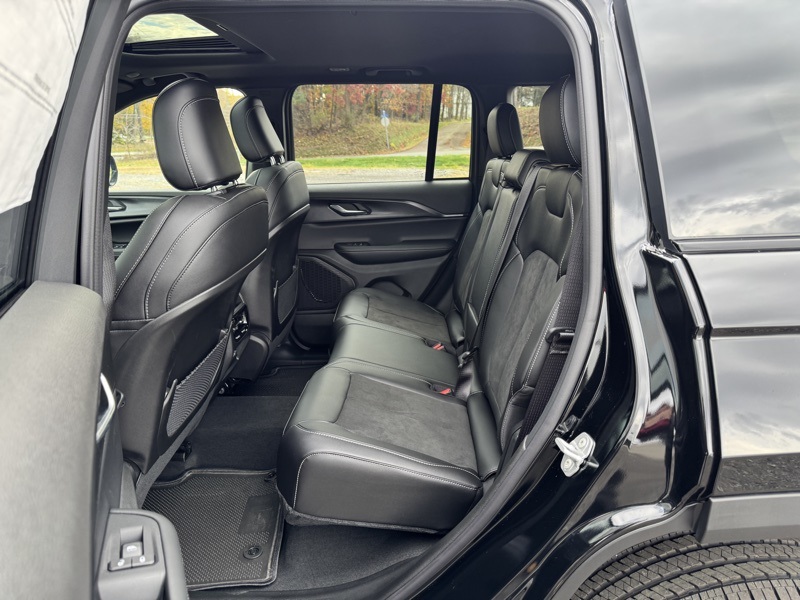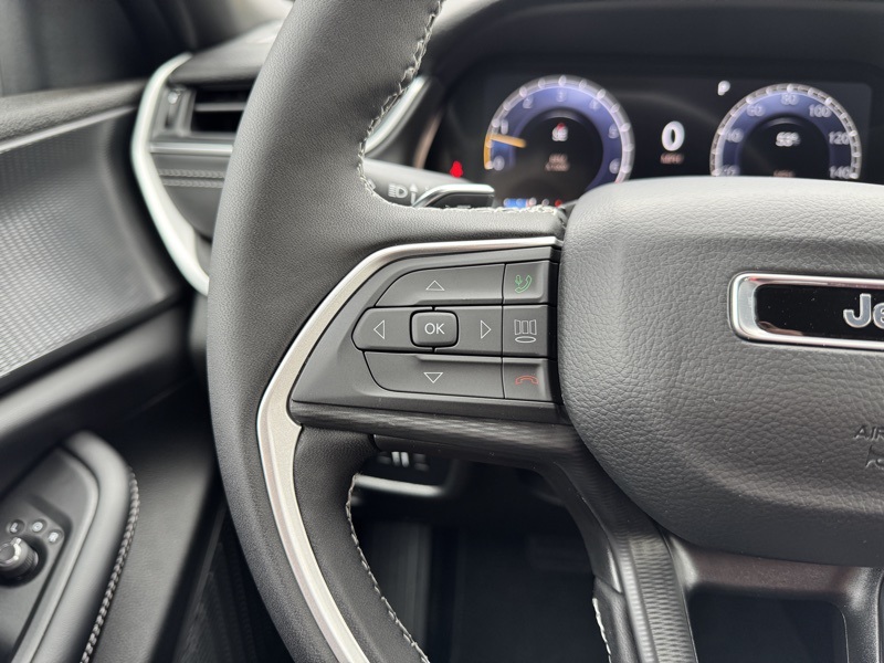Quick Order Package 23M Altitude X (115V Auxiliary Power Outlet, Altitude X, Black Headliner, Capri Leatherette/Suede Seats, Delete Laredo Badge, Gloss Black Exterior Accents, Heated Front Seats, Heated Steering Wheel, Power Liftgate, Power Sunroof, Rain Sensitive Windshield Wipers, Remote Start System, Selectable Tire Fill Alert, Wheels: 18" x 8" Fully Painted Aluminum 1, and Wireless Charging Pad), Trailer Tow Package (180 Amp Alternator, 7 & 4-Pin Wiring Harness, Automatic Headlamp Levelling System, Class IV Receiver Hitch, Heavy-Duty Engine Cooling, Rear Load Levelling Suspension, and Trailer Hitch Zoom), 4WD, 4-Wheel Disc Brakes, 6 Speakers, ABS brakes, Air Conditioning, Alloy wheels, AM/FM radio: SiriusXM, Anti-whiplash front head restraints, Automatic temperature control, Brake assist, Bumpers: body-color, Cloth Seats, Compass, Delay-off headlights, Driver door bin, Driver vanity mirror, Dual front impact airbags, Dual front side impact airbags, Electronic Stability Control, Emergency communication system, Four wheel independent suspension, Front anti-roll bar, Front Bucket Seats, Front Center Armrest w/Storage, Front dual zone A/C, Front reading lights, Fully automatic headlights, Heated door mirrors, Illuminated entry, Knee airbag, Low tire pressure warning, Model Year Tracking, Normal Duty Suspension, Occupant sensing airbag, Outside temperature display, Overhead airbag, Overhead console, Panic alarm, ParkView Rear Back-Up Camera, Passenger door bin, Passenger vanity mirror, Power door mirrors, Power driver seat, Power steering, Power windows, Radio data system, Radio: Uconnect 5 w/8.4" Display, Rear anti-roll bar, Rear reading lights, Rear window defroster, Rear window wiper, Remote keyless entry, Security system, Speed control, Speed-Sensitive Wipers, Split folding rear seat, Spoiler, Steering wheel mounted audio controls, Tachometer, Telescoping steering wheel, Tilt steering wheel, Traction control, Trip computer, Variably intermittent wipers, Voltmeter, Wheels: 17" x 6.5" Fully Painted Aluminum, and Wheels: 20" x 8.5" Gloss Black Painted Aluminum. 4WD. Diamond Black Crystal Pearlcoat 2025 Jeep Grand Cherokee Altitude X 4WD 8-Speed Automatic 3.6L V6 24V VVT