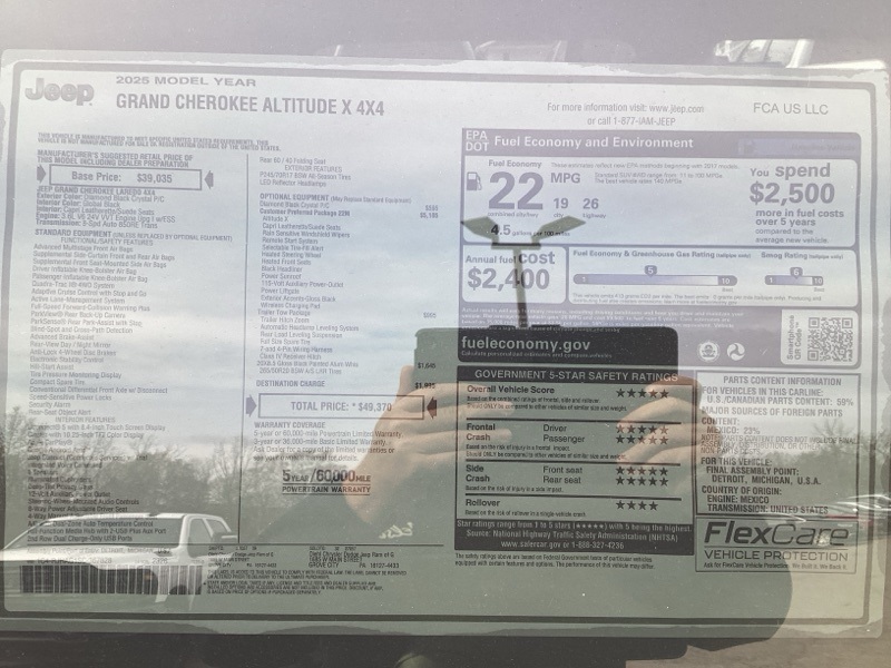 Diamond Black Crystal Pearlcoat 2025 Grand Cherokee Jeep Laredo X 4D Sport Utility 4WD 8-Speed Automatic 3.6L V6 24V VVT