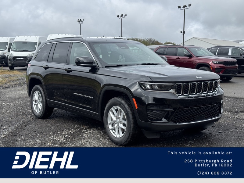 Luxury Tech Group I (115V Auxiliary Power Outlet, Heated Front Seats, Heated Steering Wheel, Power Liftgate, Rain Sensitive Windshield Wipers, Remote Start System, Satellite Radio, Secondary Active Grille Shutters, Selectable Tire Fill Alert, and Wireless Charging Pad), Quick Order Package 23D Laredo X (Laredo X, Power Sunroof, and Wheels: 18" x 8" Fully Painted Aluminum), Trailer Tow Package (180 Amp Alternator, 7 & 4-Pin Wiring Harness, Automatic Headlamp Levelling System, Class IV Receiver Hitch, Heavy-Duty Engine Cooling, Rear Load Levelling Suspension, and Trailer Hitch Zoom), 4WD, 4-Wheel Disc Brakes, 6 Speakers, ABS brakes, Air Conditioning, Alloy wheels, AM/FM radio: SiriusXM, Anti-whiplash front head restraints, Automatic temperature control, Brake assist, Bumpers: body-color, Cloth Seats, Compass, Delay-off headlights, Driver door bin, Driver vanity mirror, Dual front impact airbags, Dual front side impact airbags, Electronic Stability Control, Emergency communication system, Four wheel independent suspension, Front anti-roll bar, Front Bucket Seats, Front Center Armrest w/Storage, Front dual zone A/C, Front reading lights, Fully automatic headlights, Heated door mirrors, Illuminated entry, Knee airbag, Low tire pressure warning, Model Year Tracking, Normal Duty Suspension, Occupant sensing airbag, Outside temperature display, Overhead airbag, Overhead console, Panic alarm, ParkView Rear Back-Up Camera, Passenger door bin, Passenger vanity mirror, Power door mirrors, Power driver seat, Power steering, Power windows, Radio data system, Radio: Uconnect 5 w/8.4" Display, Rear anti-roll bar, Rear reading lights, Rear window defroster, Rear window wiper, Remote keyless entry, Security system, Speed control, Speed-Sensitive Wipers, Split folding rear seat, Spoiler, Steering wheel mounted audio controls, Tachometer, Telescoping steering wheel, Tilt steering wheel, Traction control, Trip computer, Variably intermittent wipers, Voltmeter, and Wheels: 17" x 6.5" Fully Painted Aluminum. 4WD. Recent Arrival! Diamond Black Crystal Pearlcoat 2025 Jeep Grand Cherokee Laredo X 4WD 8-Speed Automatic 3.6L V6 24V VVTPriced below KBB Fair Purchase Price!19/26 City/Highway MPGType your sentence here.