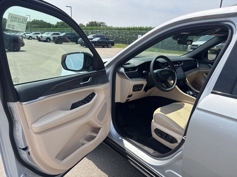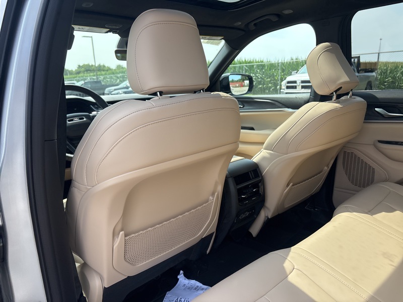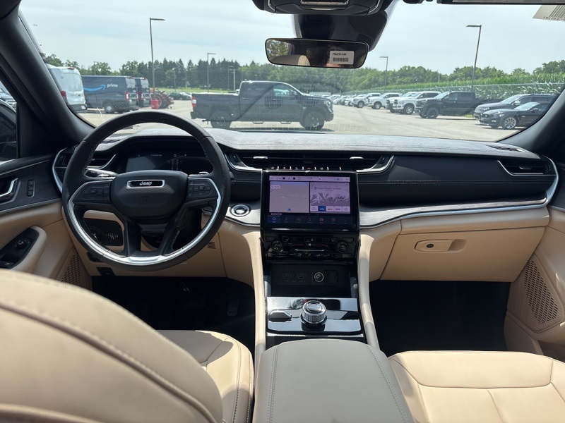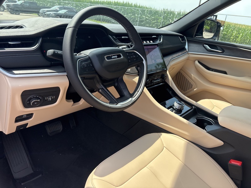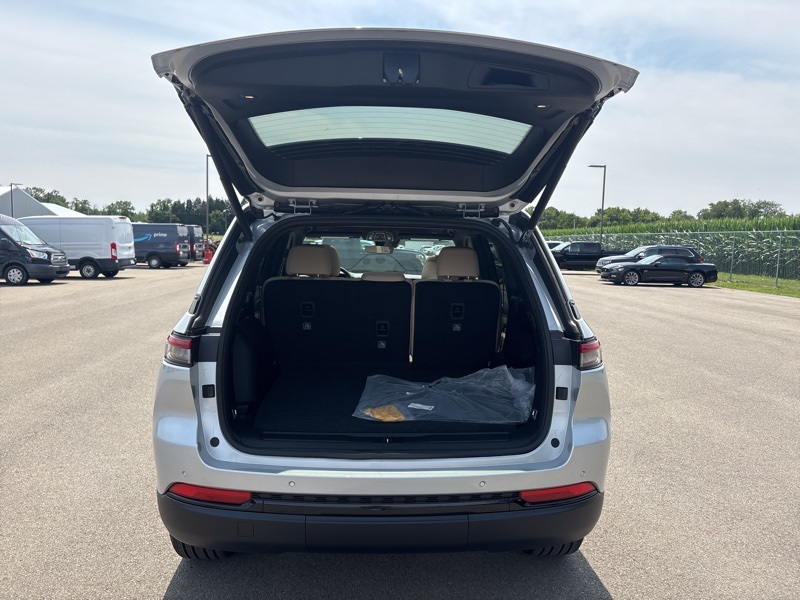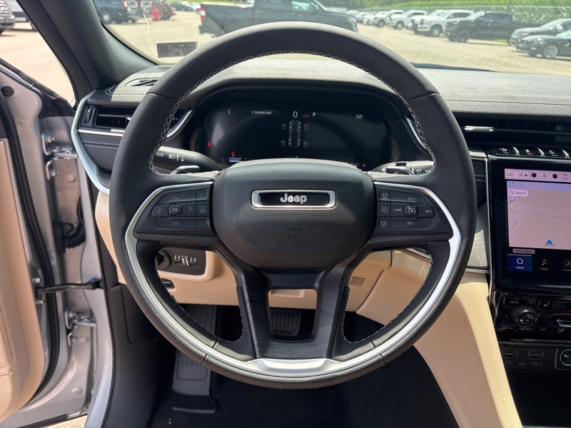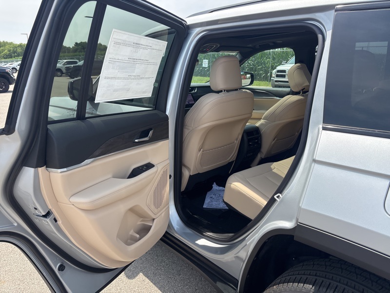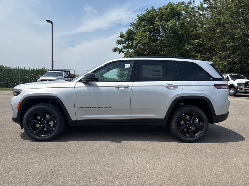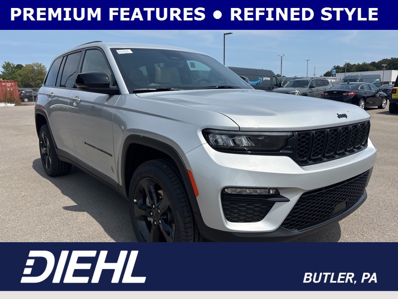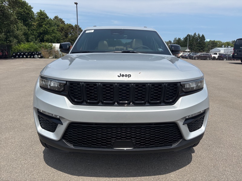 Black Appearance Package (Gloss Black Exterior Accents and Wheels: 20" x 8.5" Gloss Black Painted Aluminum), Quick Order Package 22E, 4WD, 4-Wheel Disc Brakes, 6 Speakers, ABS brakes, Active Noise Control System, Air Conditioning, Alloy wheels, AM/FM radio: SiriusXM with 360L, Anti-whiplash front head restraints, Audio memory, Auto High-beam Headlights, Automatic temperature control, Brake assist, Bumpers: body-color, Capri Leatherette Seats, Compass, Delay-off headlights, Driver door bin, Driver vanity mirror, Dual front impact airbags, Dual front side impact airbags, Dual-Pane Panoramic Sunroof, Electronic Stability Control, Emergency communication system, Four wheel independent suspension, Front anti-roll bar, Front Bucket Seats, Front Center Armrest w/Storage, Front dual zone A/C, Front fog lights, Front reading lights, Fully automatic headlights, Garage door transmitter, Heated door mirrors, Heated front seats, Heated rear seats, Heated steering wheel, Illuminated entry, Knee airbag, Low tire pressure warning, Memory seat, Model Year Tracking, Navigation System, Normal Duty Suspension, Occupant sensing airbag, Outside temperature display, Overhead airbag, Overhead console, Panic alarm, ParkView Rear Back-Up Camera, Passenger door bin, Passenger vanity mirror, Power door mirrors, Power driver seat, Power Liftgate, Power passenger seat, Power steering, Power windows, Radio data system, Radio: Uconnect 5 Nav w/10.1" Display, Rear anti-roll bar, Rear reading lights, Rear window defroster, Rear window wiper, Remote keyless entry, Security system, Speed control, Speed-Sensitive Wipers, Split folding rear seat, Spoiler, Steering wheel mounted audio controls, Tachometer, Telescoping steering wheel, Tilt steering wheel, Traction control, Trip computer, Turn signal indicator mirrors, Variably intermittent wipers, Voltmeter, and Wheels: 18" x 8" Polished/Painted Aluminum. 4WD. Silver Zynith 2025 Jeep Grand Cherokee Limited 4WD 8-Speed Automatic 3.6L V6 24V VVT