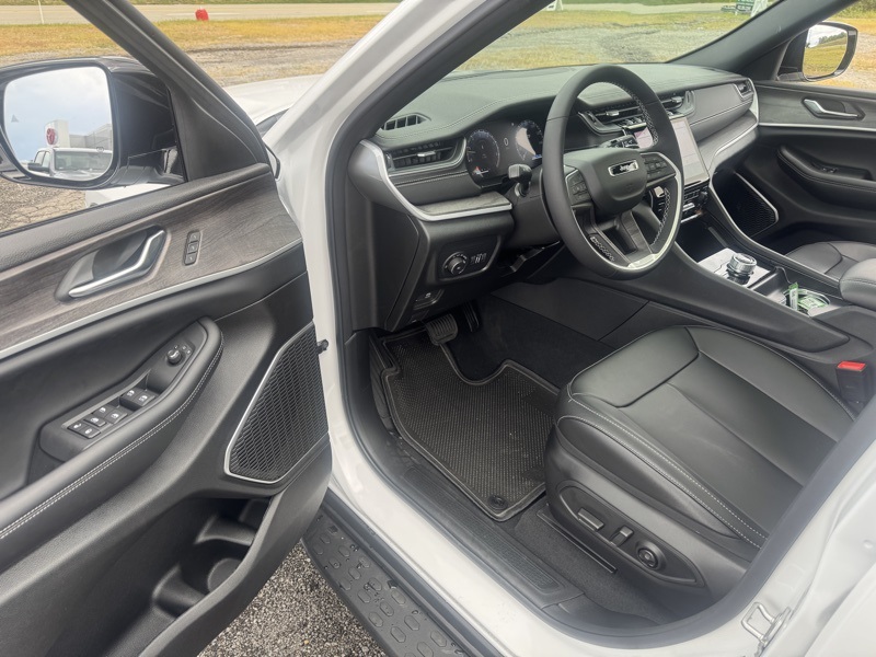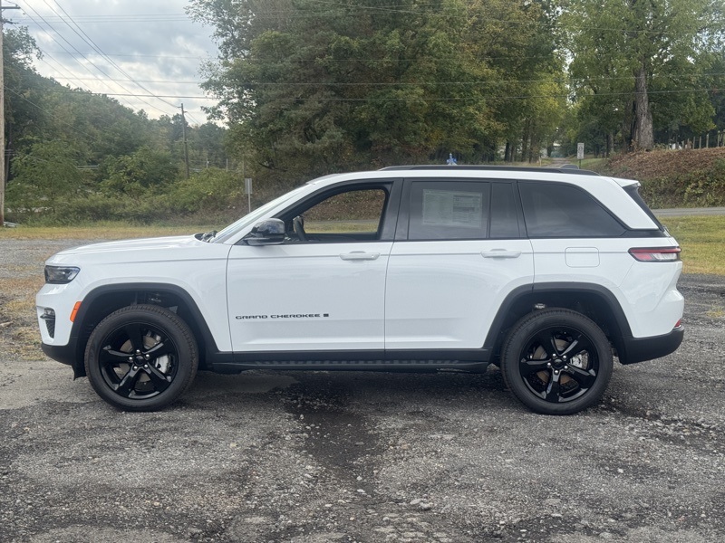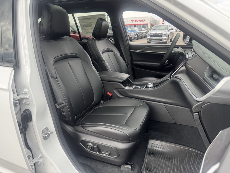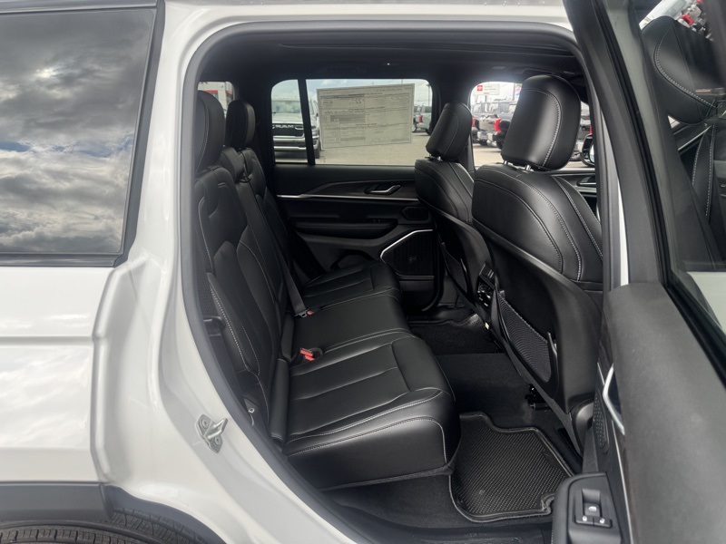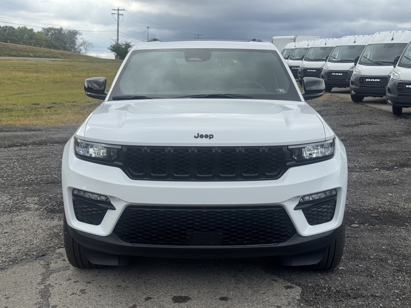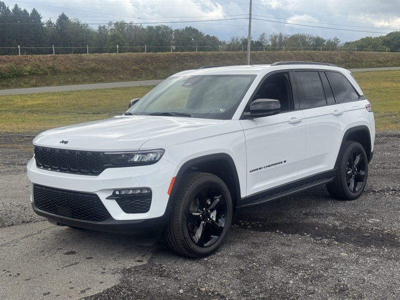 Black Appearance Package (Gloss Black Exterior Accents and Wheels: 20" x 8.5" Gloss Black Painted Aluminum), Quick Order Package 22E, Trailer Tow Package (220 Amp Alternator, 7 & 4-Pin Wiring Harness, Automatic Headlamp Levelling System, Class IV Receiver Hitch, Heavy-Duty Engine Cooling, Rear Load Levelling Suspension, and Trailer Hitch Zoom), 4WD, 4-Wheel Disc Brakes, 506 Watt Amplifier, 6 Speakers, 9 Amplified Speakers w/Subwoofer, ABS brakes, Active Noise Control System, Air Conditioning, Alloy wheels, AM/FM radio: SiriusXM with 360L, Anti-whiplash front head restraints, Audio memory, Auto High-beam Headlights, Automatic temperature control, Brake assist, Bumpers: body-color, Capri Leatherette Seats, Compass, Delay-off headlights, Driver door bin, Driver vanity mirror, Dual front impact airbags, Dual front side impact airbags, Dual-Pane Panoramic Sunroof, Electronic Stability Control, Emergency communication system, Four wheel independent suspension, Front anti-roll bar, Front Bucket Seats, Front Center Armrest w/Storage, Front dual zone A/C, Front fog lights, Front reading lights, Fully automatic headlights, Garage door transmitter, Heated door mirrors, Heated front seats, Heated rear seats, Heated steering wheel, Illuminated entry, Knee airbag, Low tire pressure warning, Memory seat, Model Year Tracking, MOPAR Black Side Steps, Navigation System, Normal Duty Suspension, Occupant sensing airbag, Outside temperature display, Overhead airbag, Overhead console, Panic alarm, ParkView Rear Back-Up Camera, Passenger door bin, Passenger vanity mirror, Power door mirrors, Power driver seat, Power Liftgate, Power passenger seat, Power steering, Power windows, Radio data system, Radio: Uconnect 5 Nav w/10.1" Display, Rear anti-roll bar, Rear reading lights, Rear window defroster, Rear window wiper, Remote keyless entry, Security system, Speed control, Speed-Sensitive Wipers, Split folding rear seat, Spoiler, Steering wheel mounted audio controls, Tachometer, Telescoping steering wheel, Tilt steering wheel, Traction control, Trip computer, Turn signal indicator mirrors, Variably intermittent wipers, Voltmeter, and Wheels: 18" x 8" Polished/Painted Aluminum. 4WD. Bright White Clearcoat 2025 Jeep Grand Cherokee Limited 4WD 8-Speed Automatic 3.6L V6 24V VVT