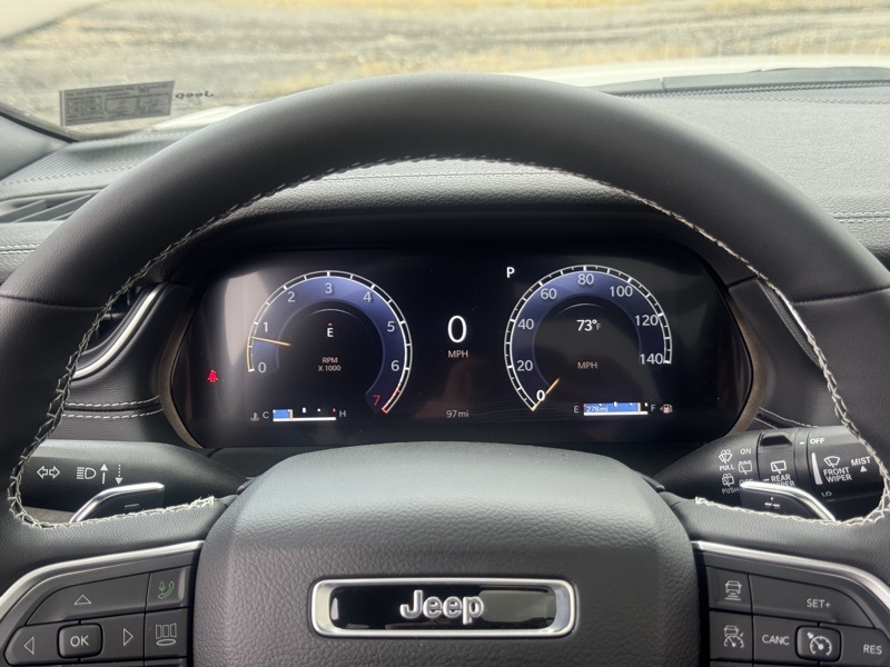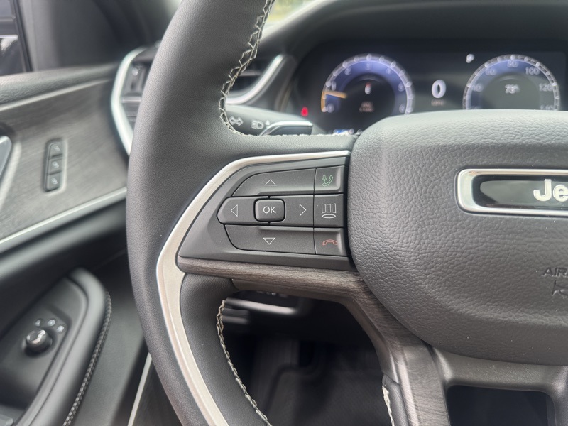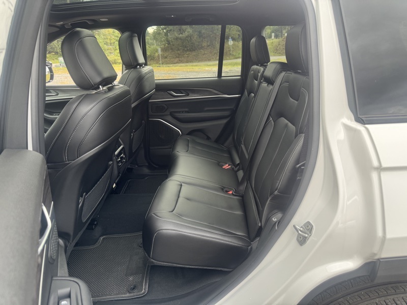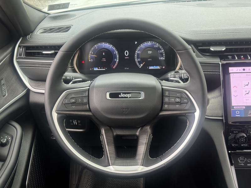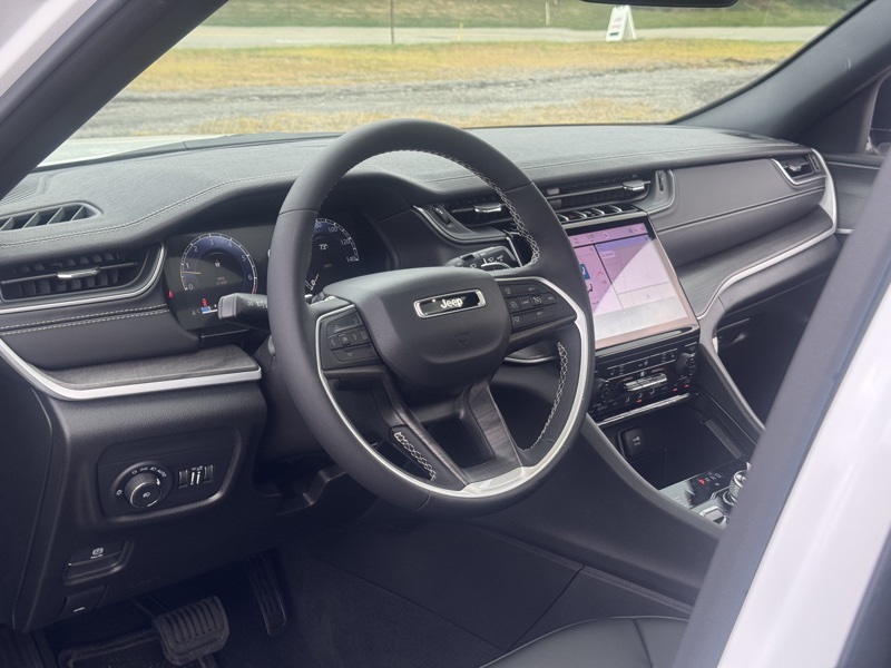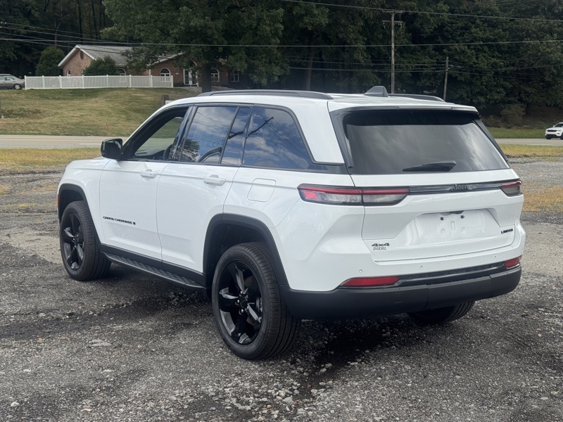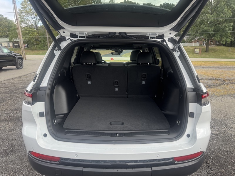 Black Appearance Package (Gloss Black Exterior Accents and Wheels: 20" x 8.5" Gloss Black Painted Aluminum), Quick Order Package 22E, Trailer Tow Package (220 Amp Alternator, 7 & 4-Pin Wiring Harness, Automatic Headlamp Levelling System, Class IV Receiver Hitch, Heavy-Duty Engine Cooling, Rear Load Levelling Suspension, and Trailer Hitch Zoom), 4WD, 4-Wheel Disc Brakes, 506 Watt Amplifier, 6 Speakers, 9 Amplified Speakers w/Subwoofer, ABS brakes, Active Noise Control System, Air Conditioning, Alloy wheels, AM/FM radio: SiriusXM with 360L, Anti-whiplash front head restraints, Audio memory, Auto High-beam Headlights, Automatic temperature control, Brake assist, Bumpers: body-color, Capri Leatherette Seats, Compass, Delay-off headlights, Driver door bin, Driver vanity mirror, Dual front impact airbags, Dual front side impact airbags, Dual-Pane Panoramic Sunroof, Electronic Stability Control, Emergency communication system, Four wheel independent suspension, Front anti-roll bar, Front Bucket Seats, Front Center Armrest w/Storage, Front dual zone A/C, Front fog lights, Front reading lights, Fully automatic headlights, Garage door transmitter, Heated door mirrors, Heated front seats, Heated rear seats, Heated steering wheel, Illuminated entry, Knee airbag, Low tire pressure warning, Memory seat, Model Year Tracking, MOPAR Black Side Steps, Navigation System, Normal Duty Suspension, Occupant sensing airbag, Outside temperature display, Overhead airbag, Overhead console, Panic alarm, ParkView Rear Back-Up Camera, Passenger door bin, Passenger vanity mirror, Power door mirrors, Power driver seat, Power Liftgate, Power passenger seat, Power steering, Power windows, Radio data system, Radio: Uconnect 5 Nav w/10.1" Display, Rear anti-roll bar, Rear reading lights, Rear window defroster, Rear window wiper, Remote keyless entry, Security system, Speed control, Speed-Sensitive Wipers, Split folding rear seat, Spoiler, Steering wheel mounted audio controls, Tachometer, Telescoping steering wheel, Tilt steering wheel, Traction control, Trip computer, Turn signal indicator mirrors, Variably intermittent wipers, Voltmeter, and Wheels: 18" x 8" Polished/Painted Aluminum. 4WD. Bright White Clearcoat 2025 Jeep Grand Cherokee Limited 4WD 8-Speed Automatic 3.6L V6 24V VVT