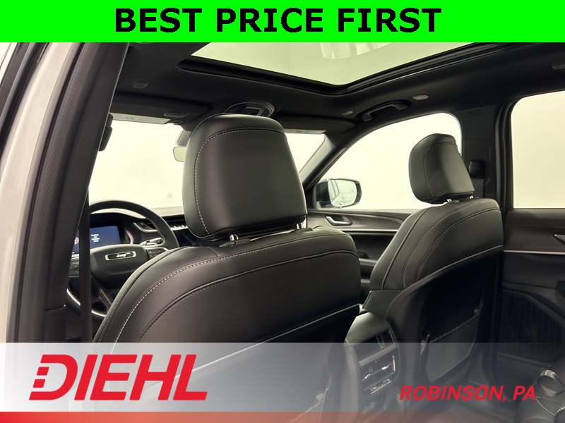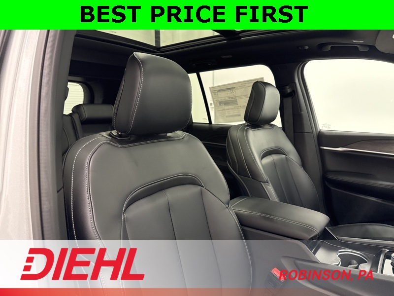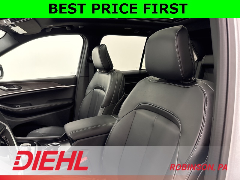 But the Customer Preferred Package 23E is what really unlocks the good stuff. It adds the black painted 20 inch wheels, the gloss black exterior accents, the power panoramic sunroof that completely changes the feel of the cabin, the upgraded interior trims, and the features that take this Limited from “nice” to “wow, this is way nicer than I expected.” Add in GPS navigation, SiriusXM with 360L, the full security alarm, second row USB ports, and the tire fill alert system, and this is a luxury grade SUV that still wears a Jeep badge proudly.