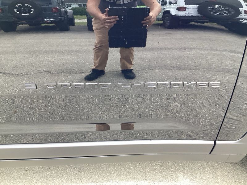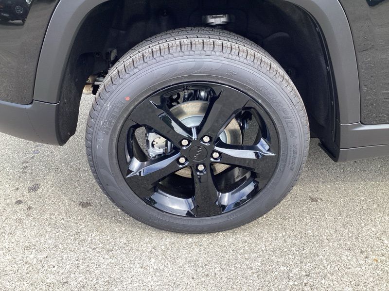 The **Black Appearance Package** gives this Grand Cherokee a clean, coordinated presence with **gloss black exterior accents** and **20" x 8.5" gloss black painted aluminum wheels**, while the **dual-pane panoramic sunroof** opens up the cabin with natural light. Body-color bumpers, a rear spoiler, and automatic exterior lighting complete the exterior package.