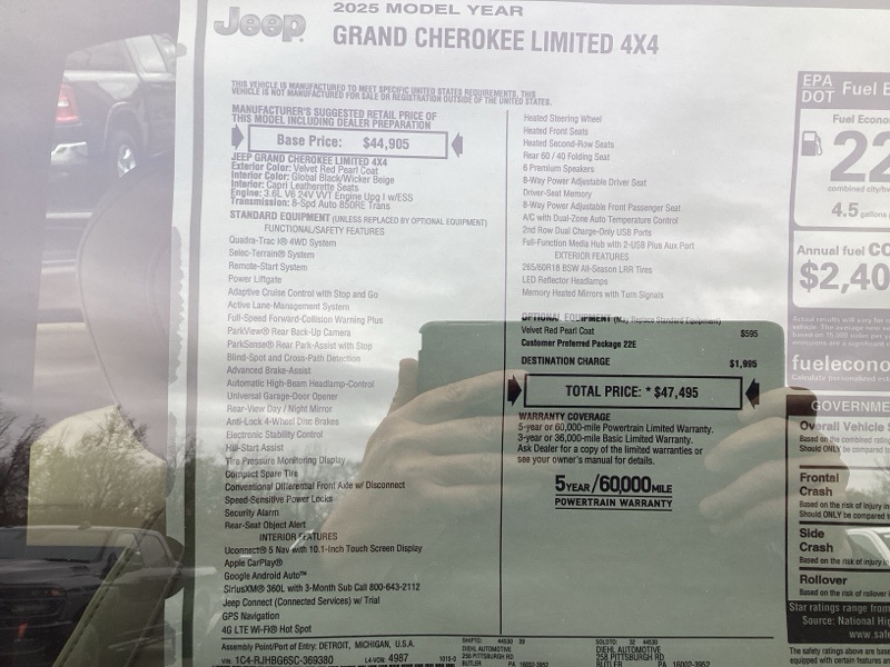 Velvet Red Pearlcoat 2025 Grand Cherokee Jeep Limited 4D Sport Utility 4WD 8-Speed Automatic 3.6L V6 24V VVT