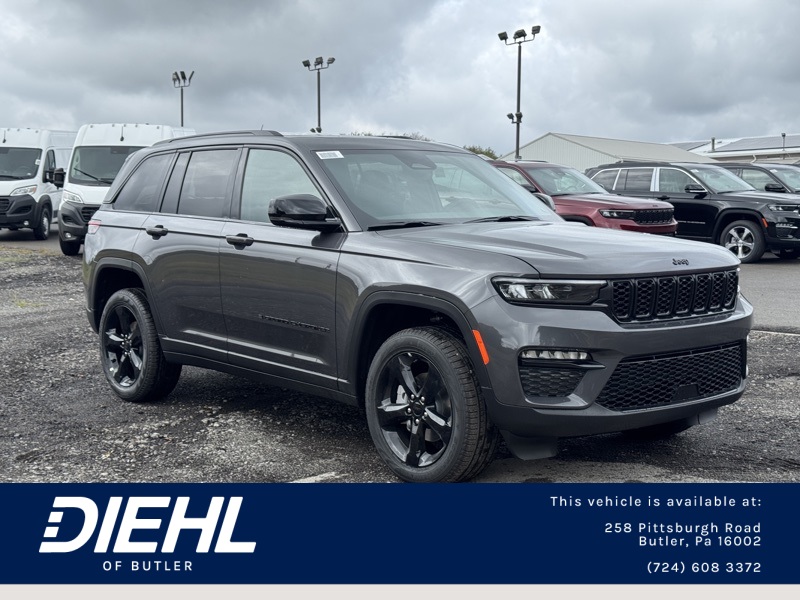 Black Appearance Package (Gloss Black Exterior Accents and Wheels: 20" x 8.5" Gloss Black Painted Aluminum), Quick Order Package 22E, 4WD, 4-Wheel Disc Brakes, 6 Speakers, ABS brakes, Active Noise Control System, Air Conditioning, Alloy wheels, AM/FM radio: SiriusXM with 360L, Anti-whiplash front head restraints, Audio memory, Auto High-beam Headlights, Automatic temperature control, Brake assist, Bumpers: body-color, Capri Leatherette Seats, Compass, Delay-off headlights, Driver door bin, Driver vanity mirror, Dual front impact airbags, Dual front side impact airbags, Dual-Pane Panoramic Sunroof, Electronic Stability Control, Emergency communication system, Four wheel independent suspension, Front anti-roll bar, Front Bucket Seats, Front Center Armrest w/Storage, Front dual zone A/C, Front fog lights, Front reading lights, Fully automatic headlights, Garage door transmitter, Heated door mirrors, Heated front seats, Heated rear seats, Heated steering wheel, Illuminated entry, Knee airbag, Low tire pressure warning, Memory seat, Model Year Tracking, Navigation System, Normal Duty Suspension, Occupant sensing airbag, Outside temperature display, Overhead airbag, Overhead console, Panic alarm, ParkView Rear Back-Up Camera, Passenger door bin, Passenger vanity mirror, Power door mirrors, Power driver seat, Power Liftgate, Power passenger seat, Power steering, Power windows, Radio data system, Radio: Uconnect 5 Nav w/10.1" Display, Rear anti-roll bar, Rear reading lights, Rear window defroster, Rear window wiper, Remote keyless entry, Security system, Speed control, Speed-Sensitive Wipers, Split folding rear seat, Spoiler, Steering wheel mounted audio controls, Tachometer, Telescoping steering wheel, Tilt steering wheel, Traction control, Trip computer, Turn signal indicator mirrors, Variably intermittent wipers, Voltmeter, and Wheels: 18" x 8" Polished/Painted Aluminum. 4WD. Recent Arrival! Baltic Gray Metallic Clearcoat 2025 Jeep Grand Cherokee Limited 4WD 8-Speed Automatic 3.6L V6 24V VVT19/26 City/Highway MPGType your sentence here. Price includes: $1000 - 2025 National Grand Cherokee Loyalty Retail Bonus Cash . Exp. 09/30/2025 $2000 - 2025 National SFS Lease Loyalty Bonus Cash. Exp. 09/30/2025 $2250 - 2025 National Retail Bonus Cash . Exp. 09/30/2025