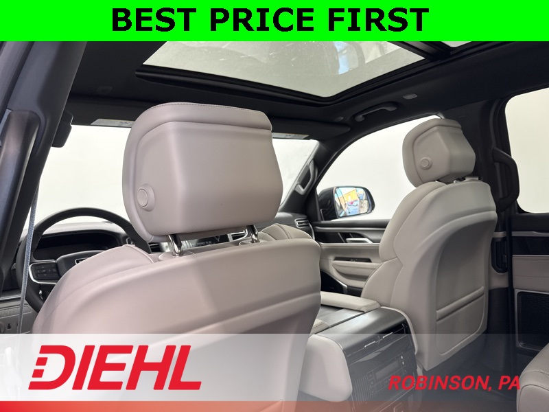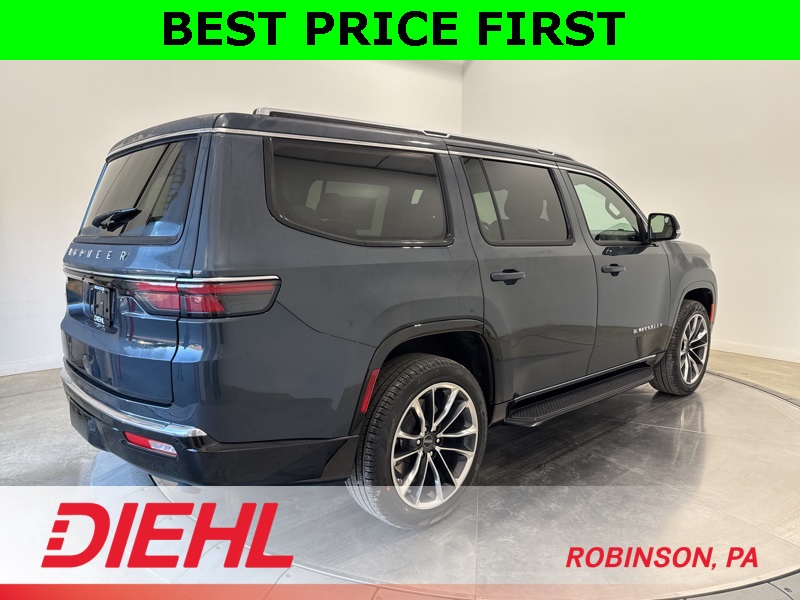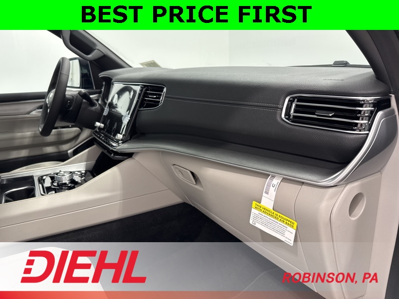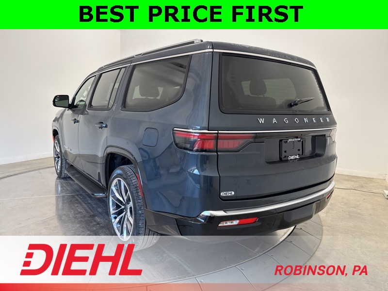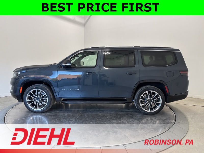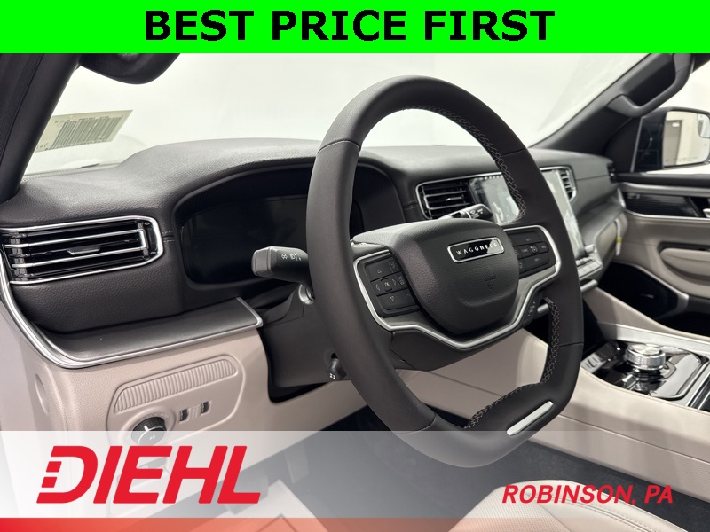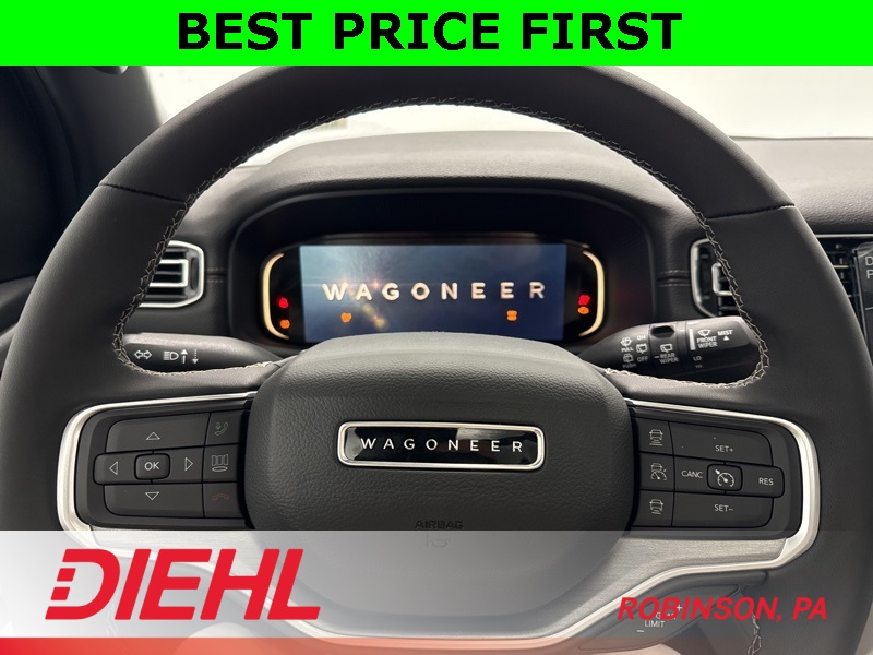2025 Jeep Wagoneer Series II 4x4 – 3-Row Luxury SUV with Panoramic Roof & 10.25" Uconnect2025 Jeep Wagoneer 4x4 with 3 rows, panoramic roof, Uconnect 10.25” screen, Alpine audio & HEMI turbo power. Comfort meets capability.The 2025 Jeep Wagoneer Series II 4x4 isn’t just an SUV—it’s a rolling luxury lodge with legendary Jeep capability built in. With its sleek Velvet Red exterior, 20-inch aluminum wheels, and bold stance, this full-size SUV announces its presence before you even open the door. Under the hood, the Hurricane Twin Turbo with Stop/Start delivers smooth yet commanding power, paired to an 8-speed automatic transmission that keeps highway cruising effortless and trail adventures confident.Inside, every drive feels first class. A massive 10.25-inch Uconnect display anchors the dash with Apple CarPlay, Android Auto, GPS navigation, and Wi-Fi hotspot capability. The Alpine Premium Audio system with subwoofer ensures that whether you’re jamming on the way to the stadium or streaming podcasts on a family road trip, it sounds crystal clear. Three rows of seating with tri-zone climate control, heated and ventilated front seats, and a power-adjustable driver’s seat mean comfort isn’t reserved for just the captain’s chair.The optional Premium Group package adds a panoramic sunroof, power deployable running boards, and adjustable roof rails, while safety tech like Adaptive Cruise with Stop & Go, Lane Management, Blind Spot Monitoring, and ParkSense with surround camera give peace of mind from driveway to destination.Whether you’re hauling kids, towing gear, or cruising downtown, this Wagoneer delivers the perfect mix of luxury and utility. Don’t let this 3-row beauty slip away—schedule your test drive at Diehl of Robinson today and experience what real premium adventure feels like.