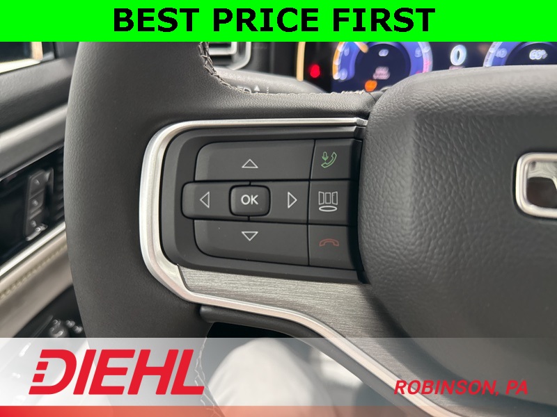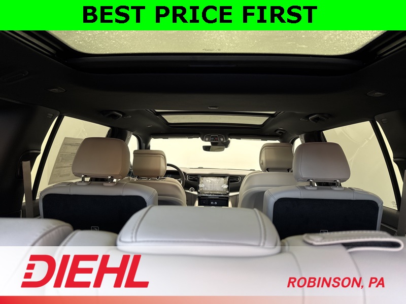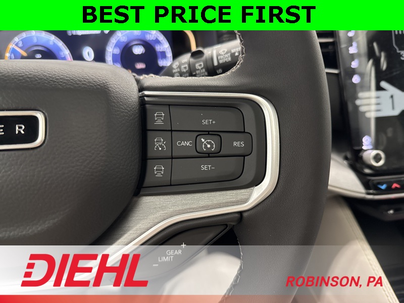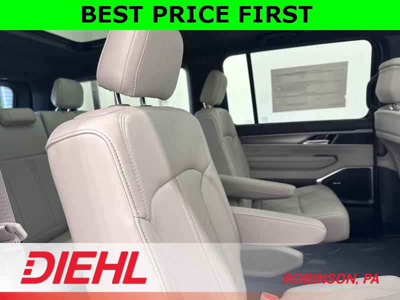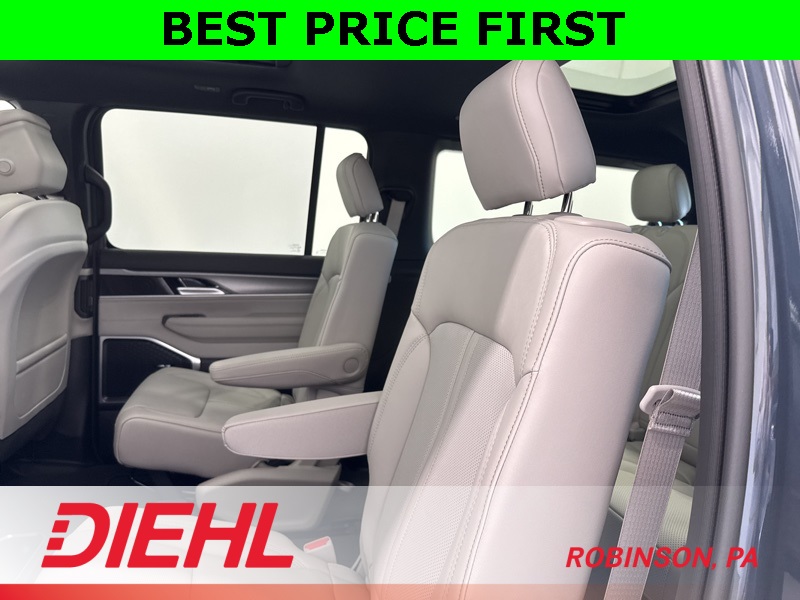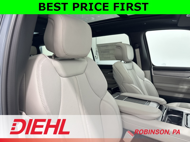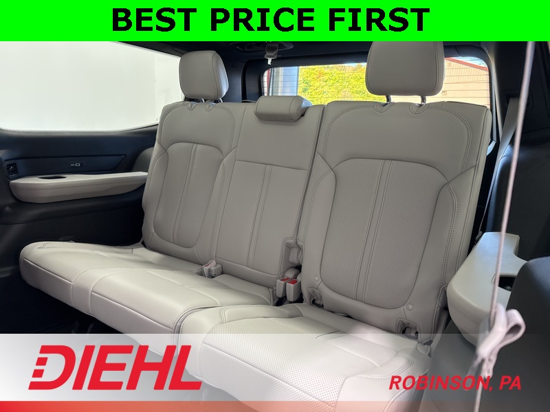 2025 Jeep Wagoneer Series II 4x4 – 3-Row Luxury SUV with Panoramic Roof & 10.25" Uconnect2025 Jeep Wagoneer 4x4 with 3 rows, panoramic roof, Uconnect 10.25” screen, Alpine audio & HEMI turbo power. Comfort meets capability.The 2025 Jeep Wagoneer Series II 4x4 isn’t just an SUV—it’s a rolling luxury lodge with legendary Jeep capability built in. With its sleek Velvet Red exterior, 20-inch aluminum wheels, and bold stance, this full-size SUV announces its presence before you even open the door. Under the hood, the Hurricane Twin Turbo with Stop/Start delivers smooth yet commanding power, paired to an 8-speed automatic transmission that keeps highway cruising effortless and trail adventures confident.Inside, every drive feels first class. A massive 10.25-inch Uconnect display anchors the dash with Apple CarPlay, Android Auto, GPS navigation, and Wi-Fi hotspot capability. The Alpine Premium Audio system with subwoofer ensures that whether you’re jamming on the way to the stadium or streaming podcasts on a family road trip, it sounds crystal clear. Three rows of seating with tri-zone climate control, heated and ventilated front seats, and a power-adjustable driver’s seat mean comfort isn’t reserved for just the captain’s chair.The optional Premium Group package adds a panoramic sunroof, power deployable running boards, and adjustable roof rails, while safety tech like Adaptive Cruise with Stop & Go, Lane Management, Blind Spot Monitoring, and ParkSense with surround camera give peace of mind from driveway to destination.Whether you’re hauling kids, towing gear, or cruising downtown, this Wagoneer delivers the perfect mix of luxury and utility. Don’t let this 3-row beauty slip away—schedule your test drive at Diehl of Robinson today and experience what real premium adventure feels like.