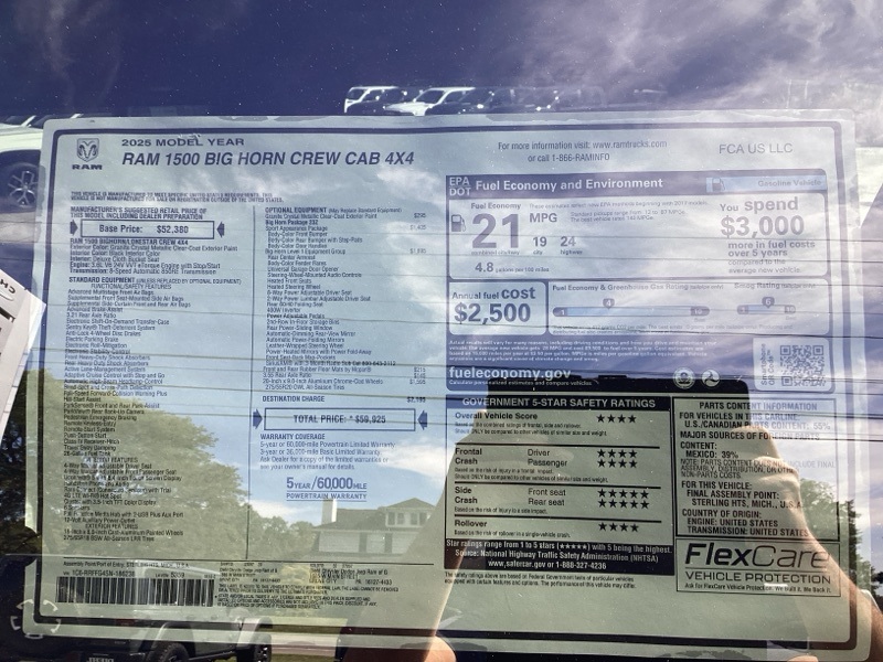 Granite Crystal Metallic Clearcoat 2025 1500 Ram Big Horn/Lone Star 4D Crew Cab 4WD 8-Speed Automatic 3.6L V6 24V VVT Price includes: $2000 - 2025 National SFS Lease Loyalty Bonus Cash. Exp. 11/03/2025 10% Msrp - 2025 National 10% Below MSRP . Exp. 11/03/2025