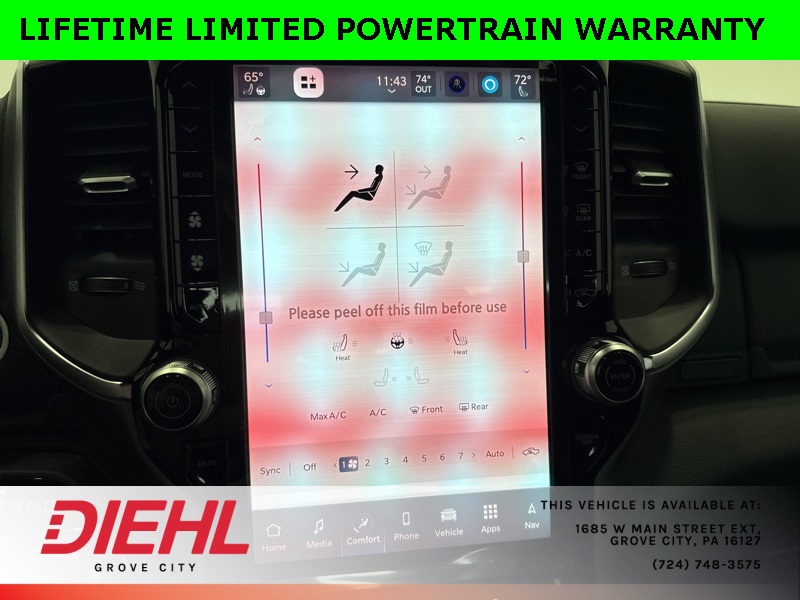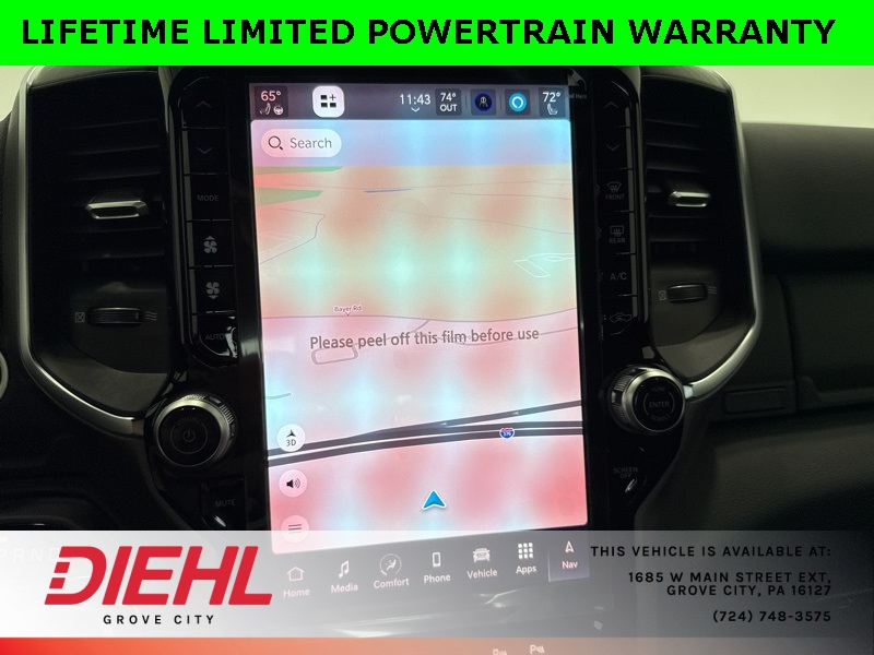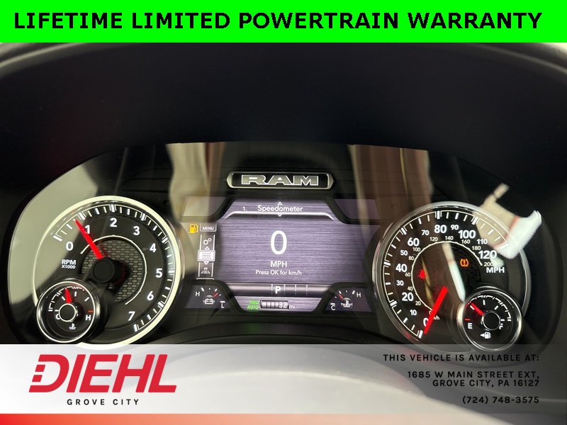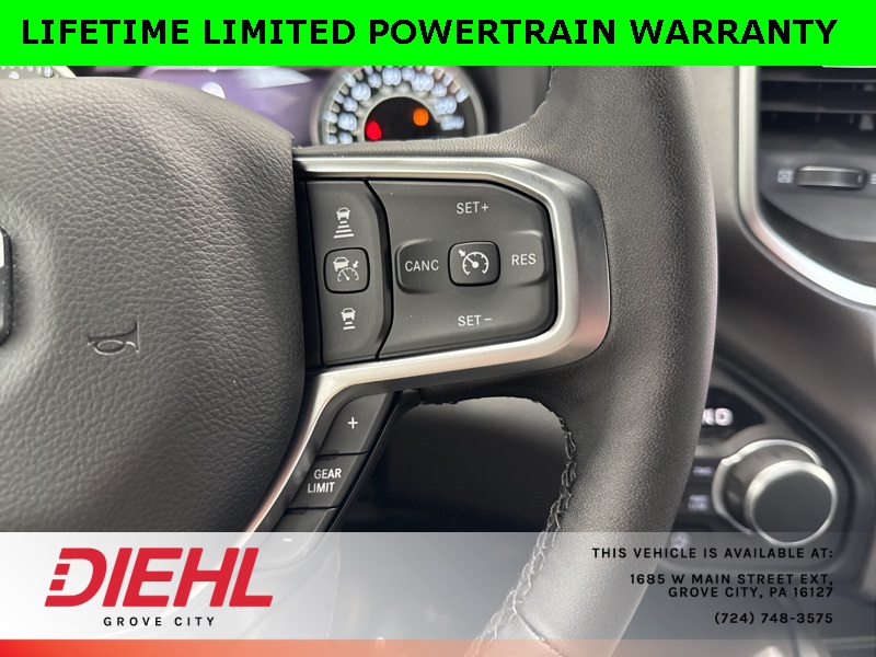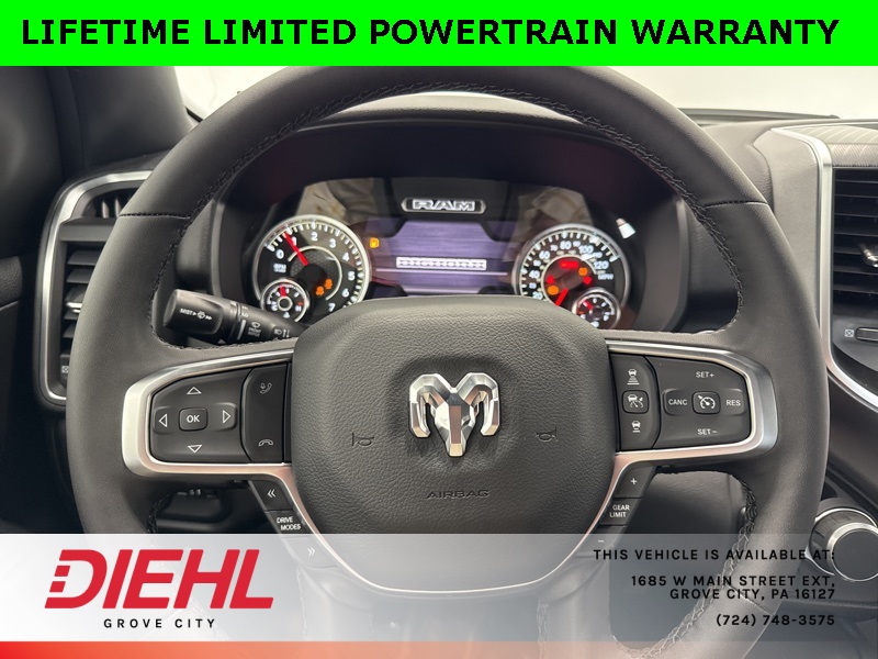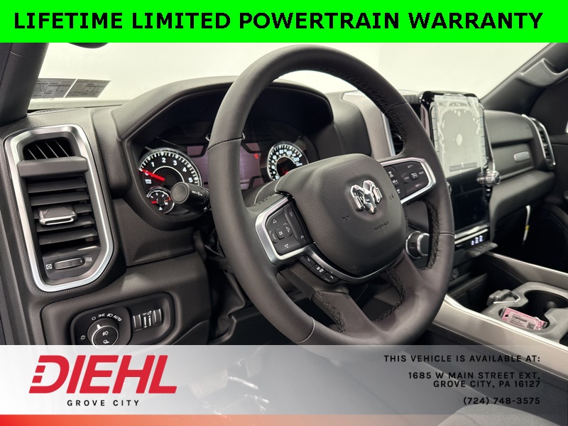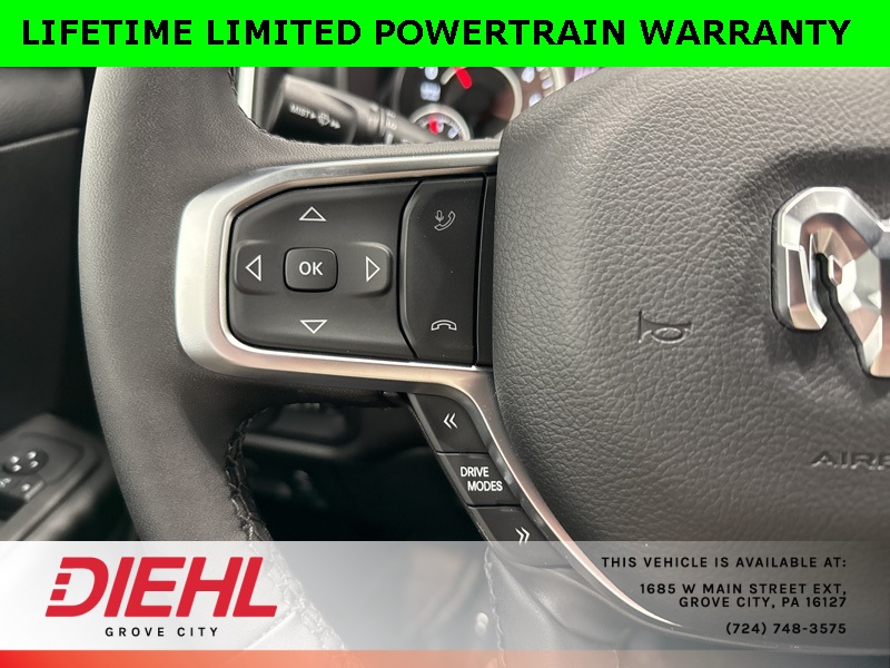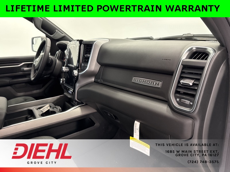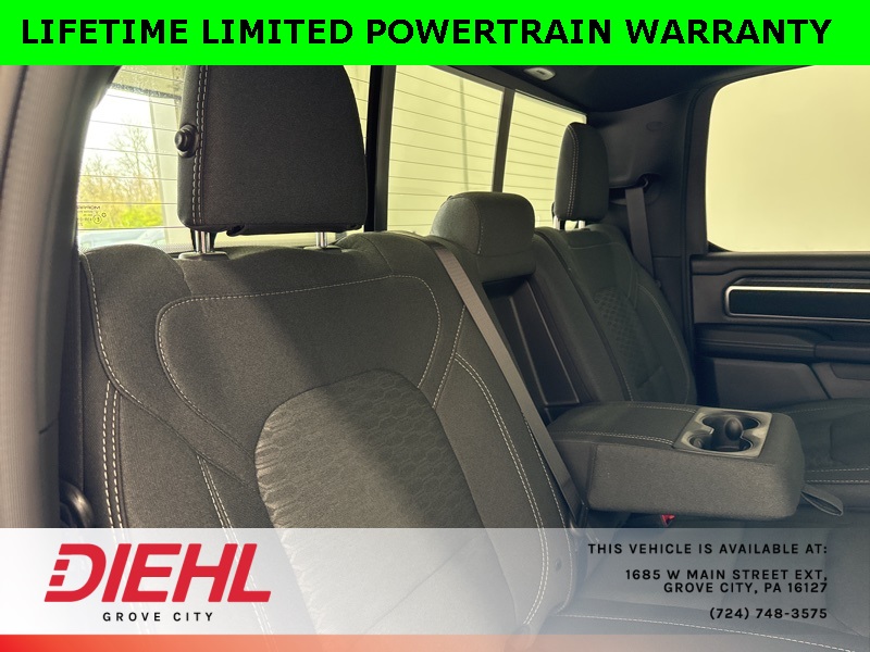 115V Auxiliary Power Outlet, 115V Auxiliary Rear Power Outlet, 12" Touchscreen Display, 2nd Row In Floor Storage Bins, 3 Rear Seat Head Restraints, 3.21 Rear Axle Ratio, 4 Way Front Headrests, 400W Inverter, 4G LTE Wi-Fi Hot Spot, 9 Amplified Speakers w/Subwoofer, Air Conditioning ATC w/Dual Zone Control, Apple CarPlay, Auto Power-Folding Mirrors, Auto-Dimming Exterior Driver Mirror, Auto-Dimming Rear-View Mirror, Bed Utility Group, Big Horn Badge, Big Horn Level 2 Equipment Group, Black Exterior Mirrors, Black Interior Accents, Black Premium Power Mirrors, Body Color Door Handles, Body Color Front Bumper, Body Color Rear Bumper w/Step Pads, Body Color Tailgate Handle, Bucket Seats, Cluster 7.0" TFT Color Display, Configurable Drive Mode, Connected Travel & Traffic Services, Connectivity - US/Canada, Convex Wide-Angle Exterior Mirror Insert, Deluxe Cloth Bucket Seats, Exterior 115V AC Outlet, Exterior Mirrors Courtesy Lamps, Exterior Mirrors w/Heating Element, Exterior Mirrors w/Supplemental Signals, Front Seat Back Map Pockets, Full Length Floor Console, Glove Box Lamp, Google Android Auto, GPS Antenna Input, GPS Navigation, Grille Surround 1 Body Color Texture 1 Black, HD Radio, Heated Front Seats, Heated Steering Wheel, Integrated Voice Command w/Bluetooth, Leather Wrapped Steering Wheel, LED Dome Lamp w/On/Off Switch, LED Footwell Lighting, Manual Adjust 4-Way Front Passenger Seat, Media Hub w/2 Charge Only USBs, MOPAR 4 Adjustable Cargo Tie-Down Hooks, MOPAR Spray In Bedliner, Overhead LED Lamps, ParkView Rear Back-Up Camera, Pick-Up Box Lighting, Power 2-Way Driver Lumbar Adjust, Power Adjust 8-Way Driver Seat, Power Adjustable Pedals, Premium Overhead Console, Quick Order Package 23Z Big Horn, Radio: Uconnect 5 Nav w/12.0" Display, RAM Grille Badge - Chrome, Rear 60/40 Folding Seat, Rear Center Armrest, Rear Power Sliding Window, Rear Window Defroster, Remote Tailgate Release, Security Alarm, SiriusXM w/360L, Sport Appearance Package, Steering Wheel Mounted Audio Controls, Sun Visors w/Illuminated Vanity Mirrors, Universal Garage Door Opener, USB Host Flip. Priced below KBB Fair Purchase Price!