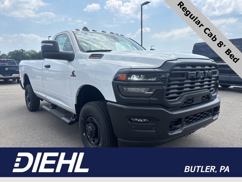 The 2025 Ram 2500 Tradesman Standard Cab 4WD in Bright White Clearcoat is a heavy-duty powerhouse built to take on the toughest tasks with smart upgrades and rugged durability. Powered by a 6.7L Cummins I6 Turbo Diesel engine paired with an 8-speed automatic transmission, it delivers serious torque and towing muscle, especially when combined with the 5th Wheel/Gooseneck Towing Prep Group and Anti-Spin Differential Rear Axle.This work-ready truck is loaded with utility features including the Bed Convenience Group, which adds LED bed lighting and a MOPAR spray-in bedliner, plus the Cold Weather Group for cold climates, offering an engine block heater and winter front grille cover. Its also equipped with the Commercial Features Package, bringing a 400W inverter, 115V outlets, and ParkSense Front/Rear Park Assist System, ideal for job site functionality and safety.Inside, the Tradesman Level 1 Equipment Group provides a major tech boost with a 12-inch Uconnect 5 NAV touchscreen, Apple CarPlay/Android Auto, Alexa Built-In, HD Radio, Wi-Fi hotspot, and advanced navigation. Convenience is enhanced with features like remote keyless entry, rear sliding window, power-adjustable towing mirrors, and off-road and trailer tow info pages. Comfort is supported by dual-zone climate control, cloth or vinyl split-bench seating, and upgraded door panels with storage.With its black tubular side steps, clearance lamps, auxiliary switches, and manual folding/telescoping tow mirrors, this Ram 2500 is fully geared for professional-grade use while maintaining a refined, functional interior. Whether hauling, towing, or navigating job sites, this truck is a durable, tech-savvy, and highly capable option for serious work. Price includes: $2000 - 2025 National Bonus Cash . Exp. 11/03/2025 $500 - Exp. 12/31/2025