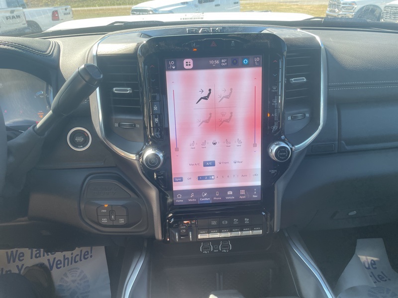 Cold Weather Group (Engine Block Heater and MOPAR Winter Front Grille Cover), Laramie Level 1 Plus Equipment Group (#1 Seat Foam Cushion, 115V Auxiliary Rear Power Outlet, 2 Way Rear Headrest Seat, 2nd Row In Floor Storage Bins, 4 Way Front Headrests, Active Lane Management System, Adaptive Steering System, Anti-Spin Differential Rear Axle, Auto Adjust In Reverse Exterior Mirrors, Auto Dim Exterior Mirror, Auto High Beam Headlamp Control, Auto Power-Folding Mirrors, Auto-Dimming Exterior Passenger Mirror, Bucket Seats, Chrome Exterior Mirrors, CTR Stop Lamp w/Cargo View Camera, Drowsy Driver Detection, Dual Wireless Charging Pad, Exterior Mirrors Courtesy Lamps, Exterior Mirrors w/Heating Element, Exterior Mirrors w/Memory, Exterior Mirrors w/Supplemental Signals, Foam Bottle Insert (Door Trim Panel), Folding Flat Load Floor Storage, Forward & Reverse Utility Lights, Front Seat Back Map Pockets, Full Length Upgraded Floor Console, Heated Front Seats, Heated Steering Wheel, High Back Seats, Leather Trimmed Bucket Seats, LED Bed Lighting, Mirror Running Lights, MOPAR Deployable Bed Step, MOPAR Spray In Bedliner, Power 2-Way Driver Lumbar Adjust, Power 2-Way Passenger Lumbar Adjust, Power Adjust 8-Way Driver Seat, Power Adjust 8-Way Front Passenger Seat, Power Adjust Mirrors, Power Adjustable Convex Aux Mirrors, Power Adjustable Pedals w/Memory, Power Heated Fold Telescopic Mirrors w/Memory, Power Telescoping Mirrors, Rain Sensitive Windshield Wipers, Rear 60/40 Folding Seat, Remote Tailgate Release, and Traffic Sign Recognition), Night Edition (Black Exterior Mirrors, Black Exterior Truck Badging, Black Wheel Center Hub, Body Color Grille Surround, Gloss Black Grille Billets/Accents, Sport Performance Hood, and Wheels: 20" x 8.0" Black Painted Aluminum), Quick Order Package 24H Laramie, 10 Speakers, 4-Wheel Disc Brakes, 4G LTE Wi-Fi Hot Spot, 5th Wheel/Gooseneck Towing Prep Group, ABS brakes, Air Conditioning, Alexa Built-In, Alloy wheels, AM/FM radio: SiriusXM with 360L, Apple CarPlay, Apple CarPlay/Android Auto, Auto-dimming Rear-View mirror, Automatic temperature control, Brake assist, Bumpers: body-color, Clearance Lamps, Compass, Connected Travel & Traffic Services, Connectivity - US/Canada, Dash Pass Thru Wire Circuits, Delay-off headlights, Disassociated Touchscreen Display, Driver door bin, Driver vanity mirror, Dual Alternators Rated at 480 Amps, Dual front impact airbags, Dual front side impact airbags, Electronic Stability Control, Emergency Vehicle Alert System (EVAS), Front anti-roll bar, Front Center Armrest w/Storage, Front dual zone A/C, Front fog lights, Front reading lights, Fully automatic headlights, Garage door transmitter, Global Telematics Box Module (TBM), Google Android Auto, GPS Antenna Input, HD Radio, Heated door mirrors, Heated front seats, Heated steering wheel, I/P Mounted Auxiliary Switches, Illuminated entry, Integrated Voice Command w/Bluetooth, Leather Trim 40/20/40 Bench Seat, Low tire pressure warning, Navigation System, Occupant sensing airbag, Outside temperature display, Overhead airbag, Overhead console, Panic alarm, ParkView Rear Back-Up Camera, Passenger door bin, Passenger vanity mirror, Power door mirrors, Power driver seat, Power passenger seat, Power steering, Power Sunroof, Power windows, Radio data system, Radio: Uconnect 5 Nav w/12.0" Display, Rear anti-roll bar, Rear reading lights, Rear seat center armrest, Rear step bumper, Rear window defroster, Remote keyless entry, Security system, Selectable Tire Fill Alert, SiriusXM Radio Service, Speed control, Split folding rear seat, Steering wheel mounted audio controls, Tachometer, Tilt steering wheel, Traction control, Trip computer, Turn signal indicator mirrors, Variably intermittent wipers, Volt Price includes: $2000 - 2025 National Bonus Cash . Exp. 11/03/2025 $2000 - 2025 National Overaged Select Inventory Bonus Cash. Exp. 11/03/2025 $2500 - 2025 Northeast BC Select Inventory Bonus Cash. Exp. 11/03/2025 $500 - Exp. 12/31/2025
