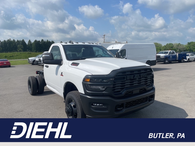 Cold Weather Group (Engine Block Heater and MOPAR Winter Front Grille Cover), Quick Order Package 25A Tradesman, Tradesman Level 1 Equipment Group (Black Exterior Mirrors, Black Power Heated Fold Telescope Mirrors, Exterior Mirrors Courtesy Lamps, Exterior Mirrors w/Heating Element, Exterior Mirrors w/Supplemental Signals, Front 1-Touch Down Power Windows, Manual Folding Exterior Mirrors, Manual Telescoping Mirrors, Mirror Running Lights, Power Adjust Mirrors, Power-Adjustable Convex Aux Mirrors, Rear Window Defroster, Remote Keyless Entry, Speed Sensitive Power Locks, Trailer Brake Control, Trailer Light Check, and Upgraded Door Trim Panel), 11.50" Dual Wheels Rear Axle, 4 Speakers, 4-Wheel Disc Brakes, 40/20/40 Split Bench Seat, 4G LTE Wi-Fi Hot Spot, 6000# Front Axle w/Hub Ext, ABS brakes, Air Conditioning, AM/FM radio: SiriusXM, Apple CarPlay, Apple CarPlay/Android Auto, Black Wheel Center Hub, Cargo & CHMSL Lamp, Center Hub, Compass, Connectivity - US/Canada, Delay-off headlights, Driver door bin, Dual front impact airbags, Dual Rear Wheels, Electronic Stability Control, Emergency communication system: RAM Connect, For Details, Visit DriveUconnect.com, Front anti-roll bar, Front Armrest w/Cupholders, Front Center Armrest w/Storage, Front fog lights, Front License Plate Bracket, Front reading lights, Fully automatic headlights, Global Telematics Box Module (TBM), Google Android Auto, GPS Antenna Input, HD Vinyl 40/20/40 Split Bench Seat, Integrated Voice Command w/Bluetooth, Manual Adjust 4-Way Driver Seat, Manual Adjust 4-Way Front Passenger Seat, Occupant sensing airbag, Outside temperature display, Overhead console, ParkView Rear Back-Up Camera, Passenger door bin, Passenger vanity mirror, Power steering, Radio data system, Radio: Uconnect 5 w/8.4" Display, Rear anti-roll bar, Remote USB Port - Charge Only, Speed control, Storage Tray, Tachometer, Temperature & Compass Gauge, Tilt steering wheel, Traction control, Variably intermittent wipers, Voltmeter, Wheels: 17" x 6.0" Black Painted Steel, and Wheels: 18" x 8.0" Steel PainteD. Bright White Clearcoat 2025 Ram 3500 Tradesman 4WD 8-Speed Automatic Cummins 6.7L I6 TurbodieselType your sentence here. Price includes: $1000 - 2025 National Bonus Cash . Exp. 11/03/2025 $2000 - 2025 National Overaged Select Inventory Bonus Cash. Exp. 11/03/2025 $1,000 - Exp. 12/31/2025