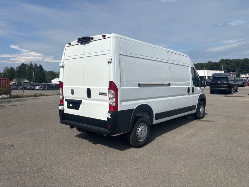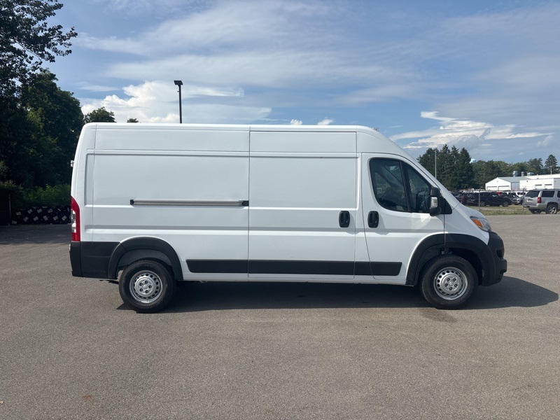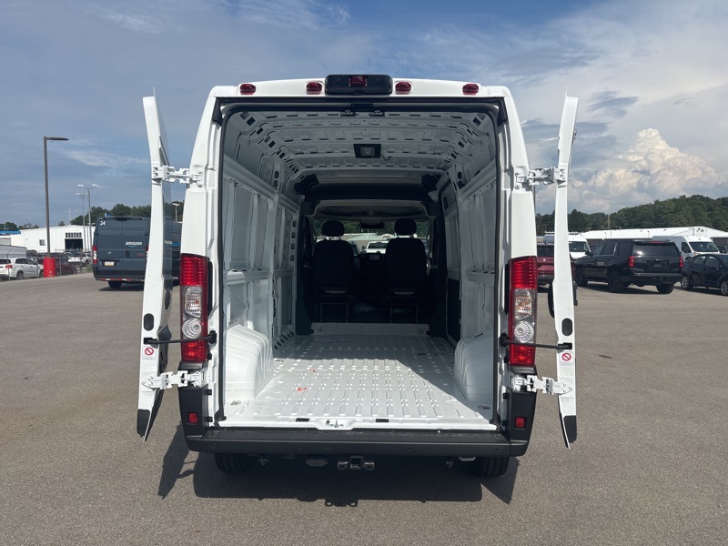 Convenience Group (Exterior Mirrors w/Heating Element, Exterior Mirrors w/Supplemental Signals, Front Fog Lamps, Power Adjust Mirrors, Power Folding/Heated Mirrors, Power-Adjustable Convex Aux Mirrors, Power-Folding Mirrors, and Rear Cargo LED Lamp), Power Group (100 Amp Battery, 115V Auxiliary Power Outlet, and 12V Rear Auxiliary Power Outlet), Quick Order Package 22B Tradesman w/Pass Seat (4-Way Manual Adjust Front Passenger Seat and Passenger Bucket Seat), Storage Group (Cargo Net, Shelf Above Roof Trim, and Underseat Storage Tray), 4 Speakers, 4-Wheel Disc Brakes, 4.08 Axle Ratio, 4G LTE Wi-Fi Hotspot, ABS brakes, Adaptive Cruise Control w/Stop & Go, Air Conditioning, AM/FM radio: SiriusXM, Apple CarPlay, Apple CarPlay/Android Auto, Black/Gray Seats, Bodyside moldings, Brake assist, Class IV Receiver Hitch, Cloth Bucket Seats, Connectivity - US/Canada, Driver door bin, Driver Seat Armrest, Driver's Seat Mounted Armrest, Electronic Stability Control, For Details, Visit DriveUconnect.com, For More Info, Call 800-643-2112, Front anti-roll bar, Front Bucket Seats, Front License Plate Bracket, Front reading lights, Front wheel independent suspension, Global Telematics Box Module (TBM), Google Android Auto, GPS Antenna Input, Heavy Duty Suspension, Illuminated entry, Low tire pressure warning, Outside temperature display, Overhead airbag, Overhead console, ParkSense Rear Park Assist System, ParkView Rear Back-Up Camera, Passenger door bin, Power steering, Power windows, Radio: Uconnect 5 w/7" Display, Remote keyless entry, SiriusXM Radio Service, Steering wheel mounted audio controls, Tachometer, Telescoping steering wheel, Traction control, Trip computer, Turn signal indicator mirrors, Variably intermittent wipers, Wheel Center Cap, and Wheels: 16" x 6.0" SteeL. Bright White Clearcoat 2025 Ram ProMaster 2500 High Roof FWD 9-Speed 948TE Automatic 3.6L V6 24V VVT