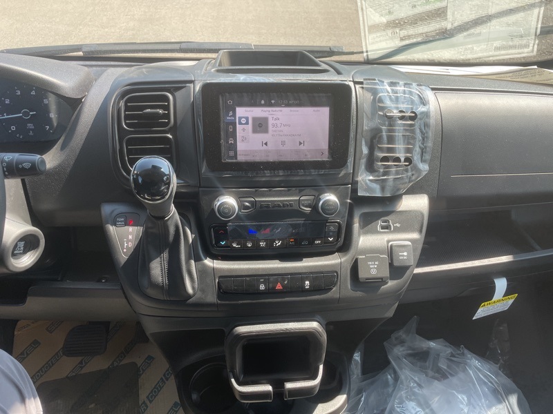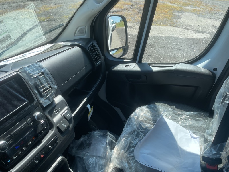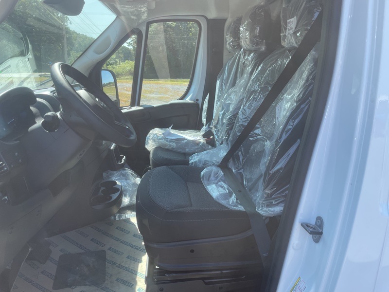 Convenience Group (Exterior Mirrors w/Heating Element, Exterior Mirrors w/Supplemental Signals, Front Fog Lamps, Power Adjust Mirrors, Power Folding/Heated Mirrors, Power-Adjustable Convex Aux Mirrors, Power-Folding Mirrors, and Rear Cargo LED Lamp), Power Group (100 Amp Battery, 115V Auxiliary Power Outlet, and 12V Rear Auxiliary Power Outlet), Quick Order Package 22B Tradesman w/Pass Seat (4-Way Manual Adjust Front Passenger Seat and Passenger Bucket Seat), Storage Group (Cargo Net, Shelf Above Roof Trim, and Underseat Storage Tray), 4 Speakers, 4-Wheel Disc Brakes, 4.08 Axle Ratio, 4G LTE Wi-Fi Hotspot, ABS brakes, Adaptive Cruise Control w/Stop & Go, Air Conditioning, AM/FM radio: SiriusXM, Apple CarPlay, Apple CarPlay/Android Auto, Black/Gray Seats, Bodyside moldings, Brake assist, Cargo Partition w/Sliding Window, Class IV Receiver Hitch, Cloth Bucket Seats, Connectivity - US/Canada, Driver door bin, Driver Seat Armrest, Driver's Seat Mounted Armrest, Electronic Stability Control, For Details, Visit DriveUconnect.com, For More Info, Call 800-643-2112, Front anti-roll bar, Front Bucket Seats, Front License Plate Bracket, Front reading lights, Front wheel independent suspension, Global Telematics Box Module (TBM), Google Android Auto, GPS Antenna Input, Heavy Duty Suspension, Illuminated entry, Low tire pressure warning, Outside temperature display, Overhead airbag, Overhead console, ParkSense Rear Park Assist System, ParkView Rear Back-Up Camera, Passenger door bin, Passenger Double Seat, Power steering, Power windows, Radio: Uconnect 5 w/7" Display, Remote keyless entry, SiriusXM Radio Service, Steering wheel mounted audio controls, Tachometer, Telescoping steering wheel, Traction control, Trip computer, Turn signal indicator mirrors, Variably intermittent wipers, Wheel Center Cap, and Wheels: 16" x 6.0" SteeL. Bright White Clearcoat 2025 Ram ProMaster 2500 High Roof FWD 9-Speed 948TE Automatic 3.6L V6 24V VVT
