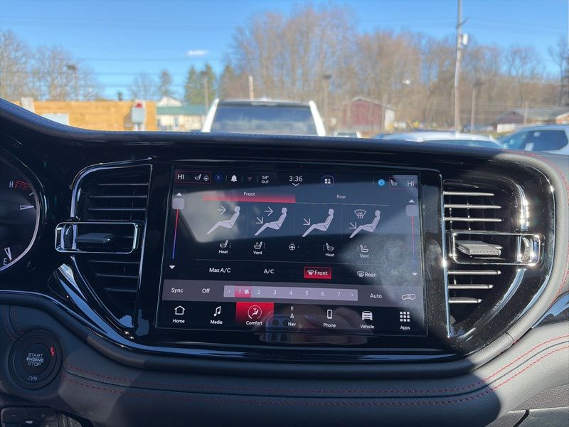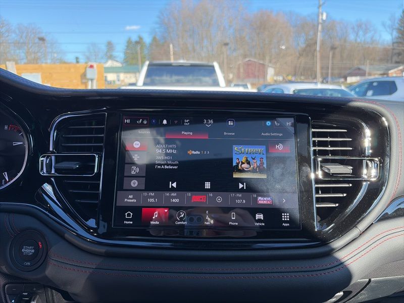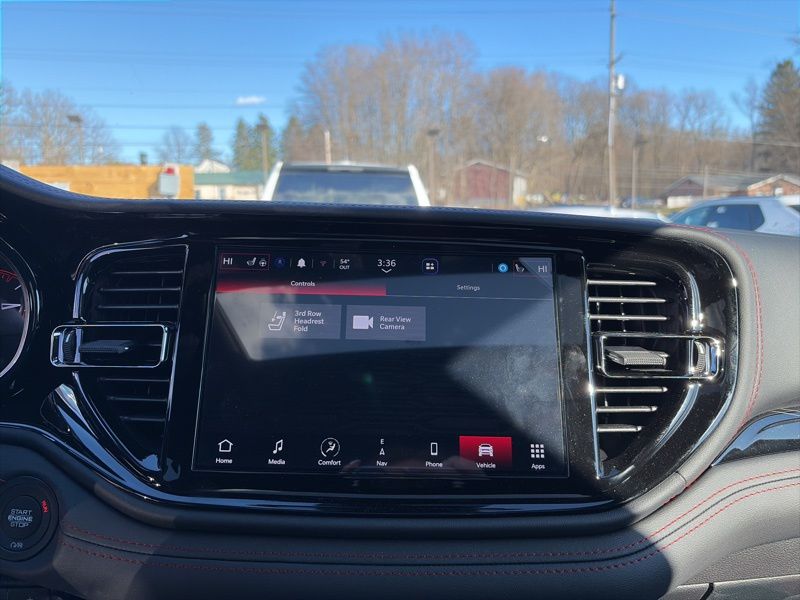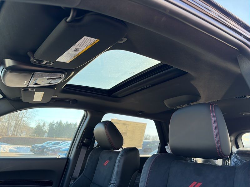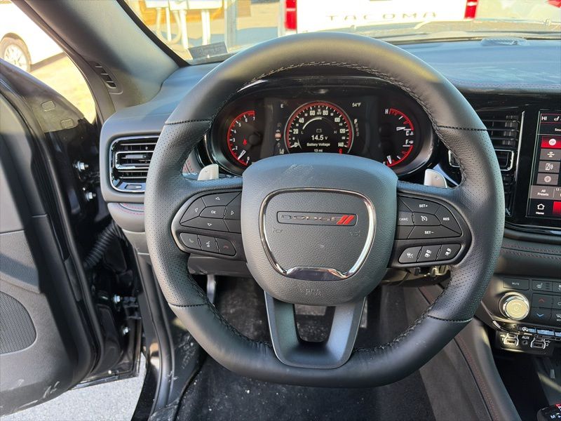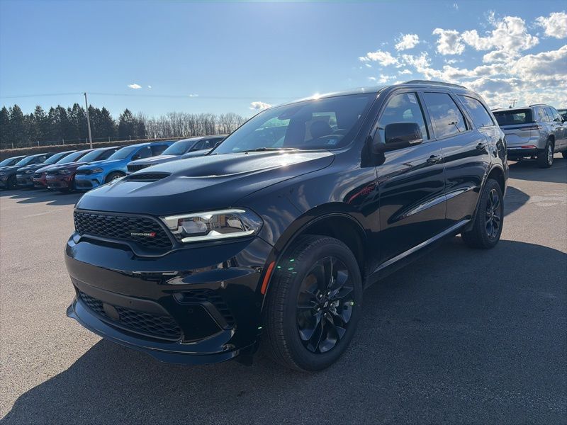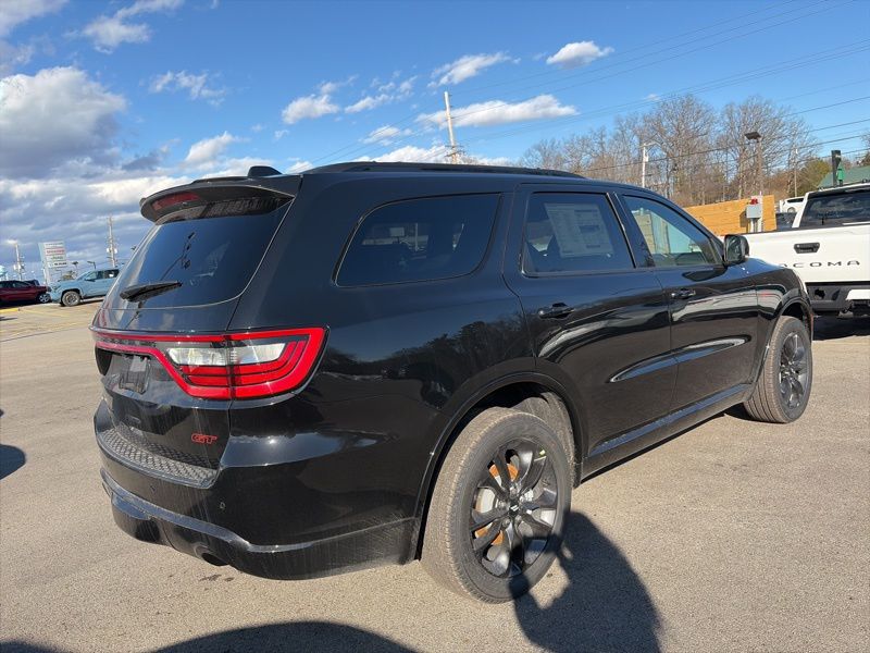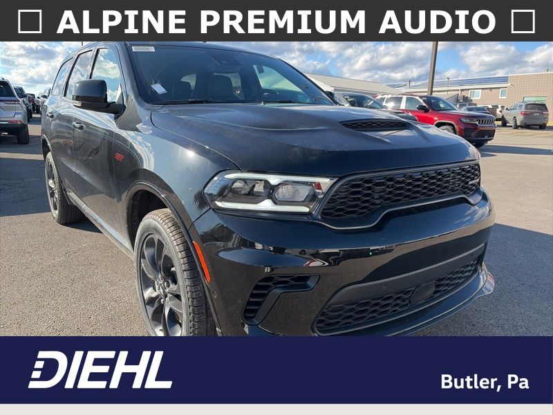 Blacktop Redline Package (2nd Row Fold/Tumble Captain Chairs, 2nd Row Mini Console with Cupholders, 2nd Row Seat Mounted Inboard Armrests, 3rd Row Floor Mat and Mini Console, 6-Passenger Seating, Black Roof Rails, Blacktop Leather SRT Performance Seats, Crypto Sweep Etch Accents, Floor Console with Leather Armrest, Gloss Black Badges, Gloss Black Exterior Mirrors, GT Decal with Red Tracer, Heated Second Row Seats, Integrated Roof Rail Crossbars, Performance Hood, Performance Lower Splitter, Power 8-Way Driver Memory 8-Way Passenger Seats, Power Driver/Passenger 4-Way Lumbar Adjust, Premium Door Trim Panel, Premium Instrument Panel, Satin Black Dodge Tail Lamp Badge, SRT Rear Spoiler, Ventilated Front Seats, and Wheels: 20" x 8" Black Noise Aluminum), Quick Order Package 2BH GT Plus (115V Auxiliary Power Outlet, 180 Amp Alternator, 506 Watt Amplifier, 7 and 4 Pin Wiring Harness, 9 Alpine Amplified Speakers with Subwoofer, Adaptive Cruise Control with Stop, Advanced Brake Assist, Auto High Beam Headlamp Control, Auto-Dimming Exterior Driver Mirror, Blind Spot with Trailer Detection, Bright Cargo Area Scuff Pads, Class IV Receiver Hitch, Dual Remote USB Port - Charge Only, Exterior Mirrors with Heating Element, Exterior Mirrors with Memory, Exterior Mirrors with Supplemental Signals, Full Speed Forward Collision Warning Plus, Heavy-Duty Engine Cooling, Lane Departure Warning Plus, Leather Trimmed Bucket Seats, Leather Wrapped Door Panels, LED Auxiliary Low Beam and Turn Signal, ParkSense Front/Rear Park Assist with Stop, Power 6x9 Multi-Function Foldaway Mirrors, Power Sunroof, Power Tilt and Telescopic Steering Column, Rear Load Leveling Suspension, Red Accent Stitching, Security Alarm, Sun Visors with Illuminated Vanity Mirrors, Trailer Brake Control, and Wireless Charging Pad), AWD, 3.45 Rear Axle Ratio, 3rd row seats: split-bench, 4-Wheel Disc Brakes, 6 Speakers, ABS brakes, Air Conditioning, Alloy wheels, AM/FM radio: SiriusXM w/360L, Apple CarPlay/Android Auto, Auto-dimming Rear-View mirror, Automatic temperature control, Brake assist, Bumpers: body-color, Cloth Bucket Seats with Shift Insert, Compass, Delay-off headlights, Driver door bin, Driver vanity mirror, Dual front impact airbags, Dual front side impact airbags, Electronic Stability Control, Emergency communication system: Dodge Connect, Four wheel independent suspension, Front anti-roll bar, Front Bucket Seats, Front Center Armrest w/Storage, Front dual zone A/C, Front reading lights, Fully automatic headlights, Garage door transmitter, Heated door mirrors, Heated front seats, Heated steering wheel, Illuminated entry, Knee airbag, Leather steering wheel, Low tire pressure warning, Navigation System, Occupant sensing airbag, Outside temperature display, Overhead airbag, Overhead console, Panic alarm, ParkView Rear Back-Up Camera, Passenger door bin, Passenger vanity mirror, Power door mirrors, Power driver seat, Power Liftgate, Power steering, Power windows, Radio data system, Radio: Uconnect 5 Nav with 10.1" Display, Rear air conditioning, Rear anti-roll bar, Rear reading lights, Rear seat center armrest, Rear window defroster, Rear window wiper, Remote keyless entry, Speed control, Speed-sensing steering, Speed-Sensitive Wipers, Split folding rear seat, Spoiler, Sport steering wheel, Steering wheel mounted audio controls, Tachometer, Telescoping steering wheel, Tilt steering wheel, Traction control, Trip computer, Variably intermittent wipers, Voltmeter, and Wheels: 20" x 8" Fine Silver. AWD. DB Black Crystal Clearcoat 2026 Dodge Durango GT Plus AWD 8-Speed Automatic 3.6L V6 24V VVT