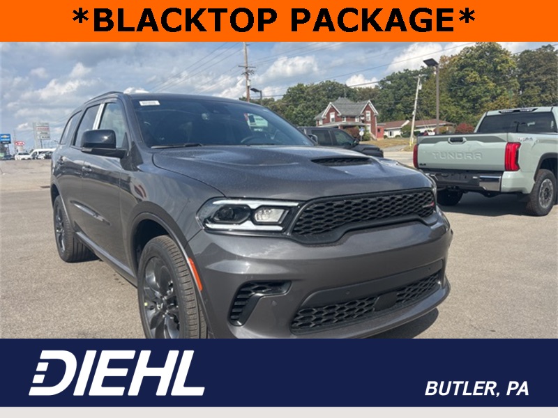 Blacktop Package (Black Roof Rails, Gloss Black Badges, Gloss Black Exterior Mirrors, GT Gloss Black Badging, Integrated Roof Rail Crossbars, Satin Black Dodge Tail Lamp Badge, and Wheels: 20" x 8" Black Noise Aluminum), Quick Order Package 2BH GT Plus (115V Auxiliary Power Outlet, 180 Amp Alternator, 506 Watt Amplifier, 7 & 4 Pin Wiring Harness, 9 Alpine Amplified Speakers w/Subwoofer, Adaptive Cruise Control w/Stop, Advanced Brake Assist, Auto High Beam Headlamp Control, Auto-Dimming Exterior Driver Mirror, Blind Spot w/Trailer Detection, Bright Cargo Area Scuff Pads, Class IV Receiver Hitch, Dual Remote USB Port - Charge Only, Exterior Mirrors w/Heating Element, Exterior Mirrors w/Memory, Exterior Mirrors w/Supplemental Signals, Full Speed Forward Collision Warning Plus, Heated Second Row Seats, Heavy-Duty Engine Cooling, Lane Departure Warning Plus, Leather Trimmed Bucket Seats, Leather Wrapped Door Panels, LED Auxiliary Low Beam & Turn Signal, ParkSense Front/Rear Park Assist w/Stop, Power 6x9 Multi-Function Foldaway Mirrors, Power 8-Way Driver Memory 8-Way Passenger Seats, Power Driver/Passenger 4-Way Lumbar Adjust, Power Sunroof, Power Tilt & Telescopic Steering Column, Rear Load Leveling Suspension, Red Accent Stitching, Security Alarm, Sun Visors w/Illuminated Vanity Mirrors, Trailer Brake Control, Ventilated Front Seats, and Wireless Charging Pad), AWD, 3.45 Rear Axle Ratio, 3rd row seats: split-bench, 4-Wheel Disc Brakes, 6 Speakers, ABS brakes, Air Conditioning, Alloy wheels, AM/FM radio: SiriusXM w/360L, Apple CarPlay/Android Auto, Auto-dimming Rear-View mirror, Automatic temperature control, Brake assist, Bumpers: body-color, Cloth Bucket Seats w/Shift Insert, Compass, Delay-off headlights, Driver door bin, Driver vanity mirror, Dual front impact airbags, Dual front side impact airbags, Electronic Stability Control, Emergency communication system: Dodge Connect, Four wheel independent suspension, Front anti-roll bar, Front Bucket Seats, Front Center Armrest w/Storage, Front dual zone A/C, Front reading lights, Fully automatic headlights, Garage door transmitter, Heated door mirrors, Heated front seats, Heated steering wheel, Illuminated entry, Knee airbag, Leather steering wheel, Low tire pressure warning, Navigation System, Occupant sensing airbag, Outside temperature display, Overhead airbag, Overhead console, Panic alarm, ParkView Rear Back-Up Camera, Passenger door bin, Passenger vanity mirror, Power door mirrors, Power driver seat, Power Liftgate, Power steering, Power windows, Radio data system, Radio: Uconnect 5 Nav w/10.1" Display, Rear air conditioning, Rear anti-roll bar, Rear reading lights, Rear seat center armrest, Rear window defroster, Rear window wiper, Remote keyless entry, Speed control, Speed-sensing steering, Speed-Sensitive Wipers, Split folding rear seat, Spoiler, Sport steering wheel, Steering wheel mounted audio controls, Tachometer, Telescoping steering wheel, Tilt steering wheel, Traction control, Trip computer, Variably intermittent wipers, Voltmeter, and Wheels: 20" x 8" Fine Silver. AWD. Vapor Gray 2026 Dodge Durango GT Plus AWD 8-Speed Automatic 3.6L V6 24V VVTType your sentence here. Price includes: $1000 - 2026 National Engine Retail Bonus Cash . Exp. 11/03/2025 $1500 - 2026 Northeast BC Conquest Bonus Cash . Exp. 11/03/2025