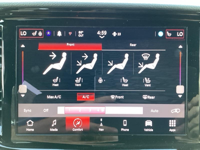 - Driver seat power reclining, lumbar support, cushion tilt, fore/aft control and height adjustable control