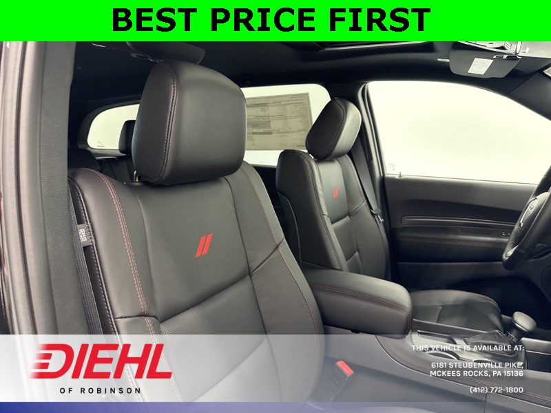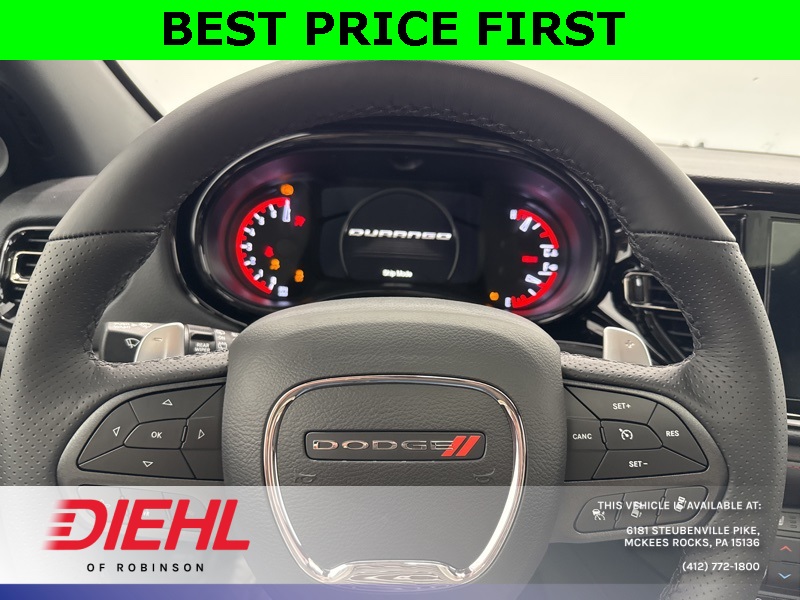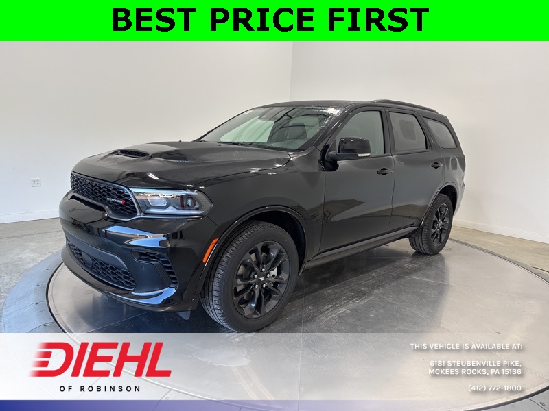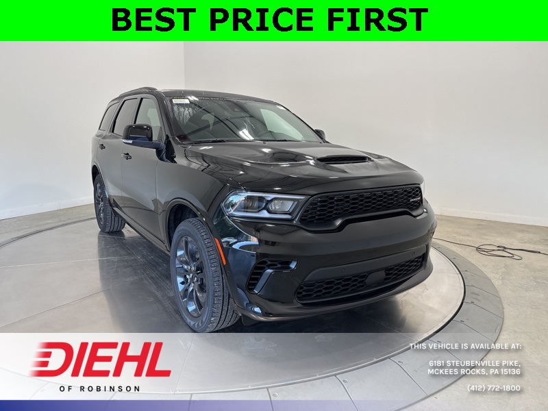 2026 Dodge Durango GT Blacktop AWD – 20” Black Noise Wheels, Heated Leather, 7-Passenger Muscle SUVThis isn’t your neighbor’s family SUV… unless your neighbor moonlights as a street racer. The 2026 Dodge Durango GT Blacktop AWD in Diamond Black is what happens when practicality hits the gym. With seating for seven, a 3.6L Pentastar V6, and full-time AWD, it’s built to haul—whether it’s your crew, your gear, or, frankly, the groceries you swore you’d “just grab a few of.”The Blacktop Package takes the look from mild to menacing with 20-inch Black Noise aluminum wheels, gloss black badging, and black grille accents that could make a minivan question its life choices. Inside, you’re treated to heated leather-trimmed seats, a heated steering wheel, and a Uconnect 5 Nav system with a 10.1-inch touchscreen, Apple CarPlay/Android Auto, and a booming 9-speaker Alpine audio system with subwoofer—perfect for turning your commute into a concert.Safety and convenience? Absolutely. Blind Spot Monitoring, Rear Cross Path Detection, ParkSense with stop, adaptive cruise control, and even ventilated front seats for summer comfort. Power liftgate? Check. Remote start? Obviously. Third-row? Yep, and it folds flat for cargo runs.It’s not just an SUV—it’s the muscle car of the family-hauler world. Come to Diehl of Robinson and see why the 2026 Durango GT Blacktop is the ultimate blend of attitude, capability, and comfort. This one won’t stick around long. Price includes: $1000 - 2026 National Engine Retail Bonus Cash . Exp. 11/03/2025 $2000 - 2026 National Overaged Select Inventory Bonus Cash . Exp. 11/03/2025 $2,000 Select Inventory Bonus Cash - Exp. 10/31/2025