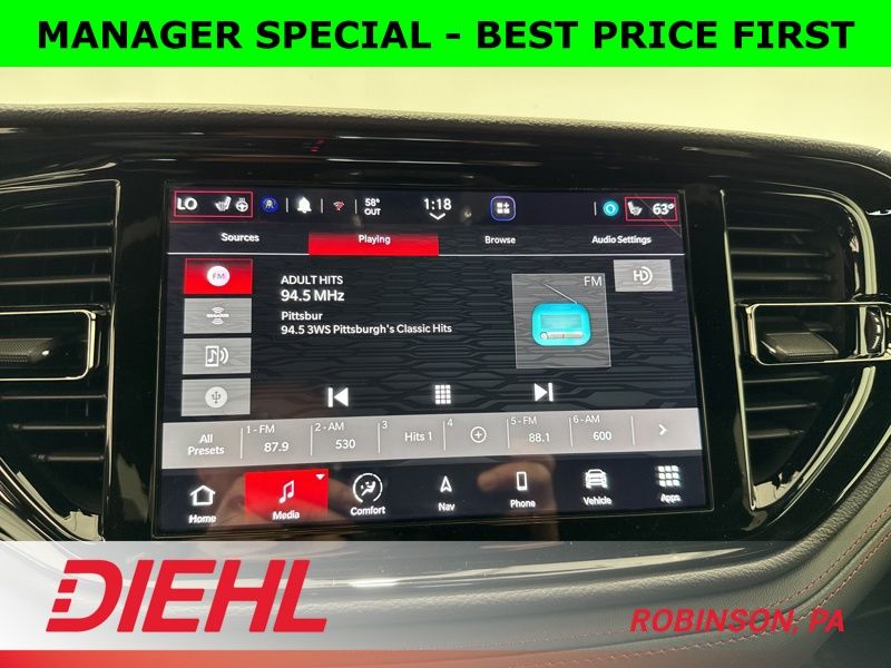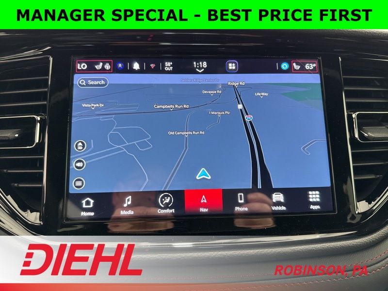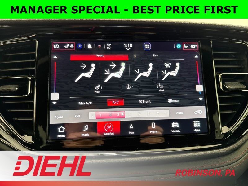 The Octane Red Pearl-Coat paint isn’t just a color—it’s a statement. It sets off the 20-inch Satin Carbon wheels, LED projector headlamps, and performance-inspired design that make this three-row SUV look ready to drag race its own reflection. Inside, you’ll find black leather-trimmed seats, a heated steering wheel, and heated first- and second-row seats that turn cold mornings into a non-issue.