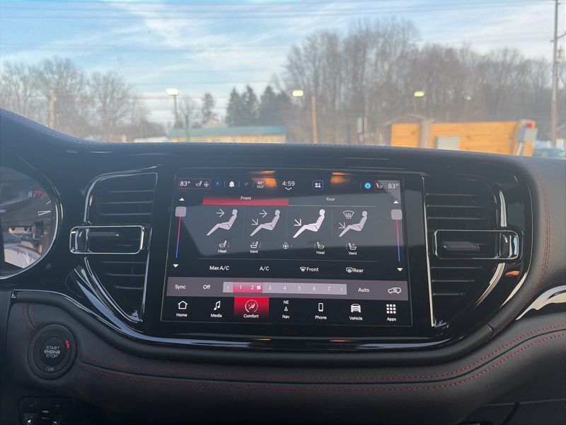 Make a bold first impression in the Octane Red Pearlcoat 2026 Dodge Durango GT Plus AWD, packed with aggressive design, premium comfort, and advanced capability. This Durango is equipped with the Blacktop Redline Package, delivering a performance driven look with a performance hood, performance lower splitter, SRT rear spoiler, gloss black badges, gloss black exterior mirrors, black roof rails, integrated roof rail crossbars, GT decal with red tracer, and striking 20" x 8" Black Noise aluminum wheels. Inside, the package elevates the cabin with Blacktop leather SRT performance seats, ventilated front seats, heated second row seats, red accent stitching, premium door trim panels, premium instrument panel, crypto sweep etch accents, and six passenger seating with second row fold and tumble captain chairs.