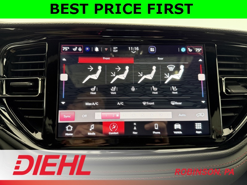 Inside, you’ll find a cabin that’s all comfort and attitude. Premium leather-trimmed bucket seats, tri-zone automatic climate control, a massive 10.1-inch Uconnect touchscreen with navigation, and Apple CarPlay & Android Auto bring luxury and tech together in perfect harmony. The power liftgate, heated front and second-row seats, and remote start are daily luxuries that make every drive feel first class.