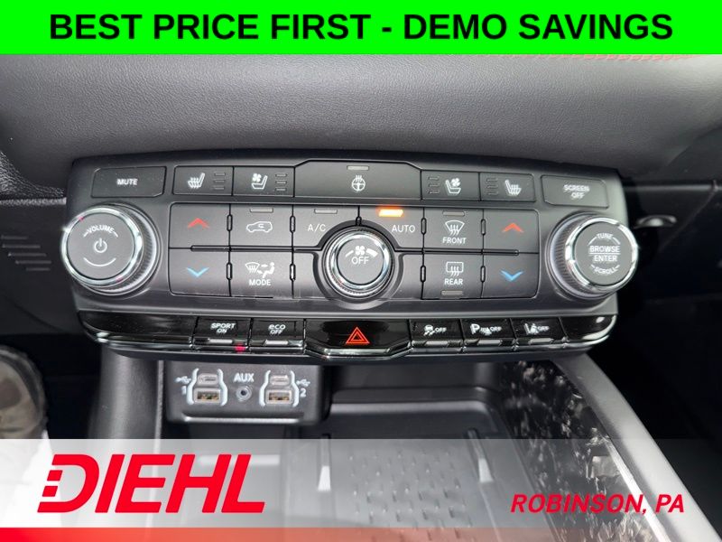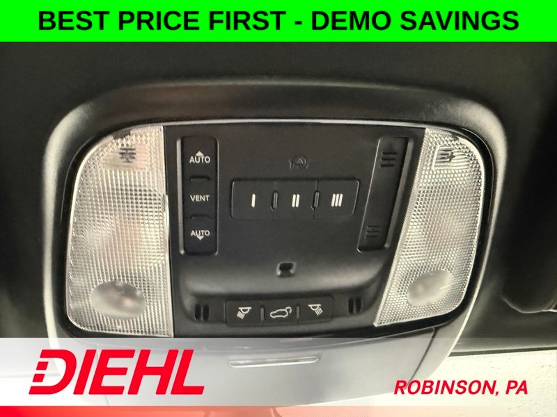 Inside, this 3 row SUV is built for real life. Leather trimmed seating, heated front seats, a heated steering wheel, and power adjustments make every drive comfortable. The Uconnect 5 system with a massive 10.1 inch touchscreen, Apple CarPlay, Android Auto, built in navigation, and available WiFi keeps you connected, entertained, and in control.