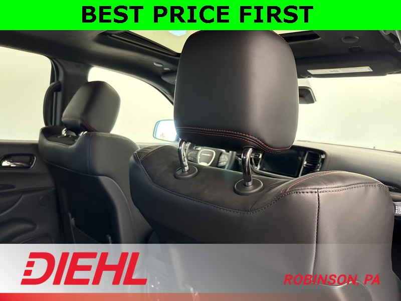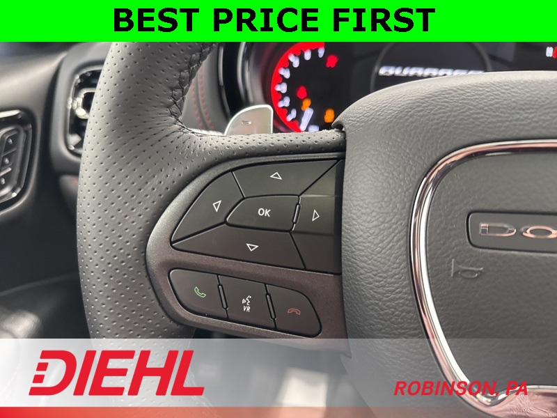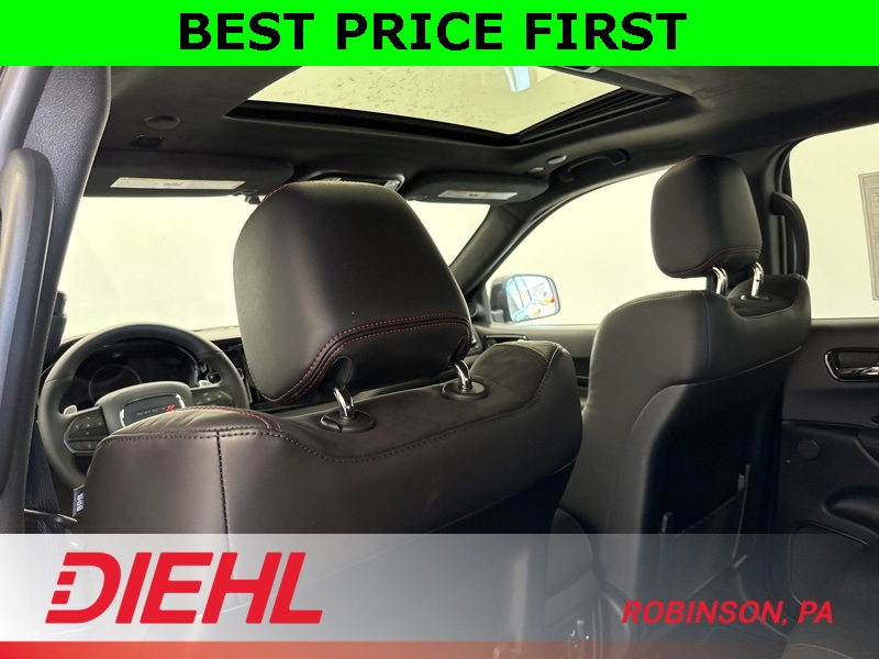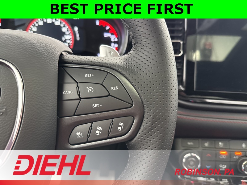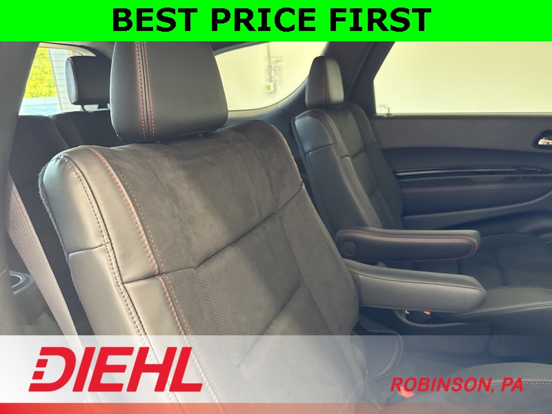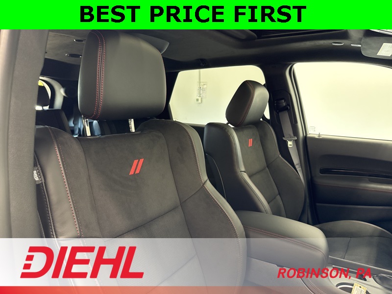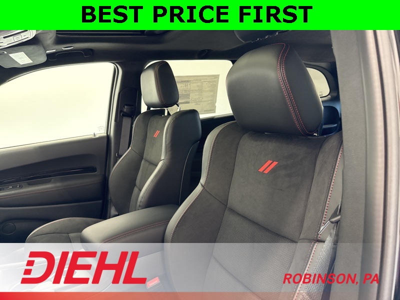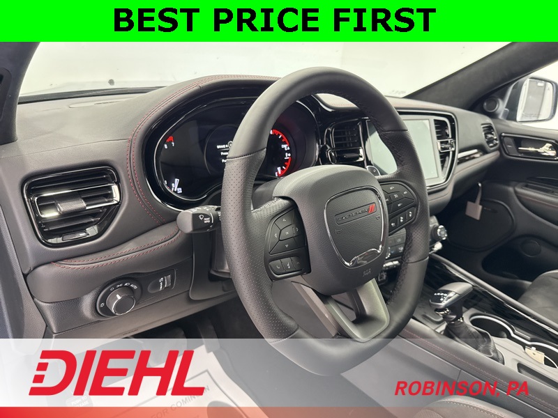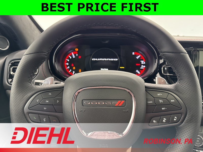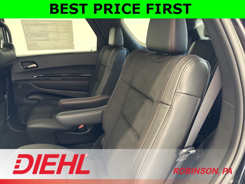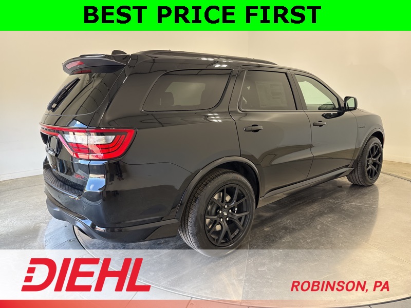 2026 Dodge Durango GT Tow N Go AWD – HEMI V8, Tow Package & Performance Styling2026 Durango GT AWD with HEMI V8, Tow N Go Package, Brembo brakes & performance styling. Power, muscle & family-ready versatility.The 2026 Dodge Durango GT Tow N Go AWD with HEMI V8 doesn’t just show up—it takes over. Finished in Diamond Black with Black leather interior and performance accents, this SUV packs muscle-car DNA into a family-sized package. Under the hood, the 5.7L HEMI V8 roars with classic Dodge power, paired with an 8-speed automatic and all-wheel drive for traction and confidence in any condition.Equipped with the Tow N Go Package, this Durango isn’t shy about flexing its utility. You get a Class IV trailer hitch, trailer brake controller, performance exhaust tips, Brembo brakes, electronic limited-slip differential, and an advanced suspension tuned for hauling and handling. Translation: it tows, it corners, and it sounds incredible doing it.Inside, the Durango GT mixes muscle with comfort—heated front and rear seats, power sunroof, Alpine premium audio with subwoofer, and a Uconnect 10.1-inch touchscreen with Apple CarPlay, Android Auto, GPS navigation, and Wi-Fi hotspot. With second-row fold-and-tumble captain’s chairs, 3-row seating, and a flat-load floor, this SUV adapts to people, cargo, or both.Add in advanced safety tech like Blind Spot Monitoring, ParkSense Park Assist, Lane Departure Warning, Adaptive Cruise, and Forward Collision Warning, and you’ve got muscle that’s also mindful.If you’re looking for an SUV that tows like a truck, drives like a performance car, and still handles the family like a pro, this 2026 Durango GT HEMI is it. Call Diehl of Robinson today to schedule your test drive and feel the HEMI difference.