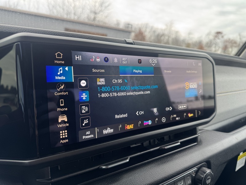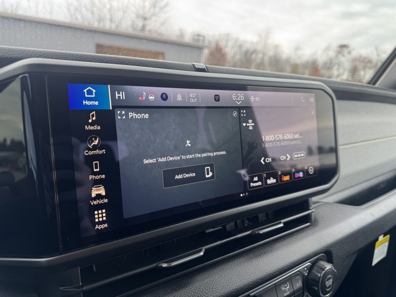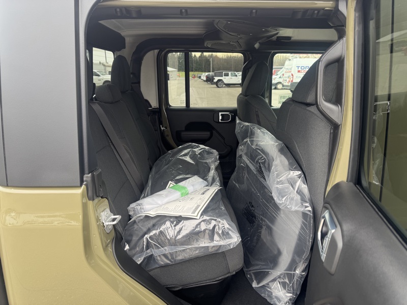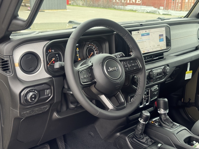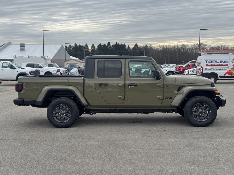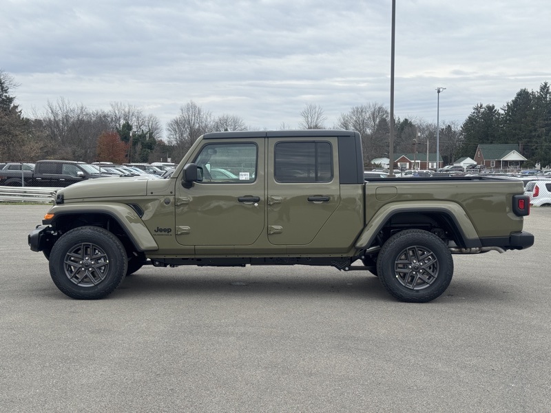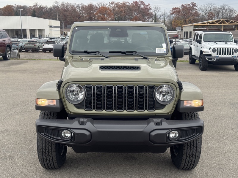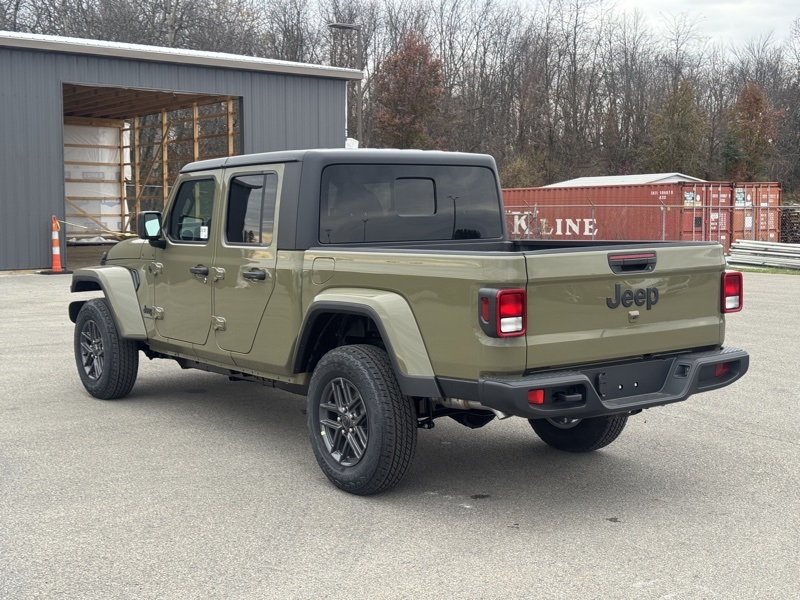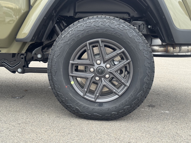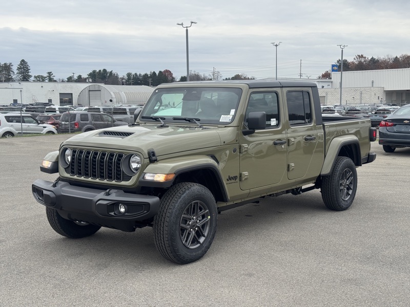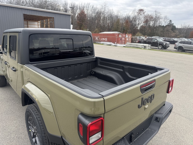 Convenience Group (Air Conditioning with Auto Temp Control, Cluster 7.0" TFT Color Display, Corning Gorilla Glass, Daytime Running Lamp System, Emergency/Assistance Call, Front Door Locks 2-Door Passive Entry, Heated Front Seats, Heated Steering Wheel, Remote Start System, and Universal Garage Door Opener), Dark Sky Appearance Package (2-Piece Body Color Fender Flares, Mold in Color Bumper with Gloss Black, and Performance Hood), Quick Order Package 24S Sport S (Advanced Brake Assist, Automatic Headlamps, Deep Tint Sunscreen Windows, Full Speed Forward Collision Warning Plus, Normal Duty Plus Suspension, Power Heated Mirrors, Premium Wrapped Steering Wheel, Security Alarm, Sun Visors with Illuminated Vanity Mirrors, and Wheels: 17" x 7.5" Gray), 110 Mph Vehicle Max Speed Calibration, 12.3" Touchscreen Display, 3.73 Rear Axle Ratio, 4-Wheel Disc Brakes, 4G LTE Wi-Fi Hot Spot, 8 Speakers, ABS brakes, Air Conditioning, Alexa Built-in, AM/FM radio: SiriusXM with 360L, Apple CarPlay, Apple CarPlay/Android Auto, Black 3-Piece Hard Top, Brake assist, Cloth Low-Back Bucket Seats, Compass, Connectivity - US/Canada, Delay-off headlights, Driver door bin, Driver vanity mirror, Dual front impact airbags, Dual front side impact airbags, Electronic Stability Control, Freedom Panel Storage Bag, Front anti-roll bar, Front Bucket Seats, Front Center Armrest w/Storage, Front fog lights, Front reading lights, Google Android Auto, Illuminated entry, Integrated roll-over protection, Low tire pressure warning, MOPAR All-Weather Slush Mats, MOPAR Spray in Bedliner, Normal Duty Suspension, Occupant sensing airbag, Outside temperature display, Overhead airbag, Panic alarm, ParkView Rear Back-Up Camera, Passenger door bin, Passenger vanity mirror, Power steering, Power windows, Radio data system, Radio: Uconnect 5 with 12.3" Display, Rear anti-roll bar, Rear reading lights, Rear Sliding Window, Rear Window Defroster, Remote keyless entry, Speed control, Split folding rear seat, Steering wheel mounted audio controls, Tachometer, Telescoping steering wheel, Tilt steering wheel, Traction control, Trip computer, USB Host Flip, Variably intermittent wipers, Voltmeter, and Wheels: 17" x 7.5" Black Steel Styled. 41 2026 Jeep Gladiator Sport S 4WD 8-Speed Automatic 3.6L V6 24V VVT