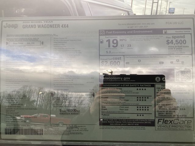 Baltic Gray Metallic Clearcoat 2026 Grand Wagoneer Jeep 4D Sport Utility 4WD 8-Speed Automatic 3.0L I6 Price includes: $1000 - 2026 National Stellantis Loyalty Bonus Cash . Exp. 03/31/2026 $500 - 2026 National 2026 First Responder Bonus Cash . Exp. 01/04/2027