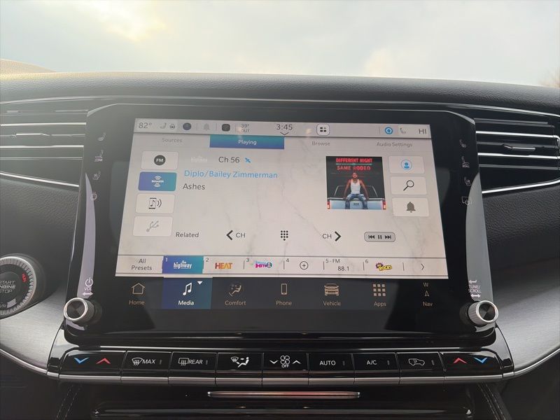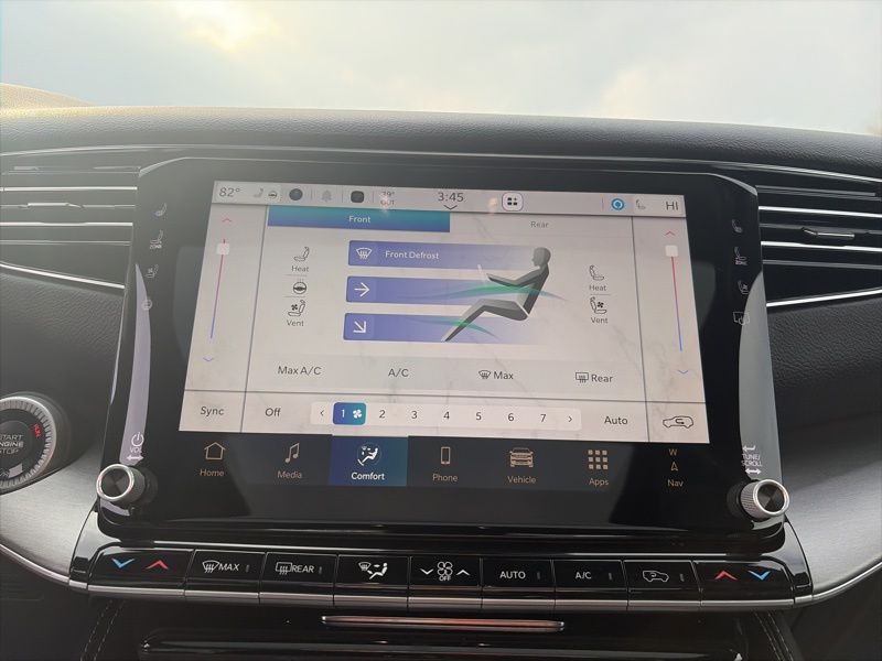 Technology is centered around the Uconnect 5 navigation system with a 12.0 inch display, SiriusXM with 360L, Apple CarPlay and Android Auto, and an exterior parking camera rear. Rain sensing wipers, auto high beam headlights, auto dimming mirrors, and speed sensitive steering enhance daily driving confidence.
