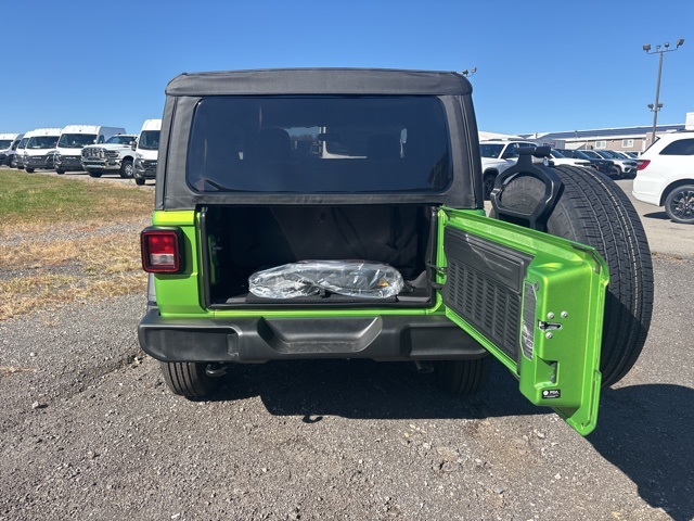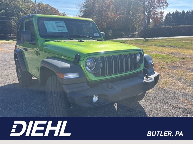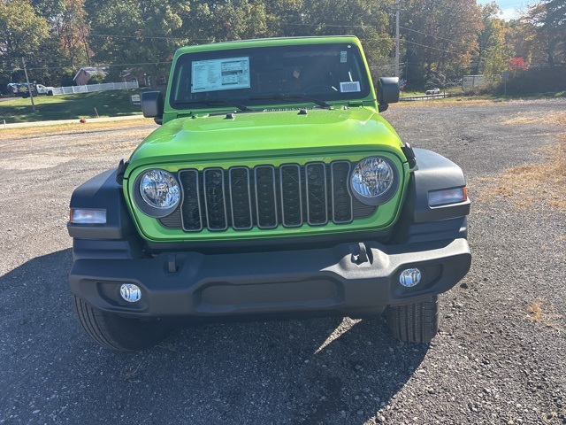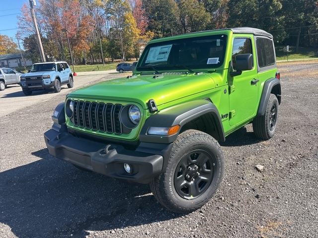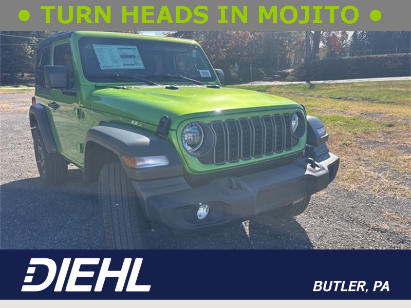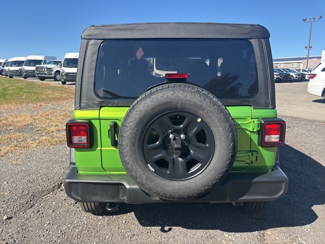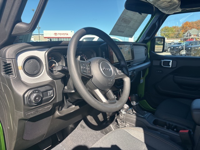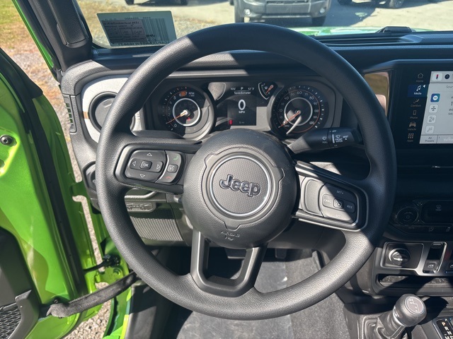 Quick Order Package 22B Sport, 3.45 Overall Top Gear Ratio, 4-Wheel Disc Brakes, 8 Speakers, ABS brakes, Air Conditioning, AM/FM radio: SiriusXM with 360L, Apple CarPlay/Android Auto, Aux Battery, Brake assist, Cloth Low-Back Bucket Seats, Compass, Deep Tint Sunscreen Windows, Delay-off headlights, Driver door bin, Driver vanity mirror, Dual front impact airbags, Dual front side impact airbags, Electronic Stability Control, Front anti-roll bar, Front Bucket Seats, Front Center Armrest w/Storage, Front fog lights, Front reading lights, Illuminated entry, Integrated roll-over protection, Low tire pressure warning, MOPAR All-Weather Floor Mats, Non-Lock Fuel Cap w/o Discriminator, Normal Duty Suspension, Occupant sensing airbag, Outside temperature display, Overhead airbag, Panic alarm, ParkView Rear Back-Up Camera, Passenger door bin, Passenger vanity mirror, Power steering, Power windows, Radio data system, Radio: Uconnect 5 w/12.3" Display, Rear anti-roll bar, Rear reading lights, Remote keyless entry, Speed control, Steering wheel mounted audio controls, Stop-Start Dual Battery System, Tachometer, Telescoping steering wheel, Tilt steering wheel, Traction control, Trip computer, Variably intermittent wipers, and Wheels: 17" x 7.5" Black Steel Styled. Mojito Clearcoat 2026 Jeep Wrangler Sport 4WD 8-Speed Automatic 2.0L I4 DOHC