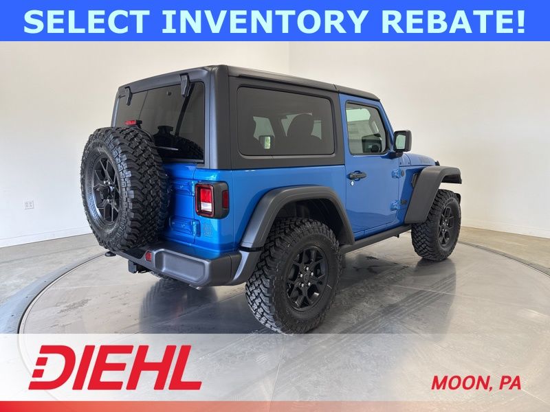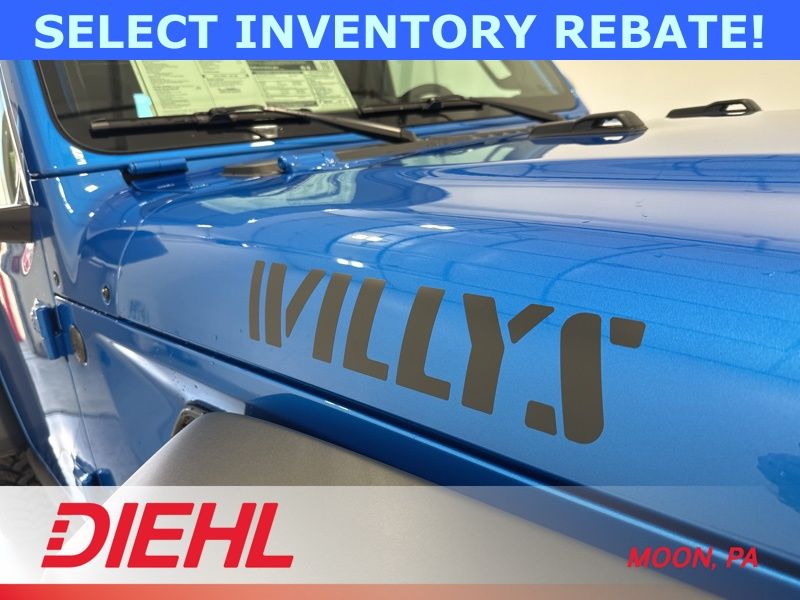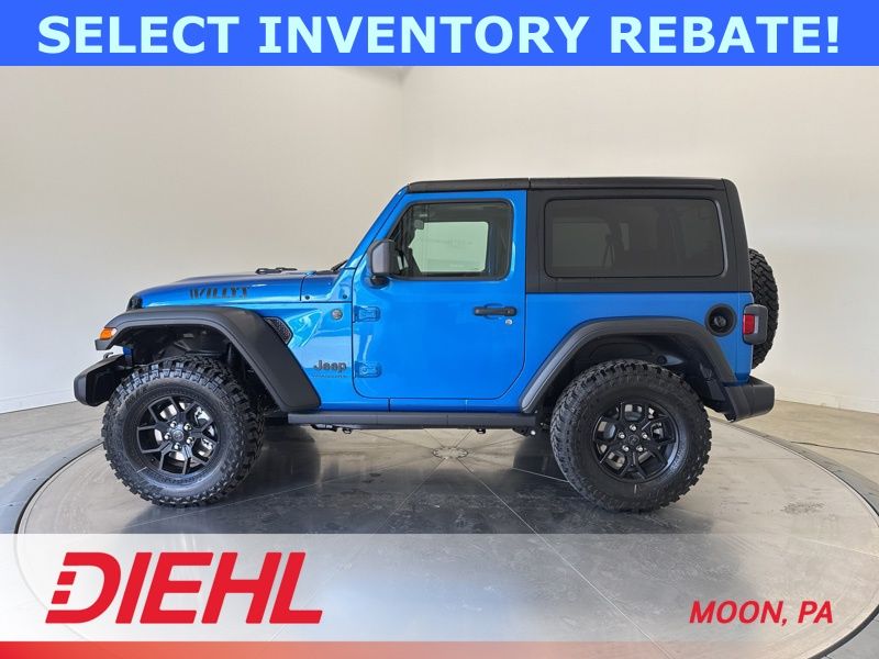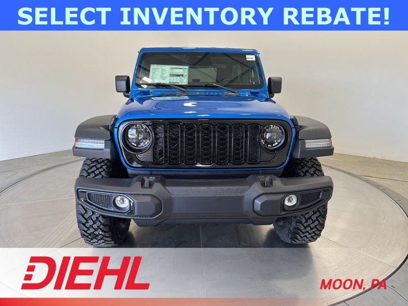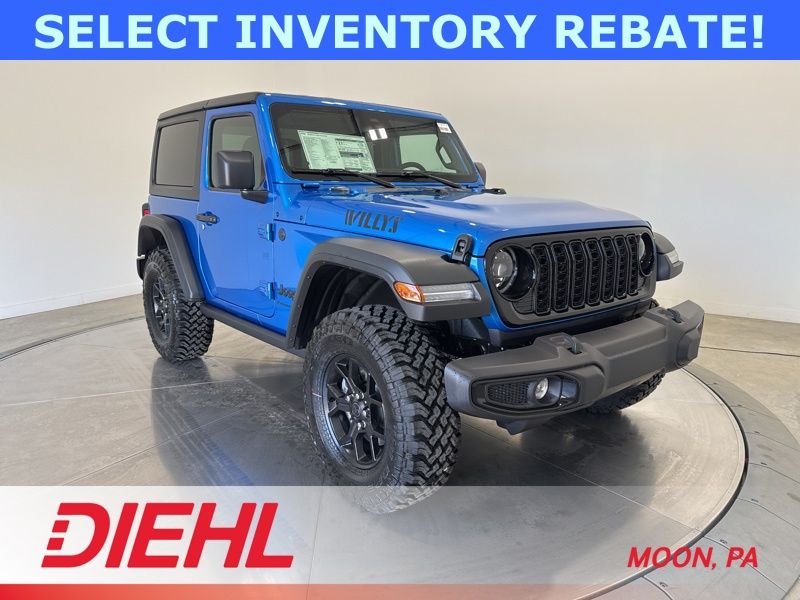 With advanced safety features like Blind Spot Monitoring, Adaptive Cruise Control, and ParkSense Rear Park Assist, this Wrangler makes exploration both thrilling and secure. Whether you are cruising through Moon Township or carving up the trails in Western PA, this new Jeep Wrangler Willys for sale near Pittsburgh is the perfect balance of rugged capability and everyday comfort. Visit Diehl of Moon Chrysler Jeep Dodge Ram in Moon Township PA today for the best new Jeep deals near Pittsburgh and make every drive an adventure. Price includes: $1000 - 2026 National Select Inventory Bonus Cash . Exp. 01/04/2027 $1000 - 2026 National Stellantis Loyalty Bonus Cash . Exp. 03/31/2026 $500 - 2026 National 2026 First Responder Bonus Cash . Exp. 01/04/2027