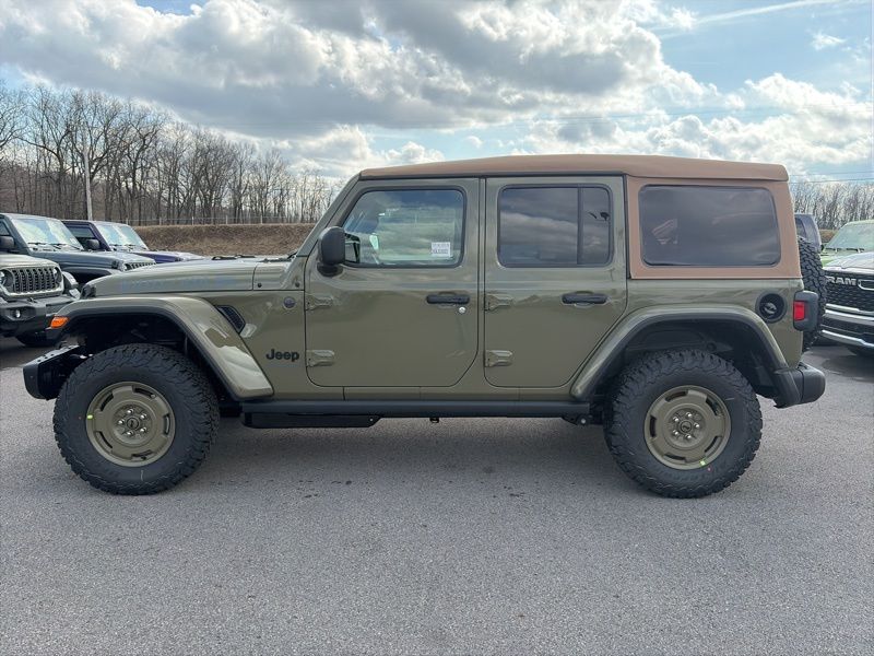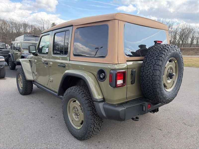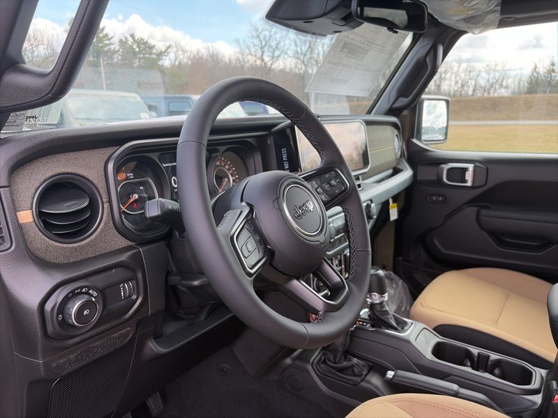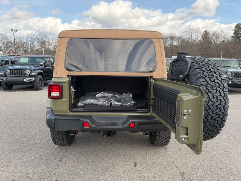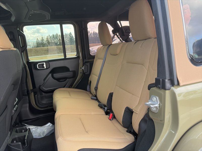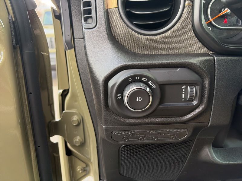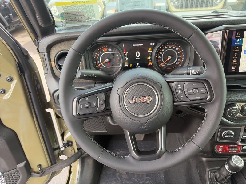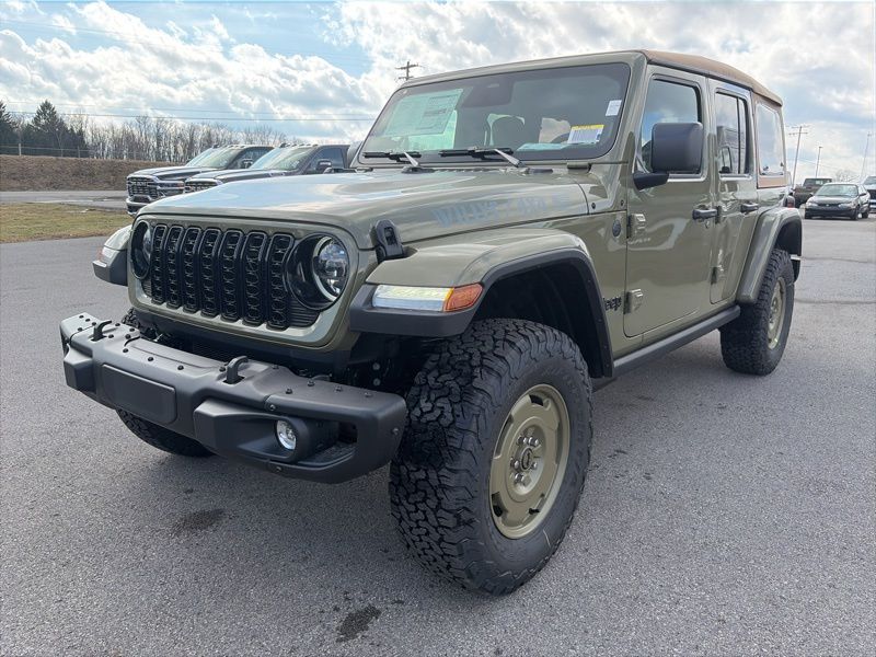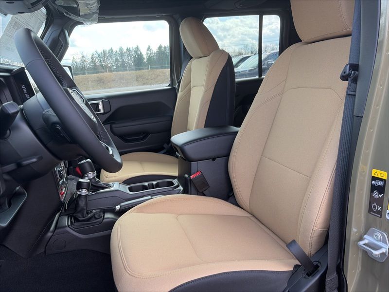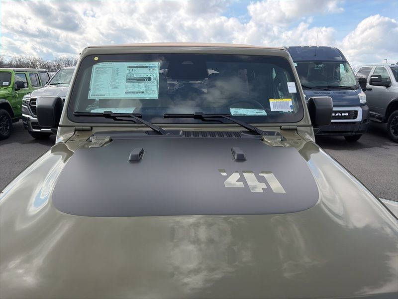 Convenience Group (2-Door Passive Entry, Front Door Locks, Air Conditioning with Auto Temp Control, Air Filtering, Cluster 7.0" TFT Color Display, Emergency/Assistance Call, Heated Front Seats, Heated Steering Wheel, and Universal Garage Door Opener), Quick Order Package 22H Willys 41 (4WD Willys '41 Swing Gate Decal, 7 and 4 Pin Wiring Harness, 97 MPH Vehicle Max Speed Calibration, Adaptive Cruise Control with Stop, Advanced Brake Assist, Automatic Headlamps, Auxiliary Switches, Body Color Grille with Gloss Black Rings, Body Color Rubicon Highline Flare, Class II Receiver Hitch, Cloth Low-Back Bucket Seats, Conventional Differential Front Axle, Corning Gorilla Glass, Dana M210 Wide HD Tube Front Axle, Dana M220 Wide Rear Axle, Daytime Running Lamps LED Accents, Deep Tint Sunscreen Windows, E-Locker Rear Axle, Front LED Fog Lamps, Full Speed Forward Collision Warning Plus, LED Premium Reflector Headlamps, MOPAR All-Weather Floor Mats, Off-Road Plus Mode, Power Heated Mirrors, Premium Tan Sunrider Soft Top, Premium Wrapped Steering Wheel, Security Alarm, Steel Front Bumper, Steel Rear Bumper, Sun Visors with Illuminated Vanity Mirrors, Wheels: 17" x 7.5" Fully Painted, Willys '41 Retro Edition Buzz Model, Willys '41 Retro Edition Hood Decal, Willys '41 Retro Edition Tailgate Plaque, Willys '41 Retro Edition Wrangler Decal, Willys '41 Retro Shift Bezel Insert, and Willys '41 US Edition U.S. Hood Decal), Steel Power Dome Hood Package (Power Dome Dual Vented Hood), 12.3" Touchscreen Display, 4-Wheel Disc Brakes, 4G LTE Wi-Fi Hot Spot, 8 Speakers, ABS brakes, Air Conditioning, AM/FM radio: SiriusXM with 360L, Apple CarPlay, Apple CarPlay/Android Auto, Aux Battery, Brake assist, Compass, Connectivity - US/Canada, Delay-off headlights, Driver door bin, Driver vanity mirror, Dual front impact airbags, Dual front side impact airbags, Electronic Stability Control, For More Info, Call 800-643-2112, Front anti-roll bar, Front Bucket Seats, Front Center Armrest w/Storage, Front fog lights, Front reading lights, Google Android Auto, Illuminated entry, Integrated Center Stack Radio, Integrated roll-over protection, Low tire pressure warning, Non-Lock Fuel Cap Without Discriminator, Normal Duty Suspension, Occupant sensing airbag, Outside temperature display, Overhead airbag, Panic alarm, ParkView Rear Back-Up Camera, Passenger door bin, Passenger vanity mirror, Power steering, Power windows, Radio data system, Radio: Uconnect 5 with 12.3" Display, Rear anti-roll bar, Rear reading lights, Remote keyless entry, SiriusXM Radio Service, SiriusXM with 360L, Speed control, Split folding rear seat, Steering wheel mounted audio controls, Stop-Start Dual Battery System, Tachometer, Telescoping steering wheel, Tilt steering wheel, Traction control, Trip computer, Variably intermittent wipers, and Wheels: 17" x 7.5" Black Steel Styled. 41 2026 Jeep Wrangler Willys 4WD 8-Speed Automatic 2.0L I4 DOHC