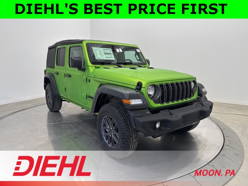 With the Sport S package, premium styling upgrades, and all terrain capability that only a Jeep can deliver, this new 2026 Jeep Wrangler 4 Door Sport S for sale near Pittsburgh is your passport to freedom. Visit Diehl of Moon Chrysler Jeep Dodge Ram in Moon Township PA today for the best new Jeep deals near Pittsburgh and discover why no road is ever truly off limits in a Wrangler. Price includes: $1500 - 2026 National Select Inventory Bonus Cash . Exp. 01/04/2027 $1500 - 2026 National Stellantis Loyalty Retail Bonus Cash . Exp. 02/02/2026 $2000 - 2026 National Select Inventory Bonus Cash. Exp. 02/02/2026