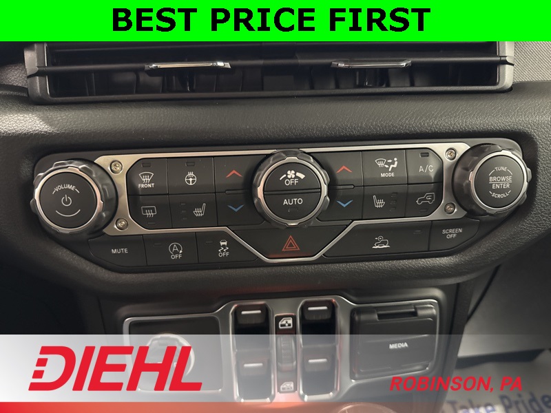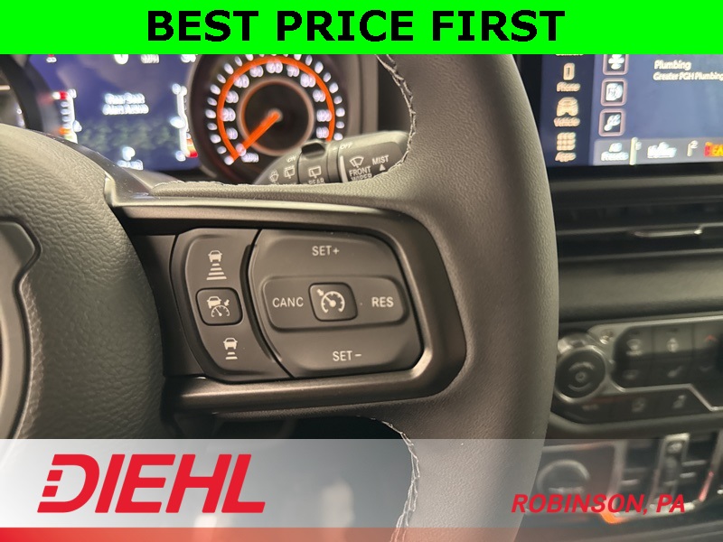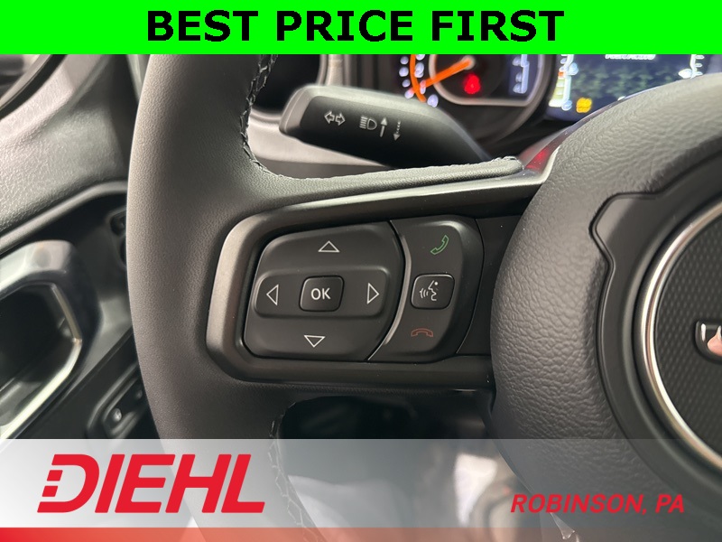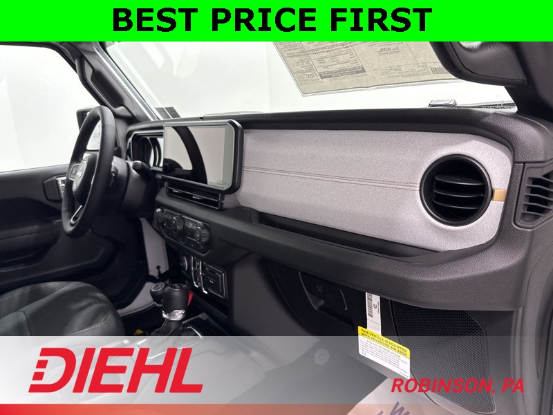 Inside, the Wrangler balances ruggedness with refinement. A 12.3-inch Uconnect touchscreen anchors the cabin, complete with Apple CarPlay, Android Auto, and voice command that actually listens. The Customer Preferred Package 22S adds premium touches like automatic climate control, a leather-wrapped steering wheel, and advanced safety tech including Forward Collision Warning and Adaptive Cruise Control.